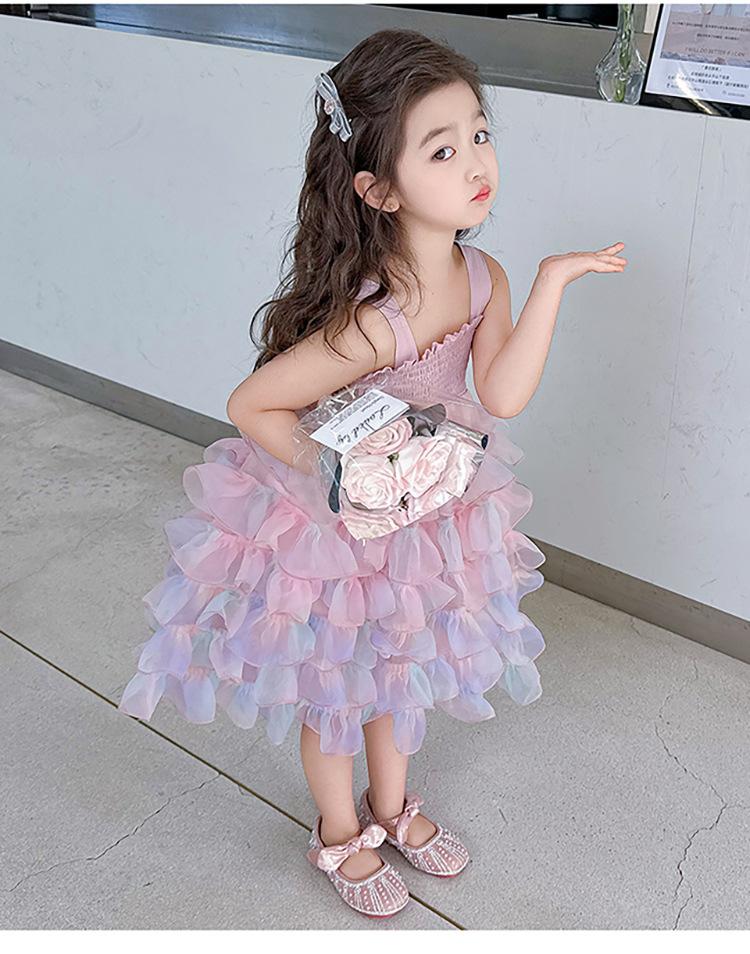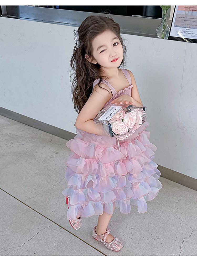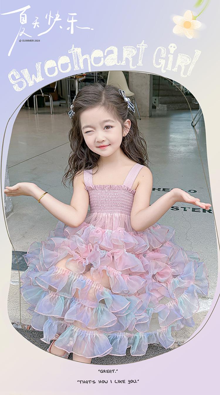 Vestido de Niña Vestido de Verano 2025 Nuevo Estilo Vestido Infantil Vestido de Tirantes Infantil Vestido de Pastel de Bebé de Verano