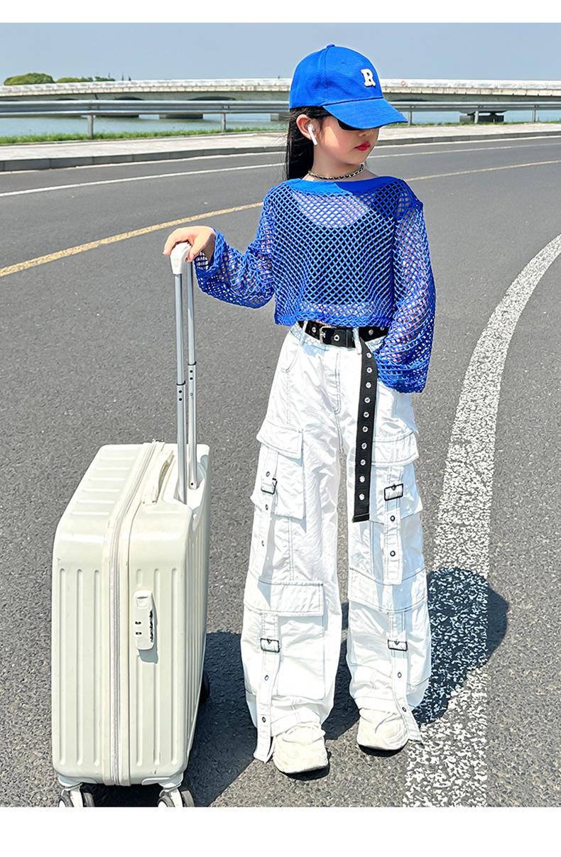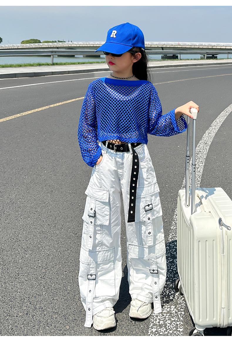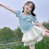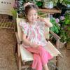 Traje de verano para niñas 2024 Nueva Moda para Niñas Estilo Coreano Elegante Traje de Camisa Calada a la Moda