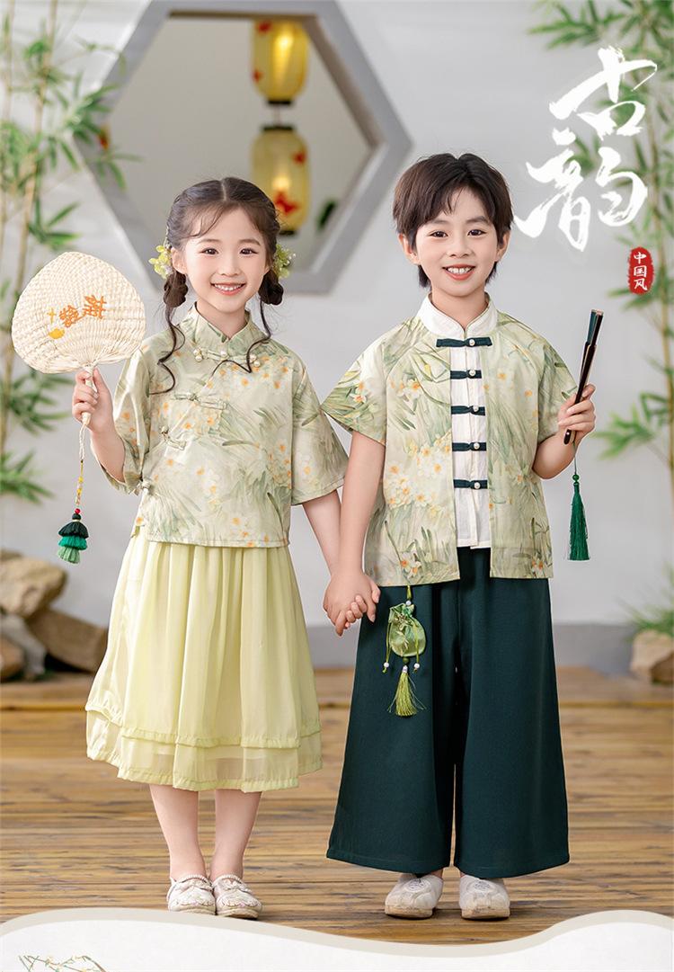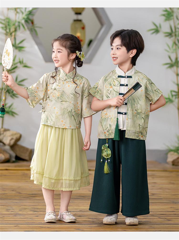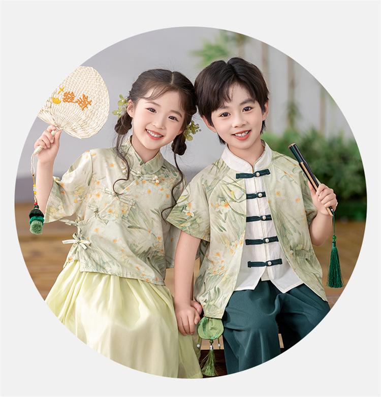 Ropa de Actuación de la Dinastía Han para Niños y Niñas Estilo Chino Traje Antiguo Uniformes de Clase de Jardín de Niños Ropa de Actuación para Estudiantes de Primaria