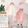 Traje de Verano de Manga Corta para Niñas 2025 Nuevo Traje de Dos Piezas de Pantalón y Manga Corta Raglán Inglés para Niñas Traje de Verano para Bebé