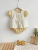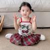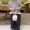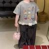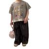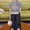 Traje de verano para niñas Bebé Estilo occidental Infantil Personalizado Marca de moda Dibujos animados Encaje Encaje Camiseta Lazo Pantalones Grulla