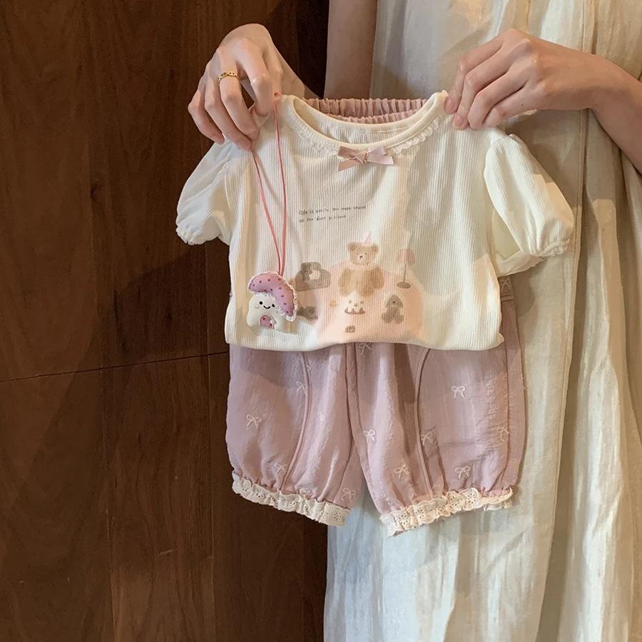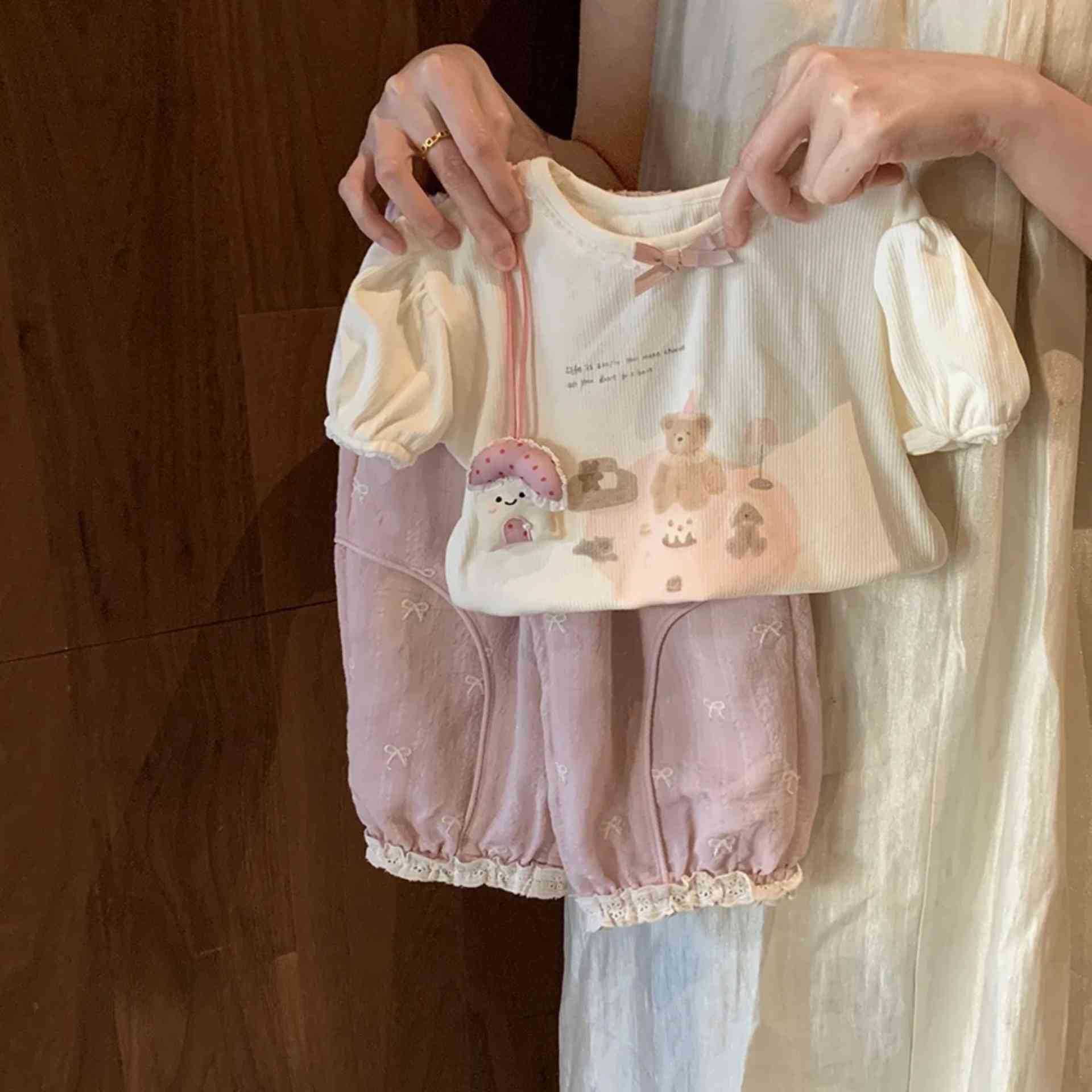 Traje de estilo occidental dulce y lindo para niña de Pink House Nuevo Vestido de Verano de dos piezas Pantalones antimosquitos de manga corta para Niños y Bebés