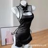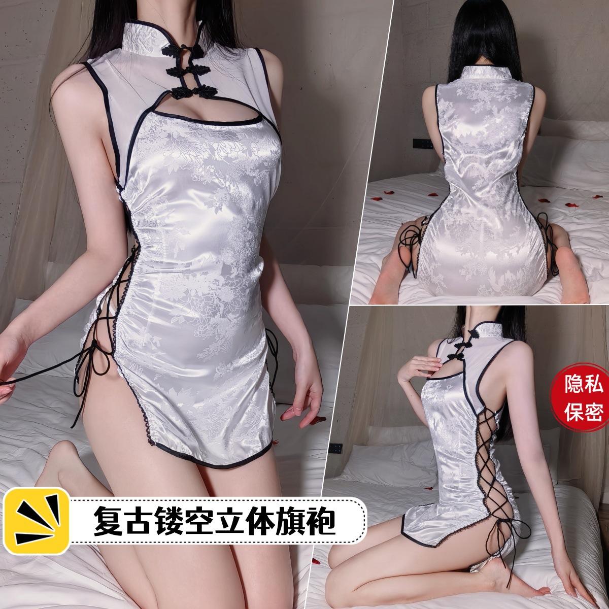 Cheongsam Sexy Solitario Estilo Retro Ropa Interior Sexy Uniforme Tentación Perspectiva Ajustado Abertura Lateral Tirante Traje Apasionado Mujeres