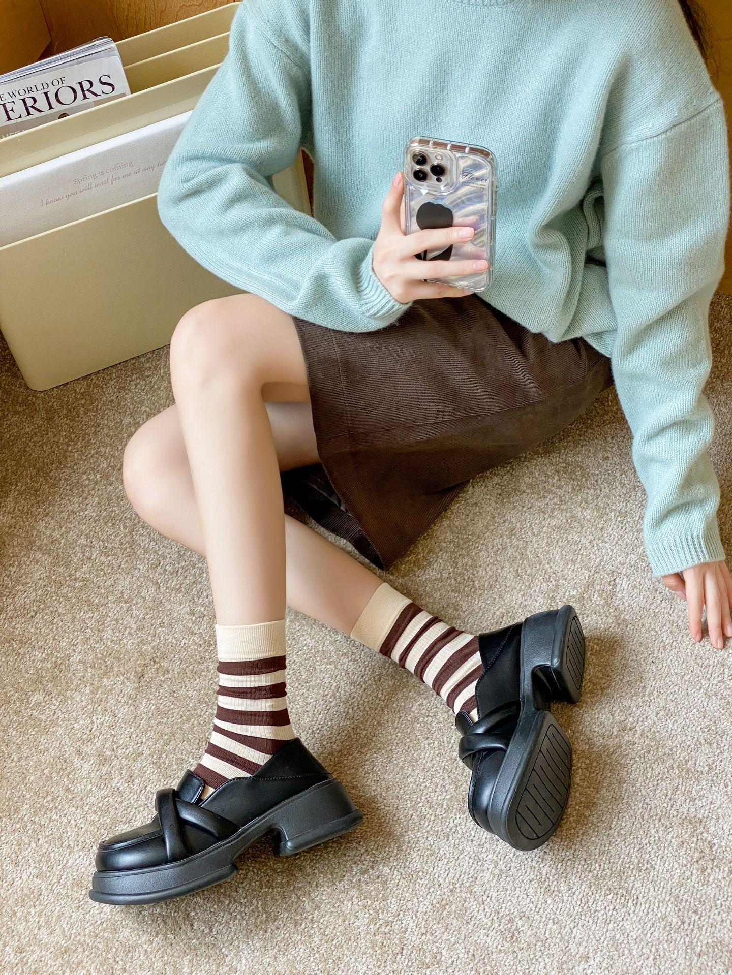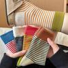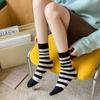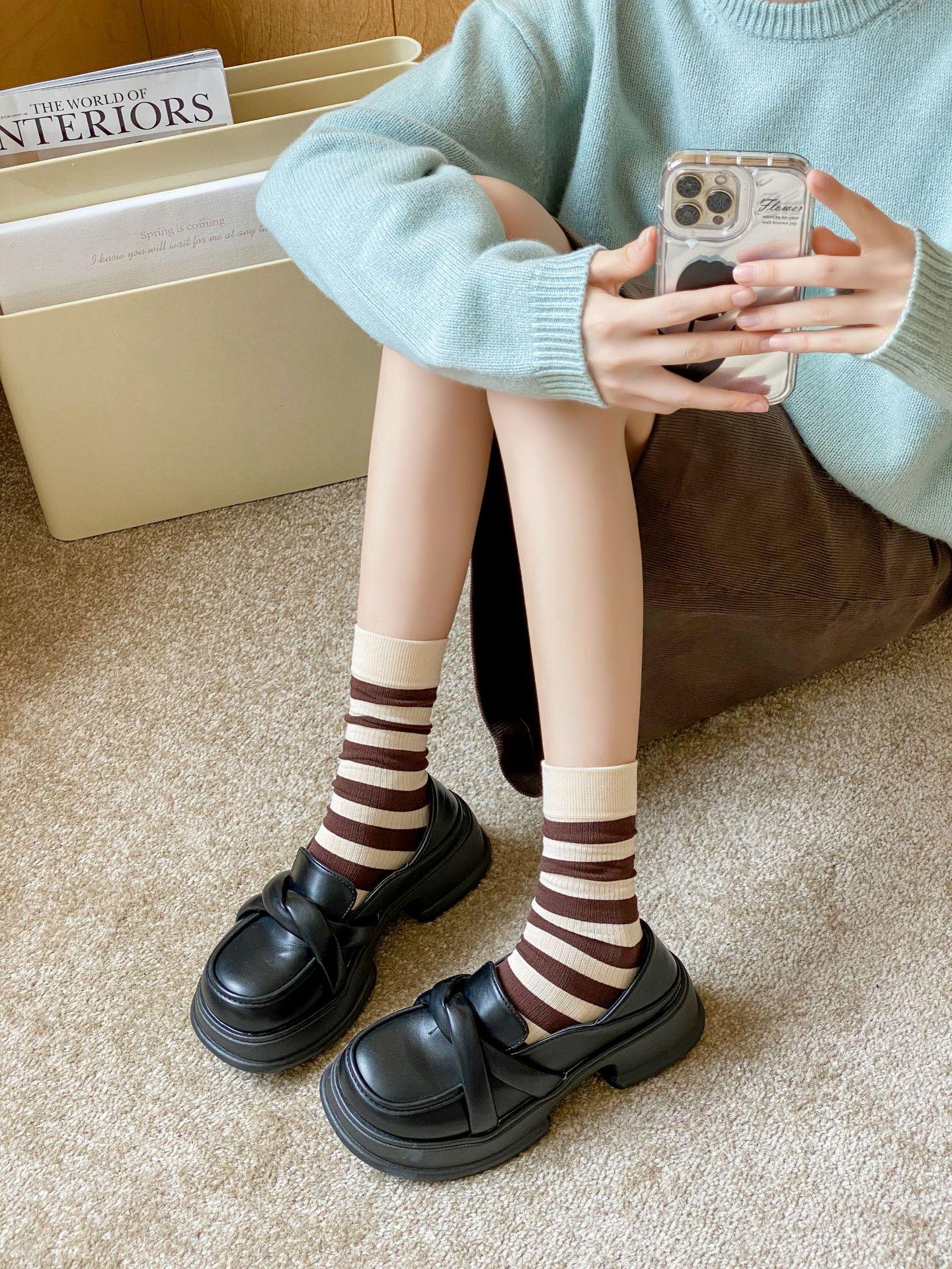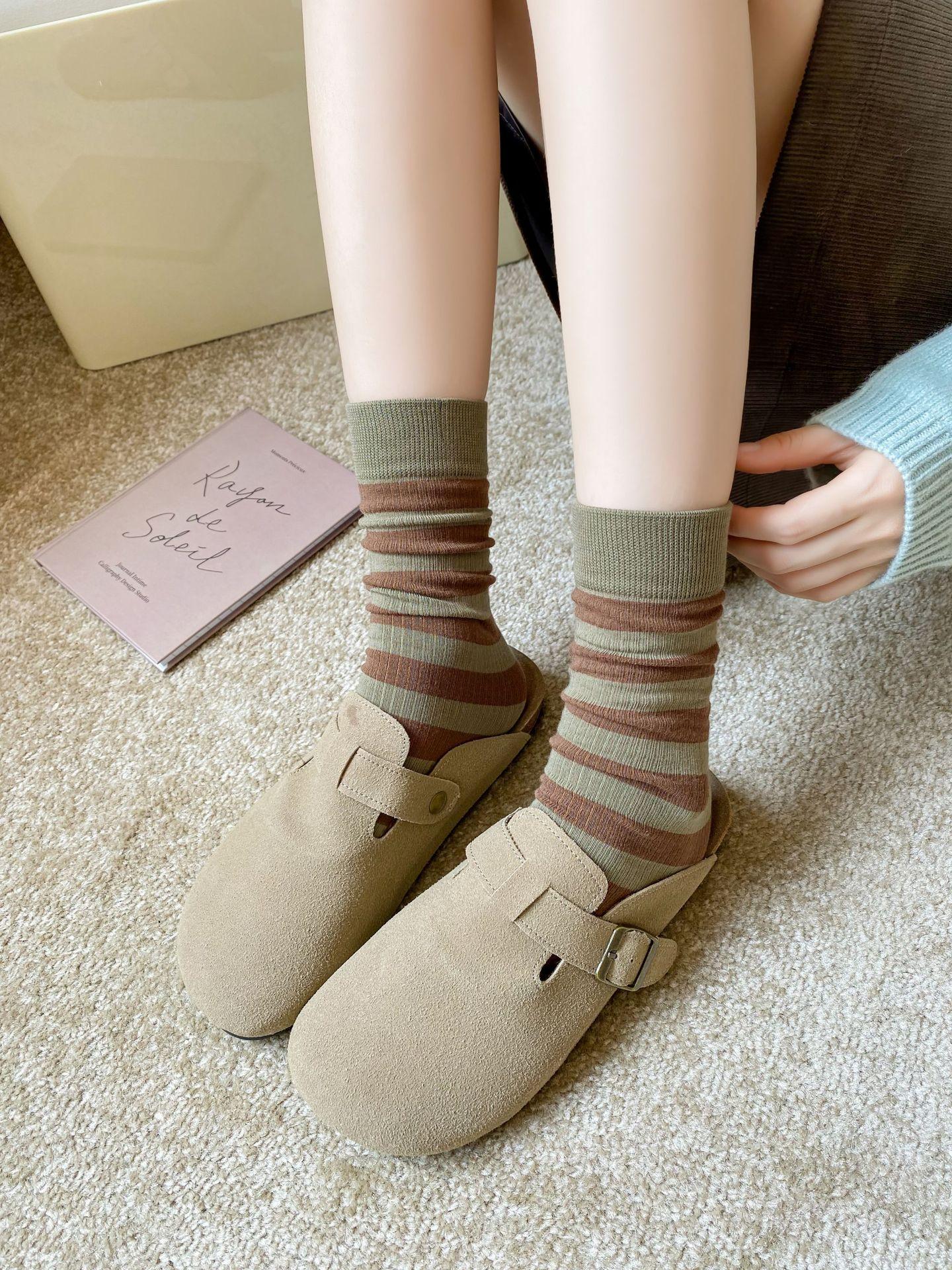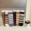 Calcetines holgados a rayas modernos que absorben el sudor para mujer Versátiles Moda Ins Otoño e Invierno Estilo universitario Calcetines de media caña Calcetines de algodón sin costuras Bloque de color