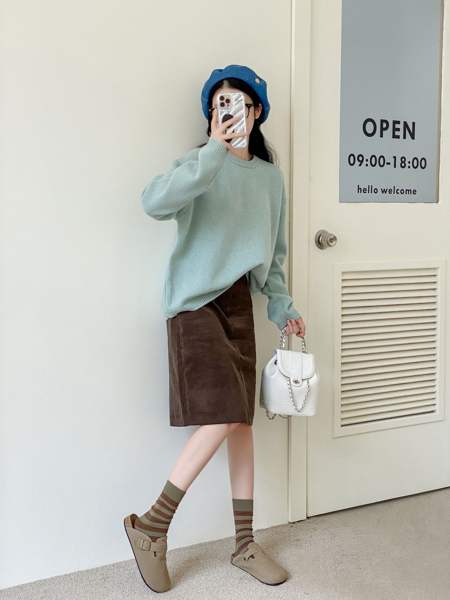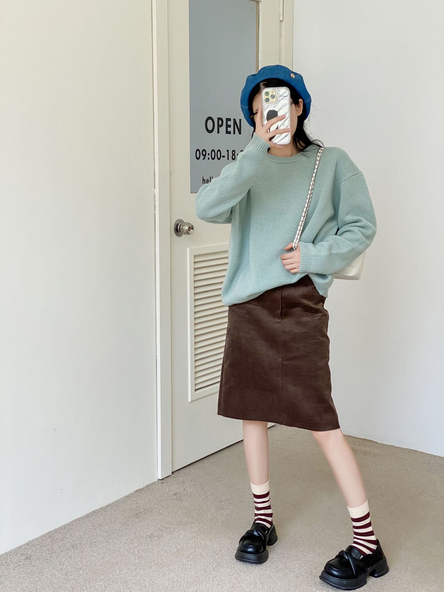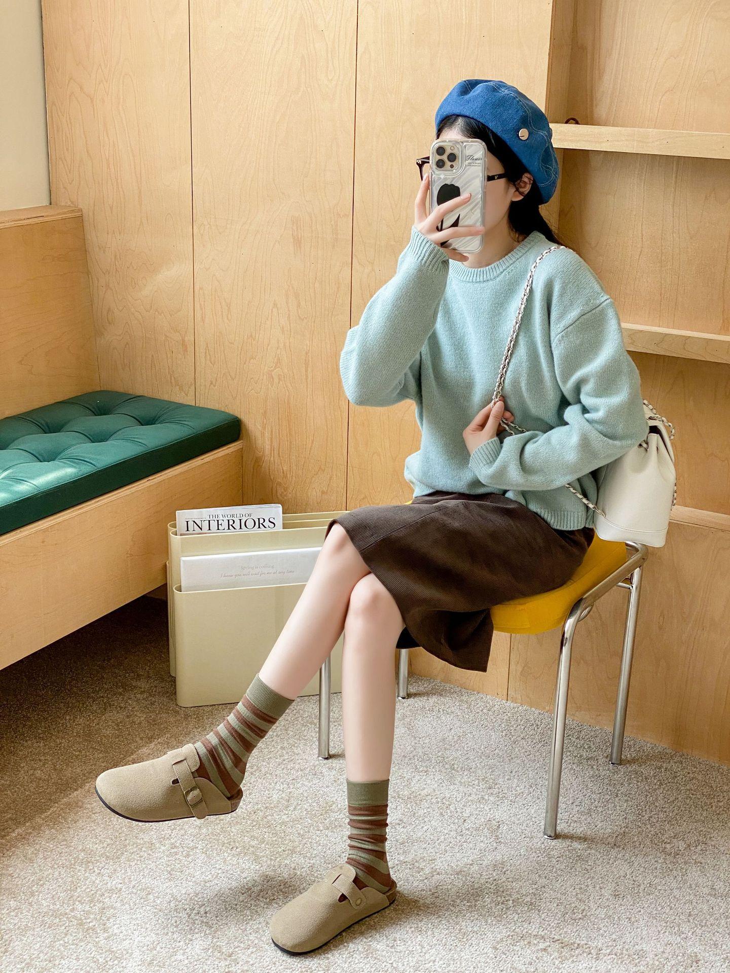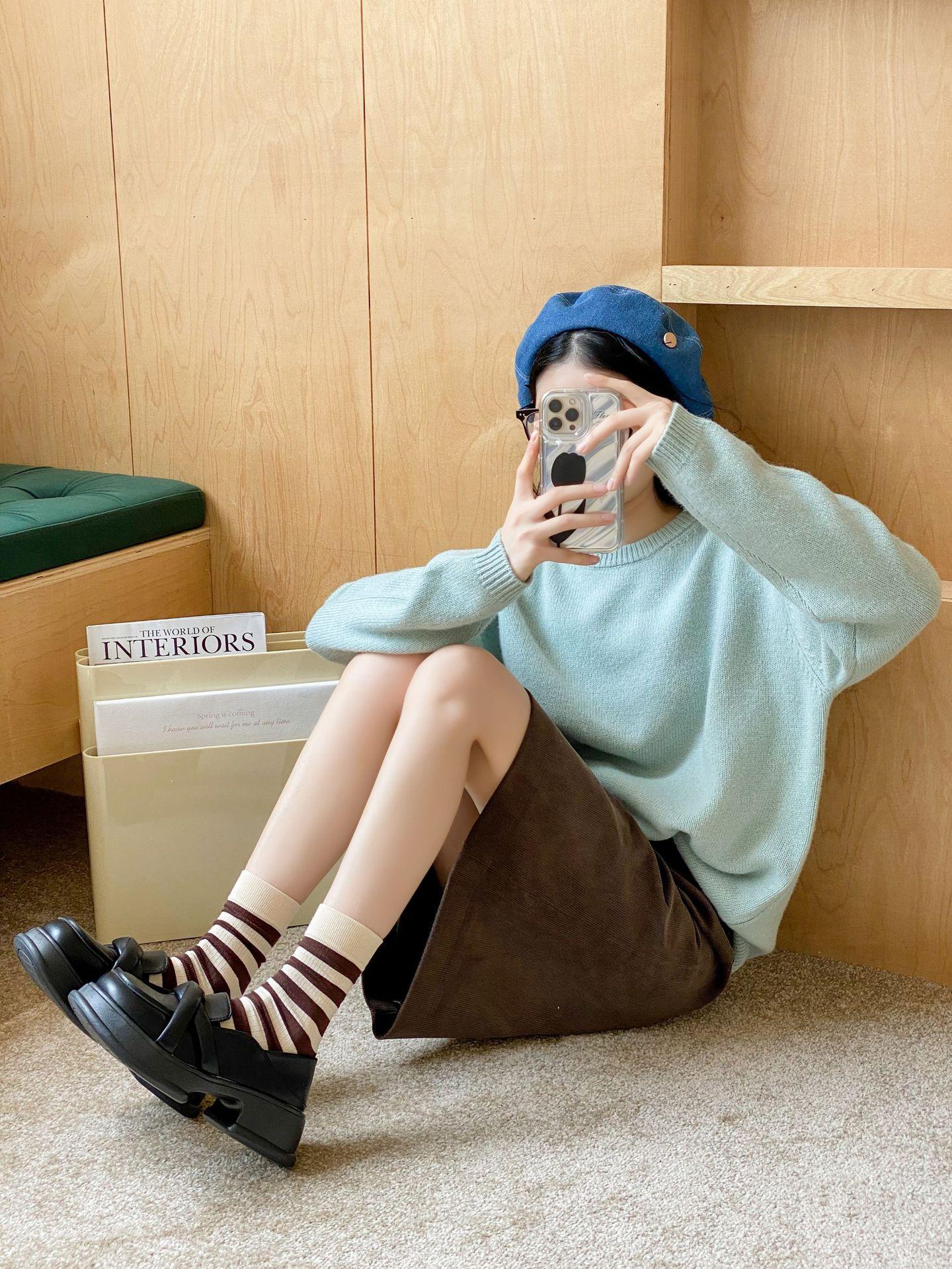 Calcetines holgados a rayas modernos que absorben el sudor para mujer Versátiles Moda Ins Otoño e Invierno Estilo universitario Calcetines de media caña Calcetines de algodón sin costuras Bloque de color