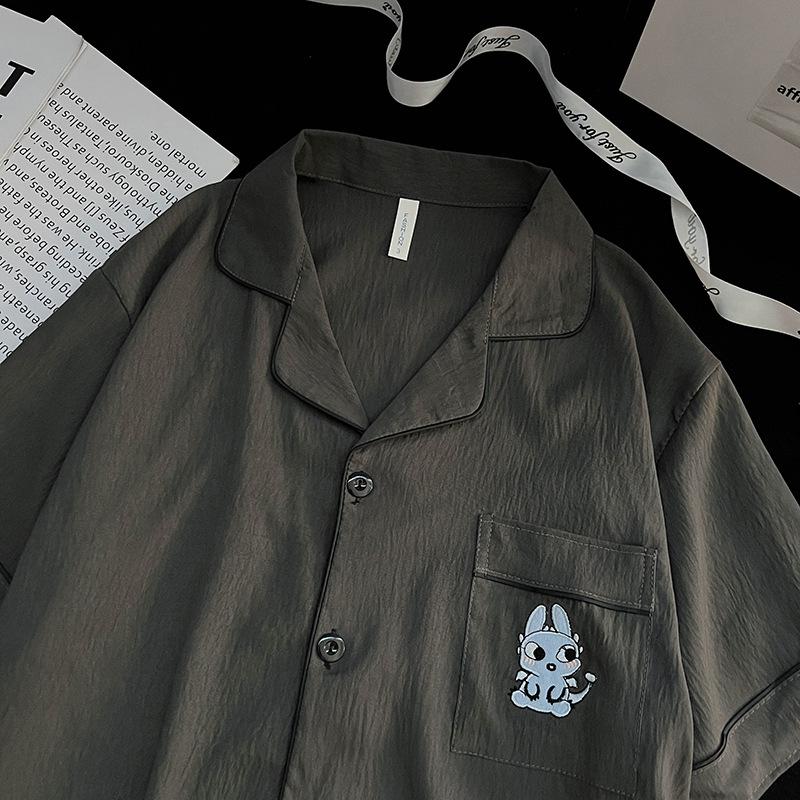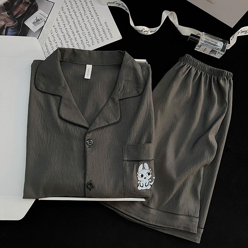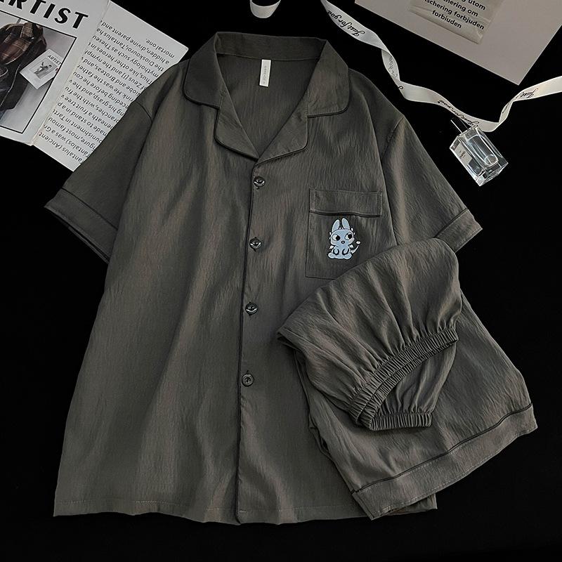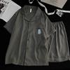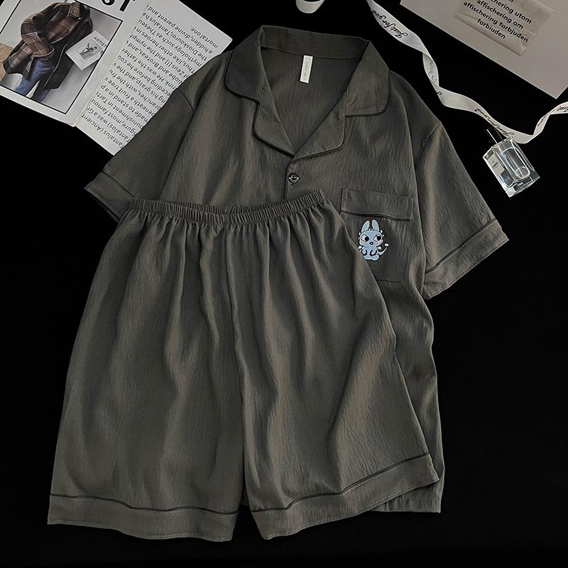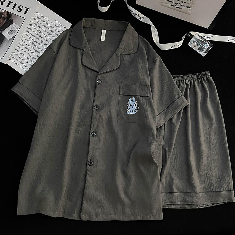 Compra Pijama de Verano para Hombre de Algodón Nube de Dos Piezas con Pantalón Corto Doble, Color Sólido Simple, Cárdigan con Solapa Bordada, Ropa de Casa Estilo Delgado al por mayor en Joom.pro