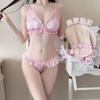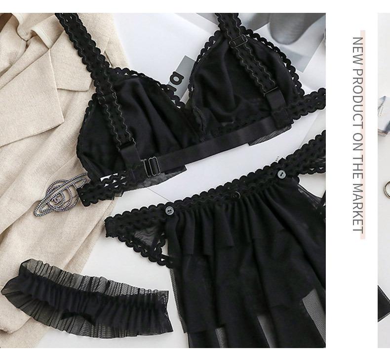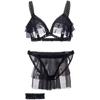 Conjunto sexy de tres piezas de sujetador de malla transparente y bragas, sujetador de copa triangular fino de encaje para tentación
