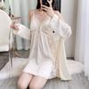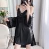 Bean paste powder—two-piece set (nightgown + robe), Milky white—two-piece set (nightgown + robe), Black—two-pi...