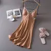 Camisón Sexy de Dos Piezas con Tirantes de Seda de Hielo y Nieve para Mujer, Camisón Delgado de Verano de Seda de Hielo, Pijama, Ropa para el Hogar con Almohadillas para el Busto