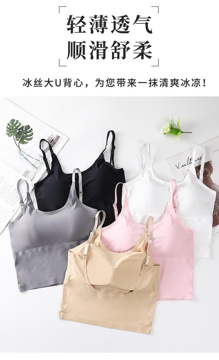 Nuevo Top Bandeau Envolvente de Seda de Hielo con Espalda Hermosa en U Grande, Capa Interior Fina Base para Uso Exterior Antiexposición Sin Costuras, Crop Top sin Mangas para Mujer