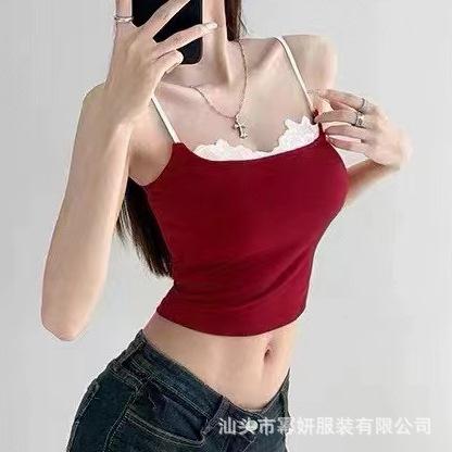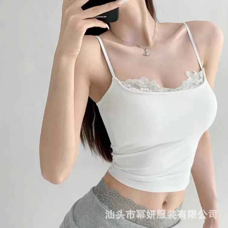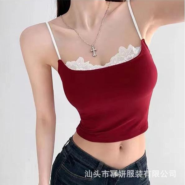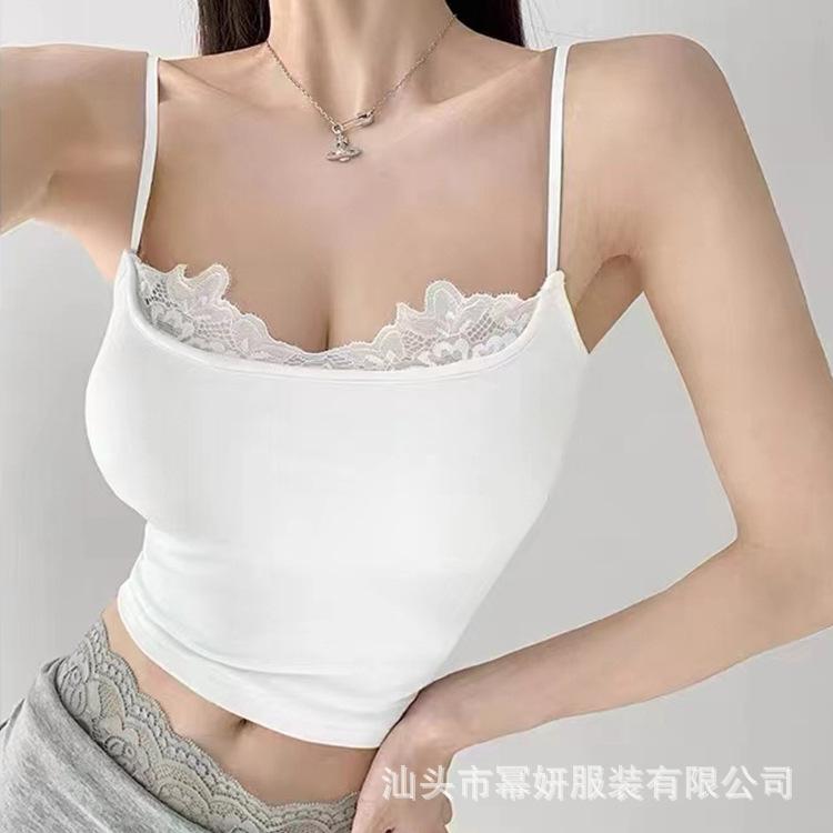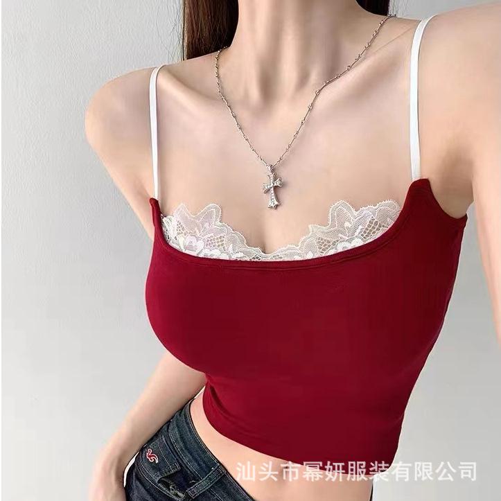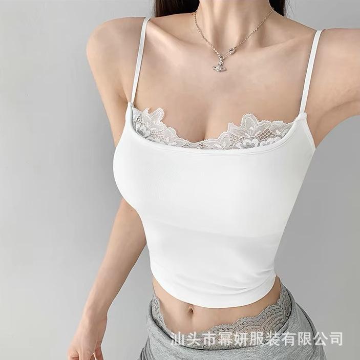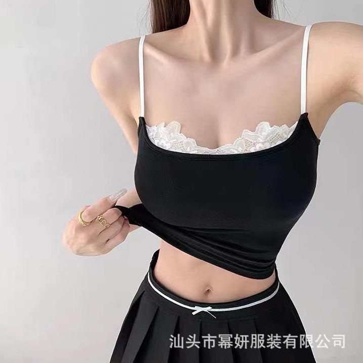 Estilo Puro Spice Girl Camisola de Encaje con Costuras para Mujer Chaleco Interior con Almohadilla en el Pecho Sexy Top Corto Ajustado