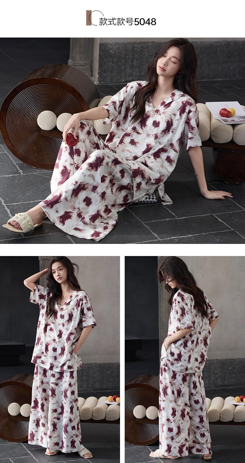 Compra Pijama con Almohadilla en el Pecho para Mujer Verano Algodón Modal Manga Corta Pantalón Suelto Estilo Perezoso Moda Ropa para el Hogar Traje Delgado al por mayor en Joom.pro