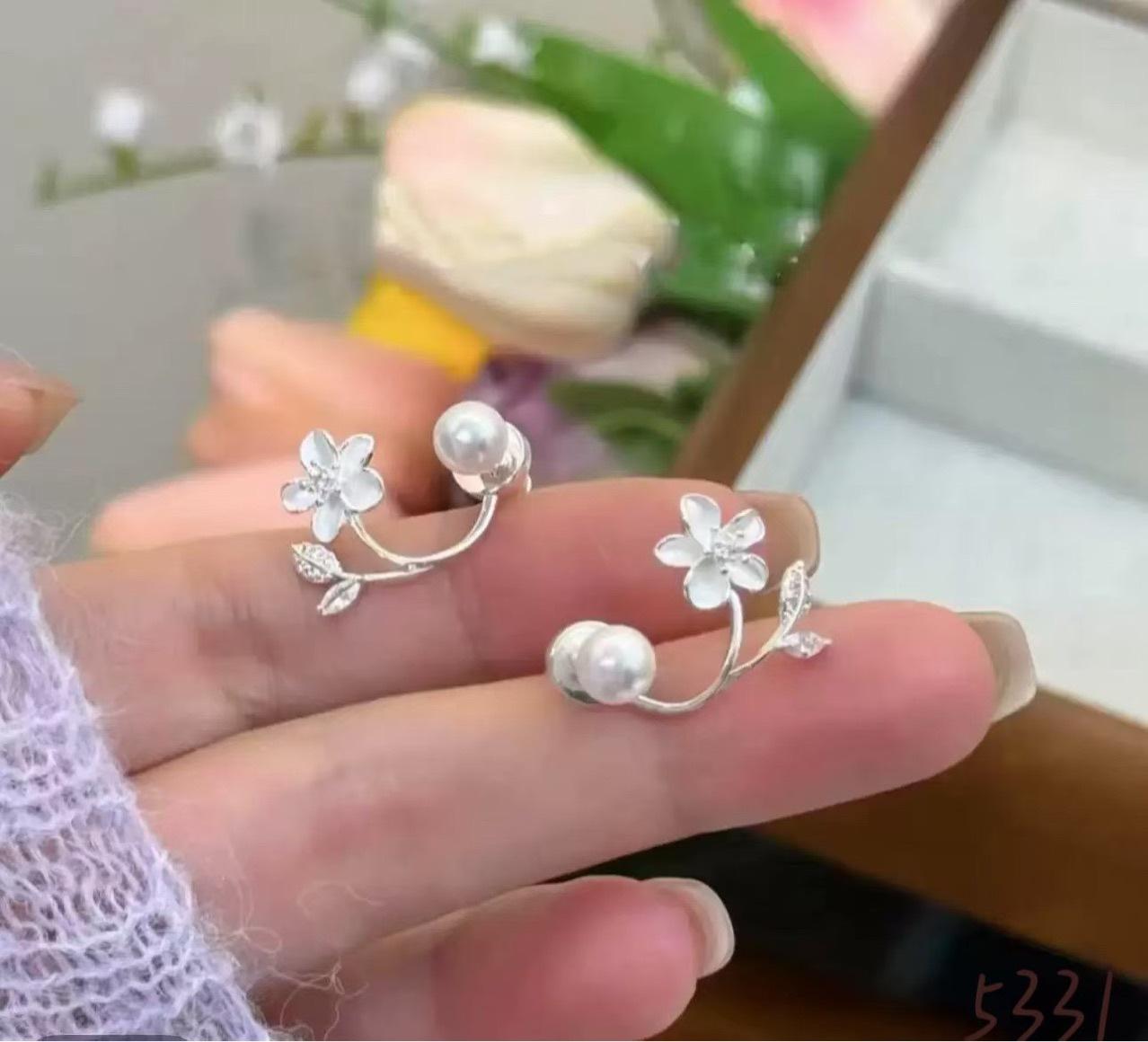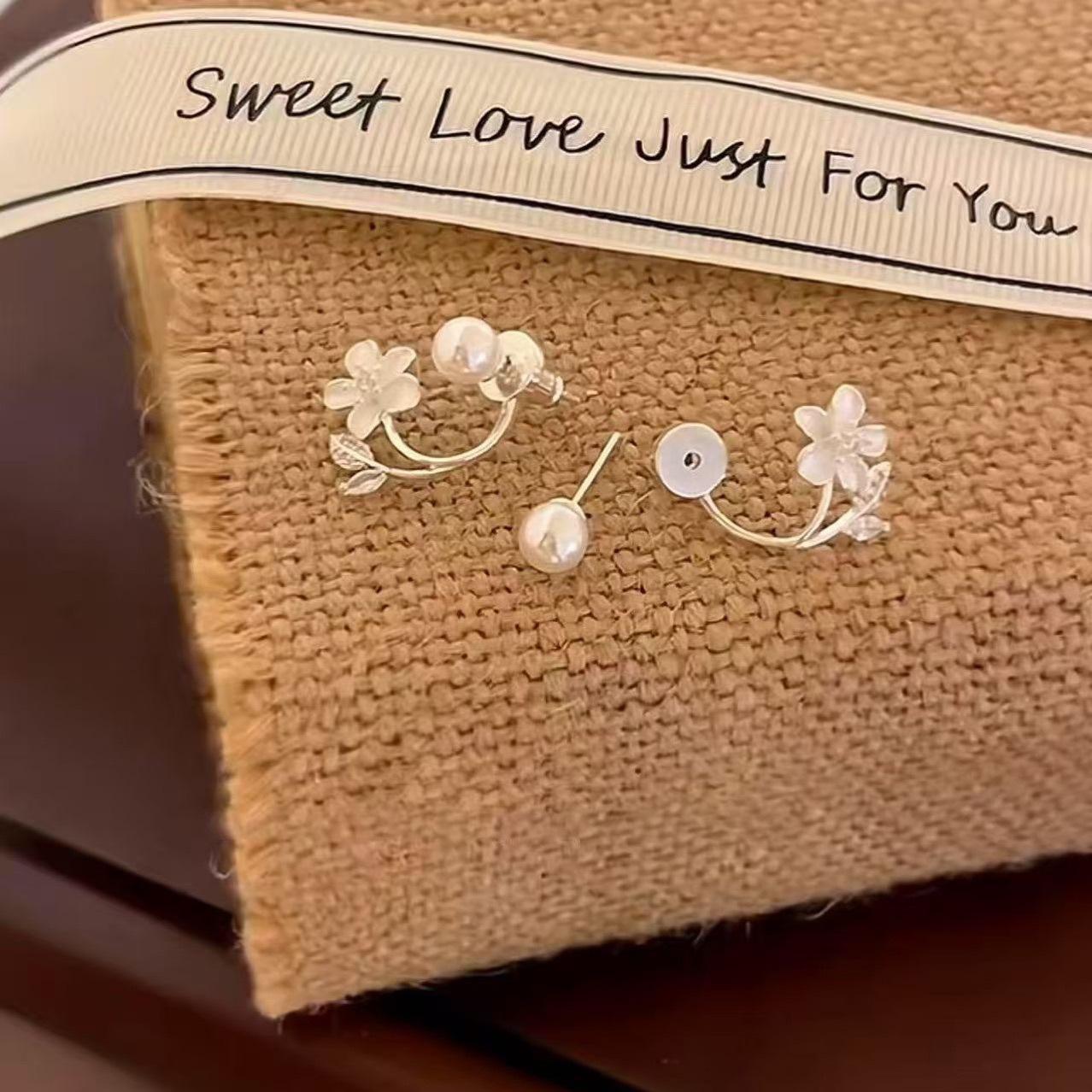 Aretes de Flor y Perla con Atmósfera de Super Hada para Mujer, Diseño Nicho, Aretes de Gama Alta, Aretes Retro de Lujo Accesible
