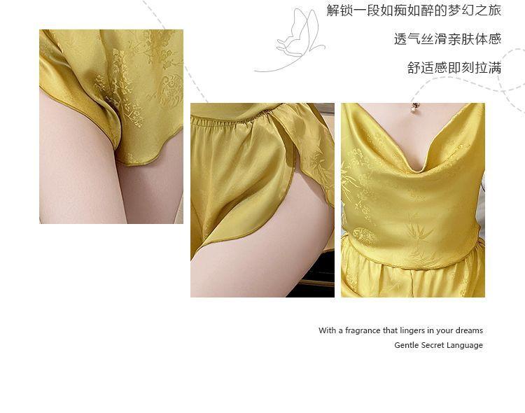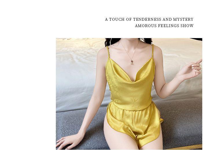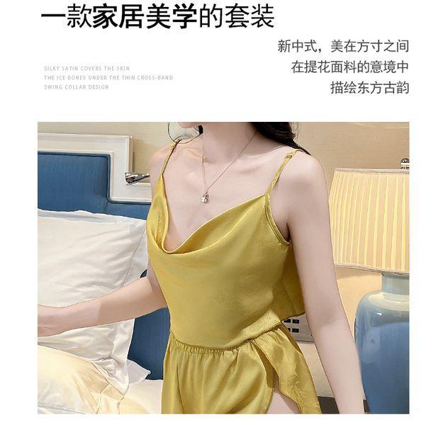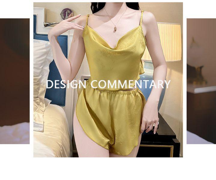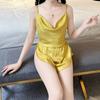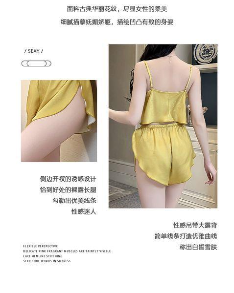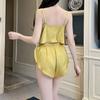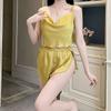 Hermosa Gasa Nuevo Satén Suave Cuello Oscilante Shorts de Tirantes Conjunto de Pijama de Dos Piezas Moda Sexy Ropa de Casa