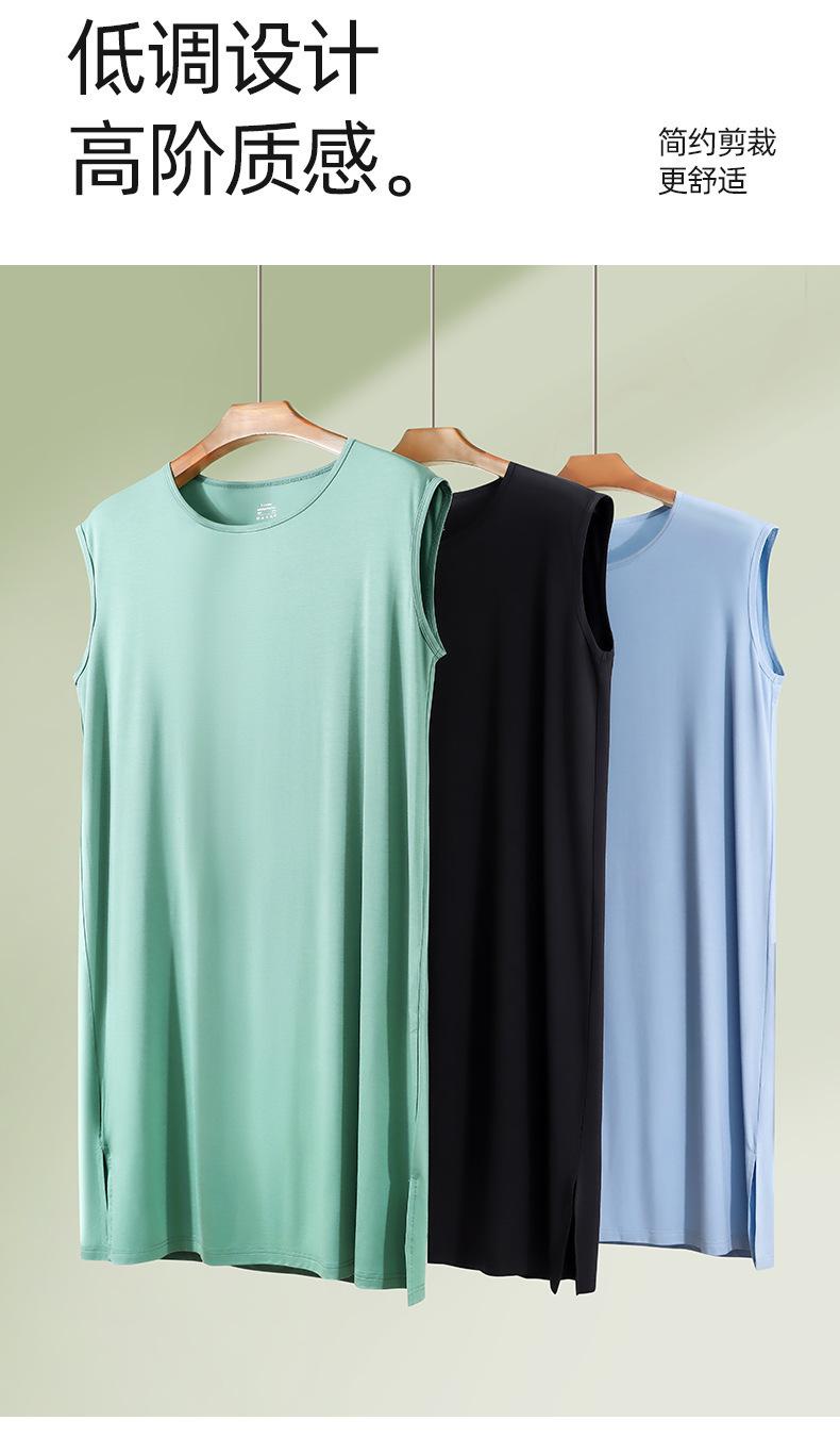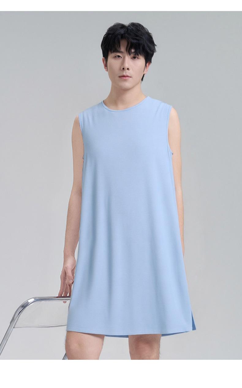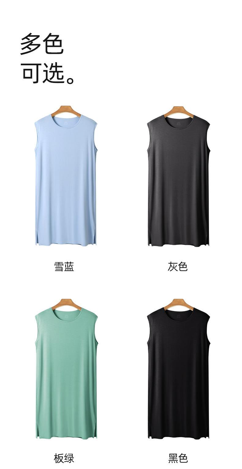 Camisón de Hombre de Talla Grande Fresco y Transpirable Verano Suelto Modal Vestido Chaleco Pijama Largo Medio Ropa para el Hogar Bata
