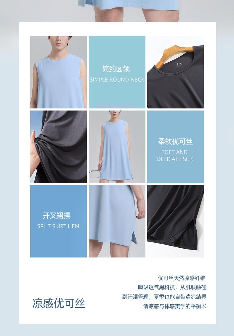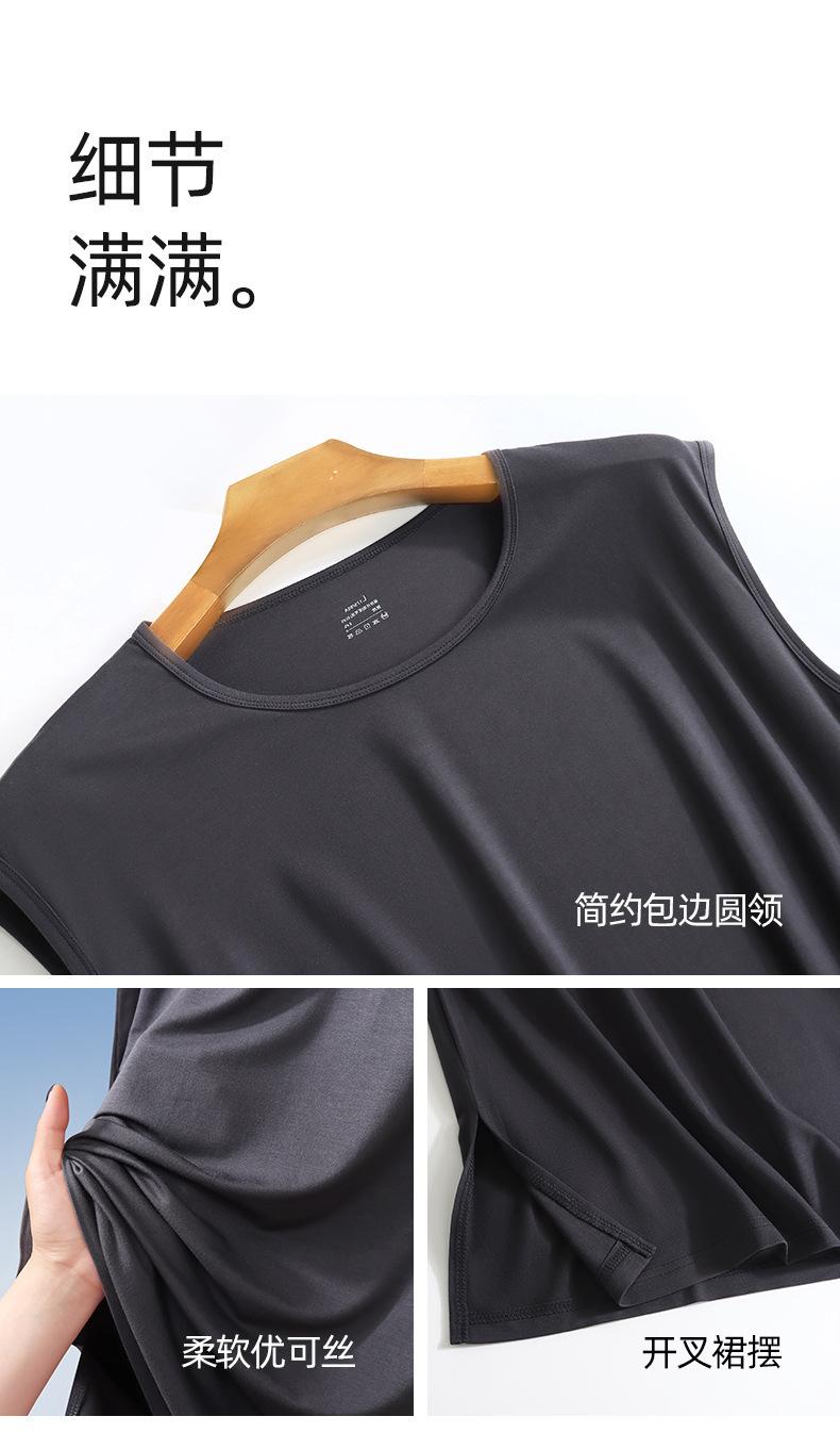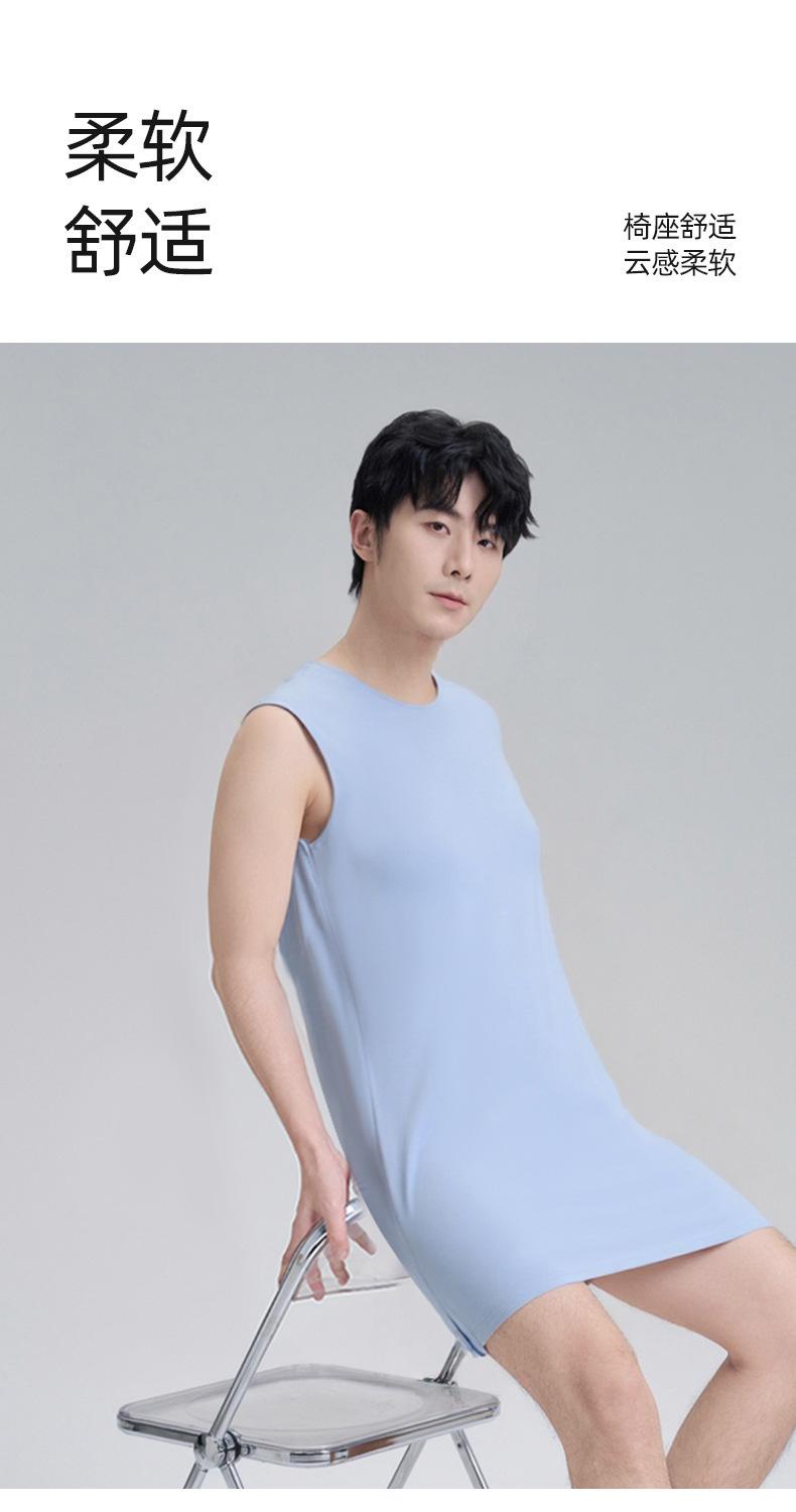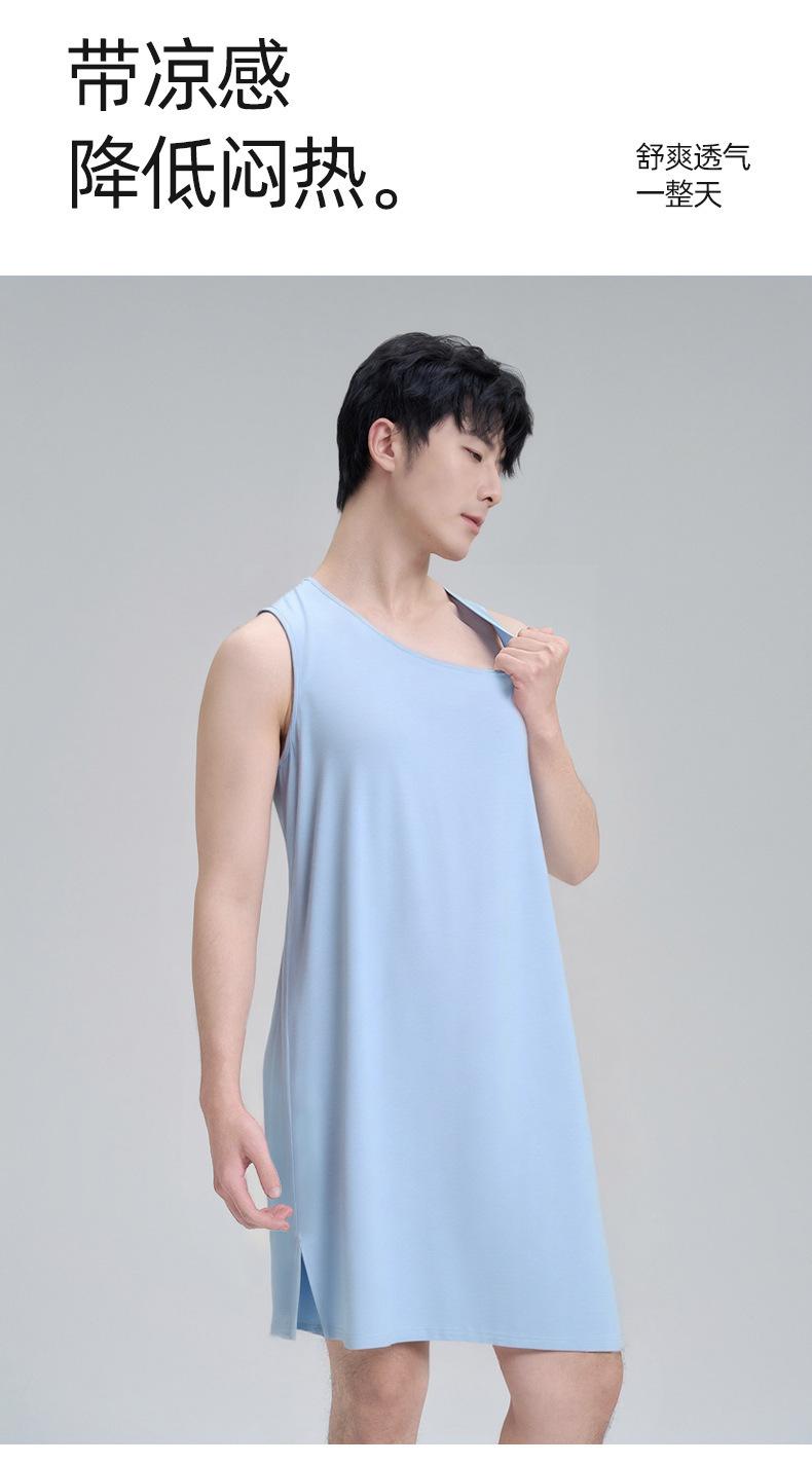 Camisón de Hombre de Talla Grande Fresco y Transpirable Verano Suelto Modal Vestido Chaleco Pijama Largo Medio Ropa para el Hogar Bata