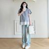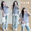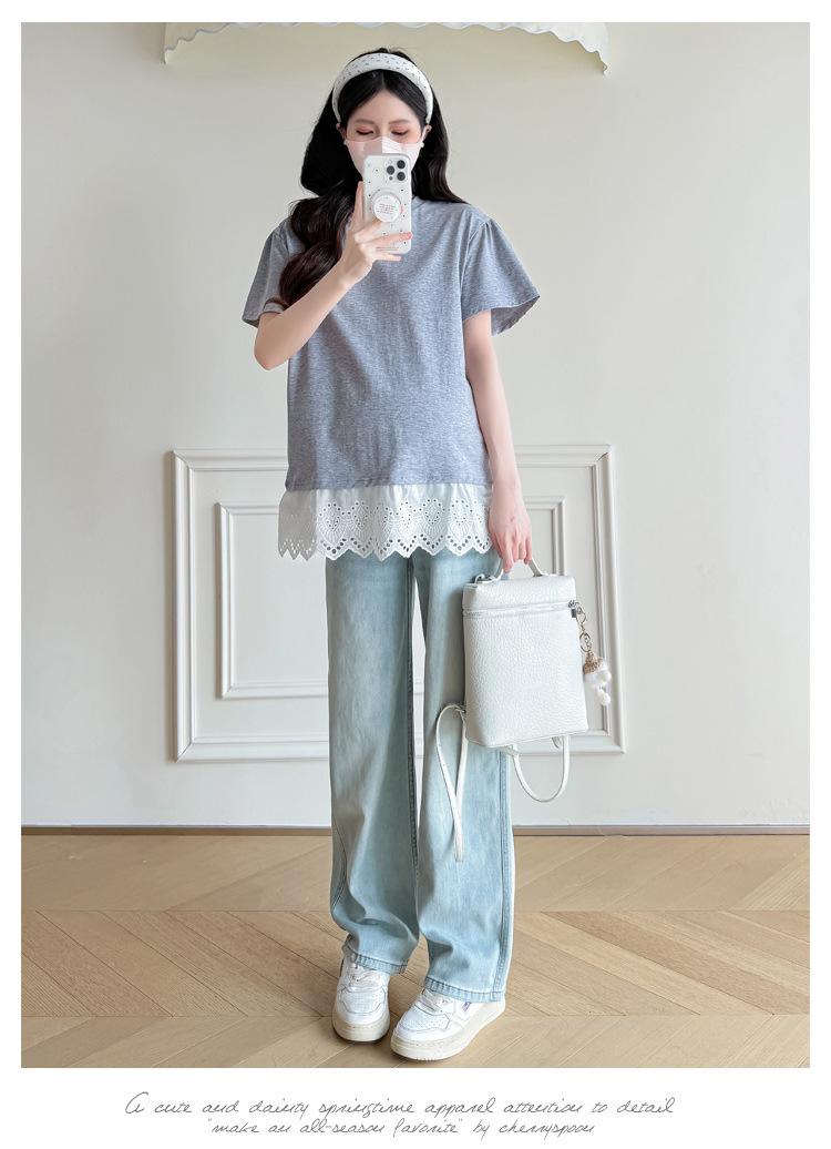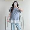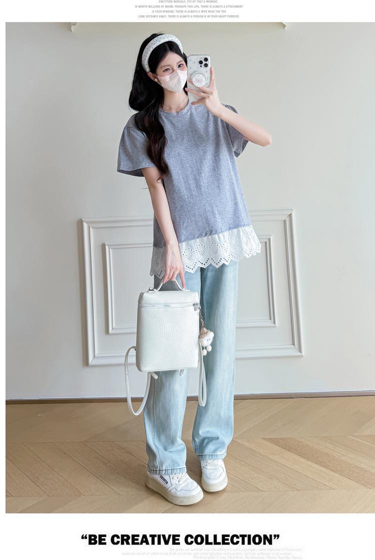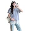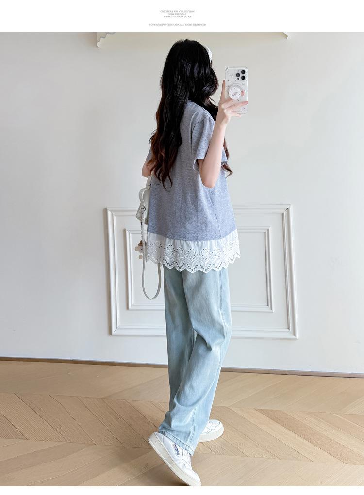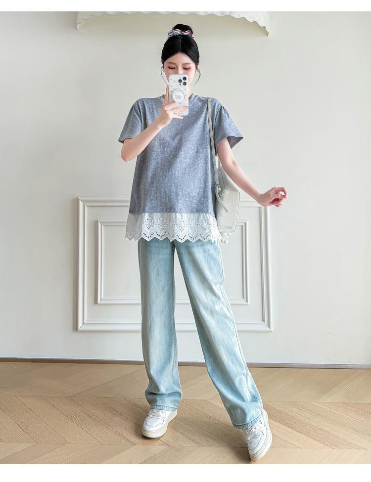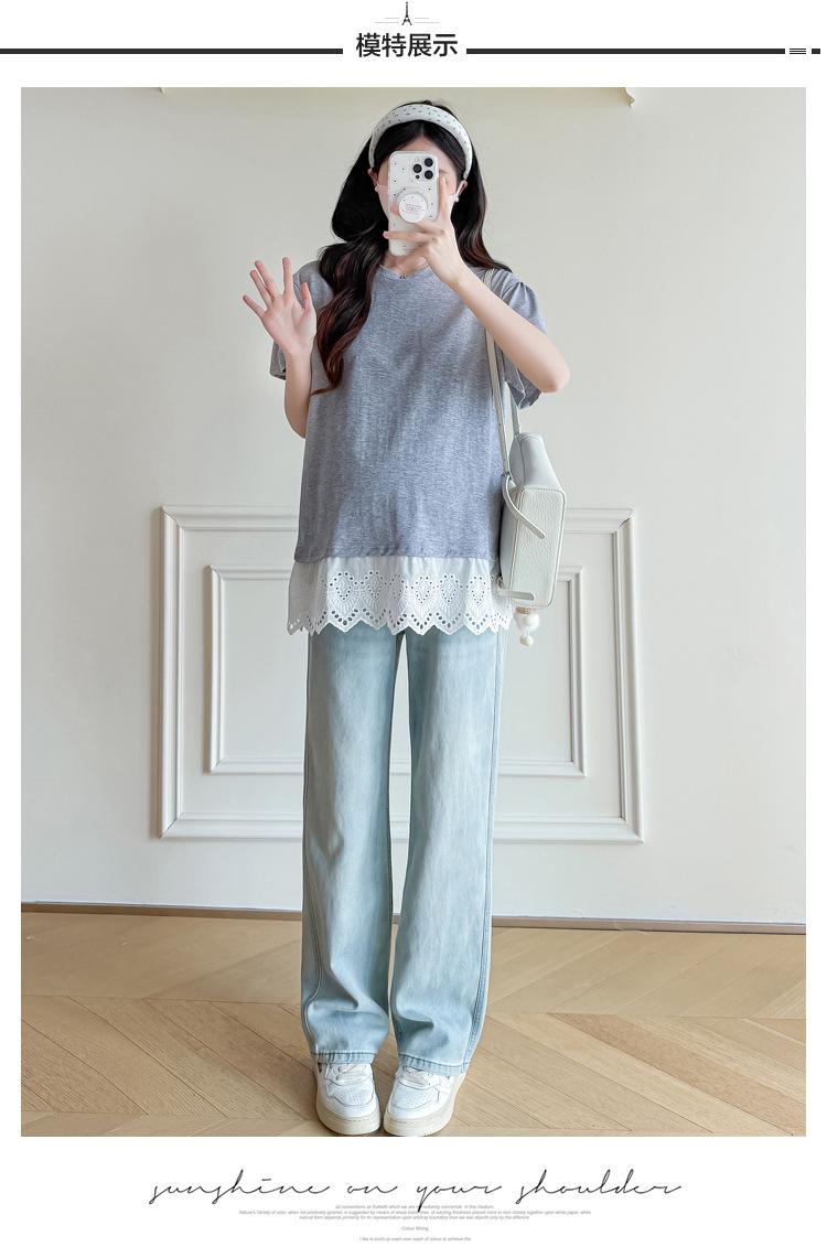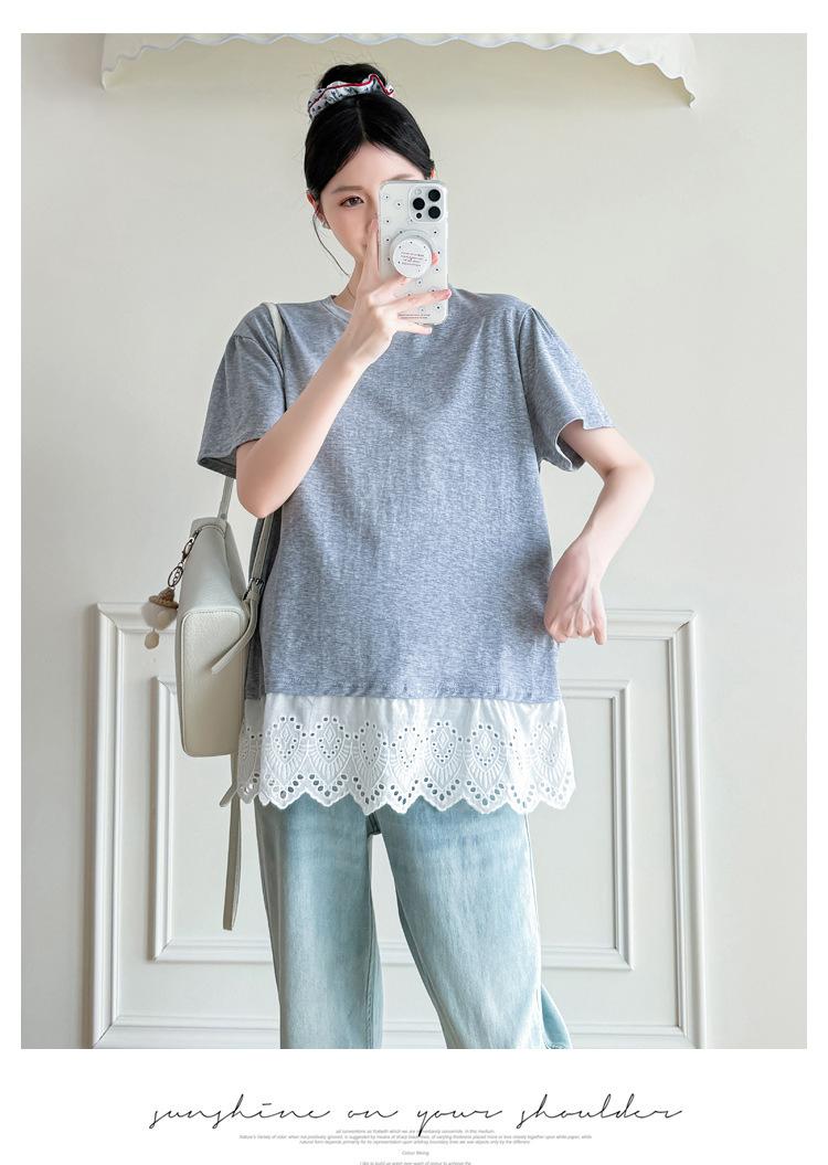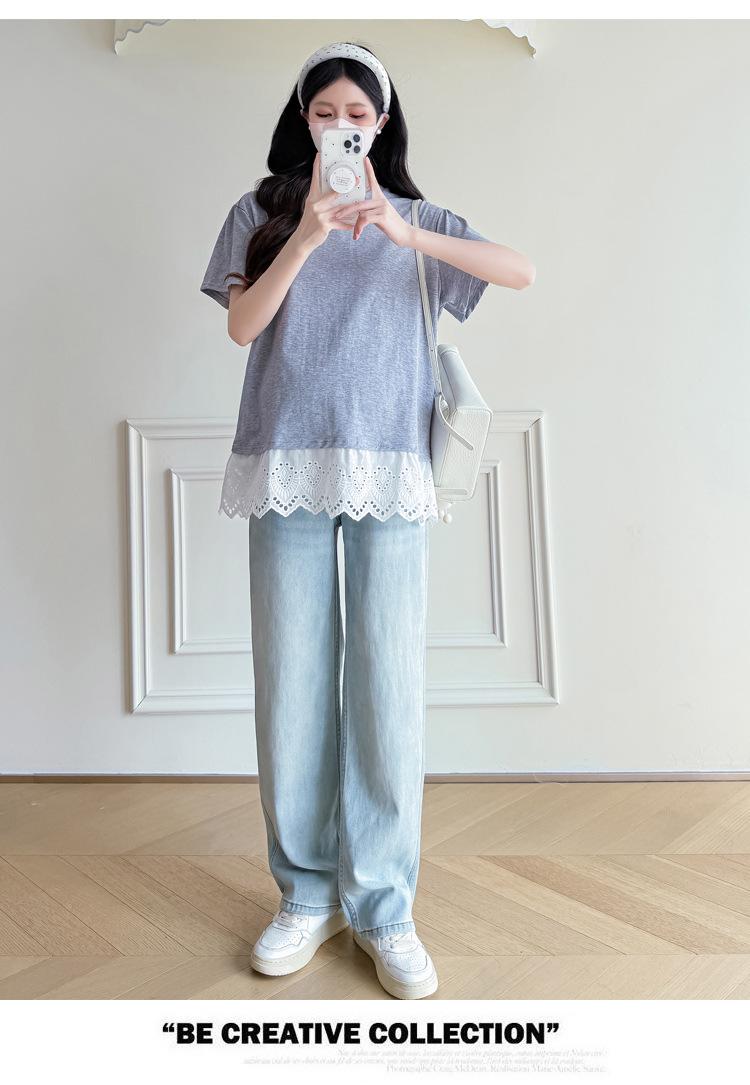 Ropa de Maternidad 2025 Verano Nueva Moda Elegante Diseño de Camiseta de Manga Corta Encaje Holgado Revelador Top de Maternidad