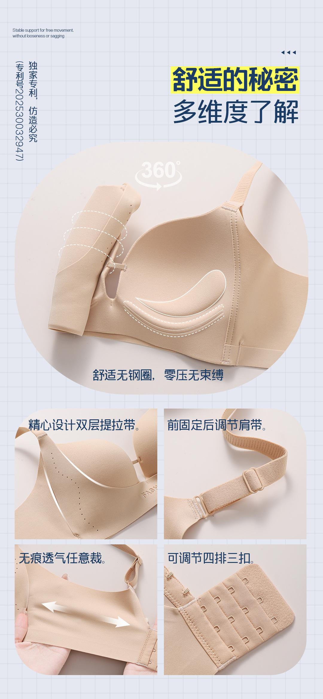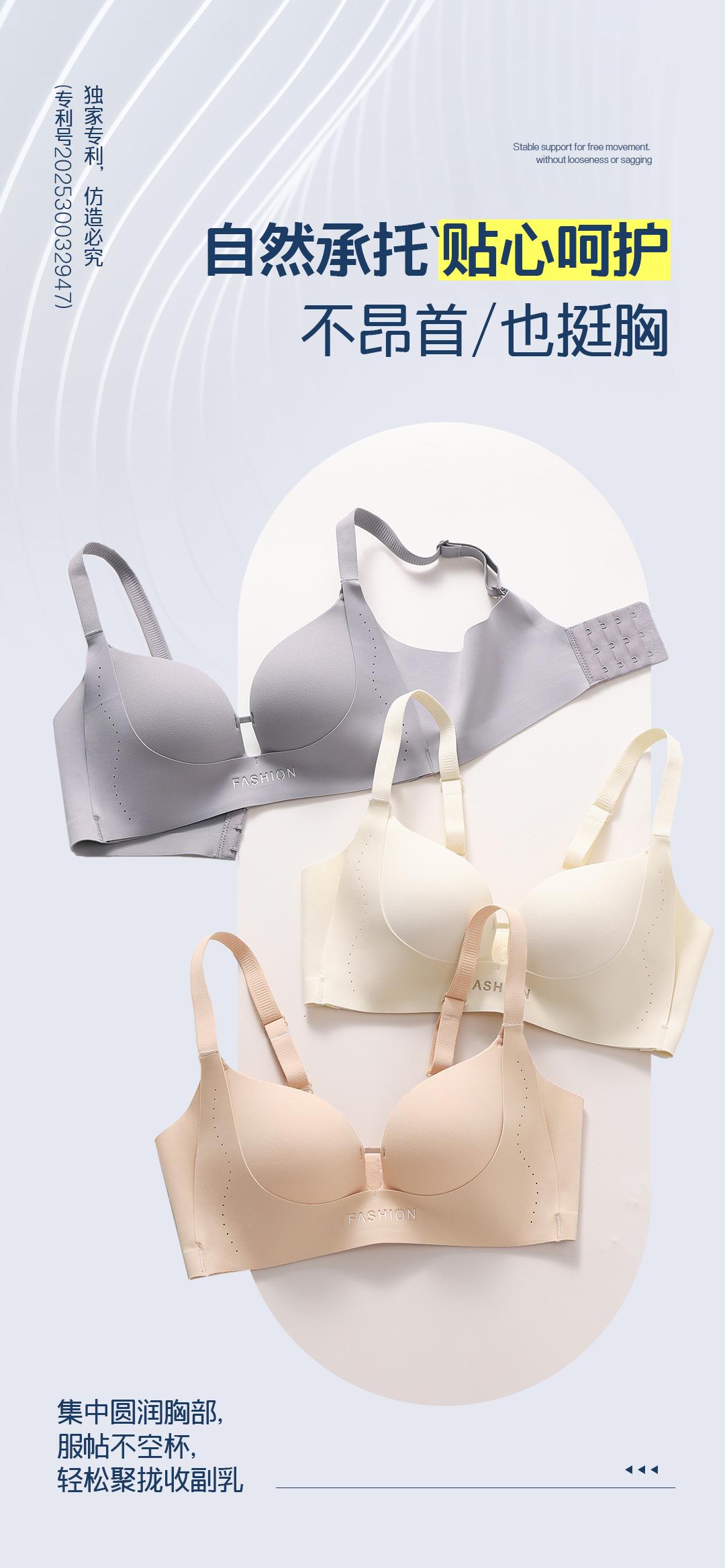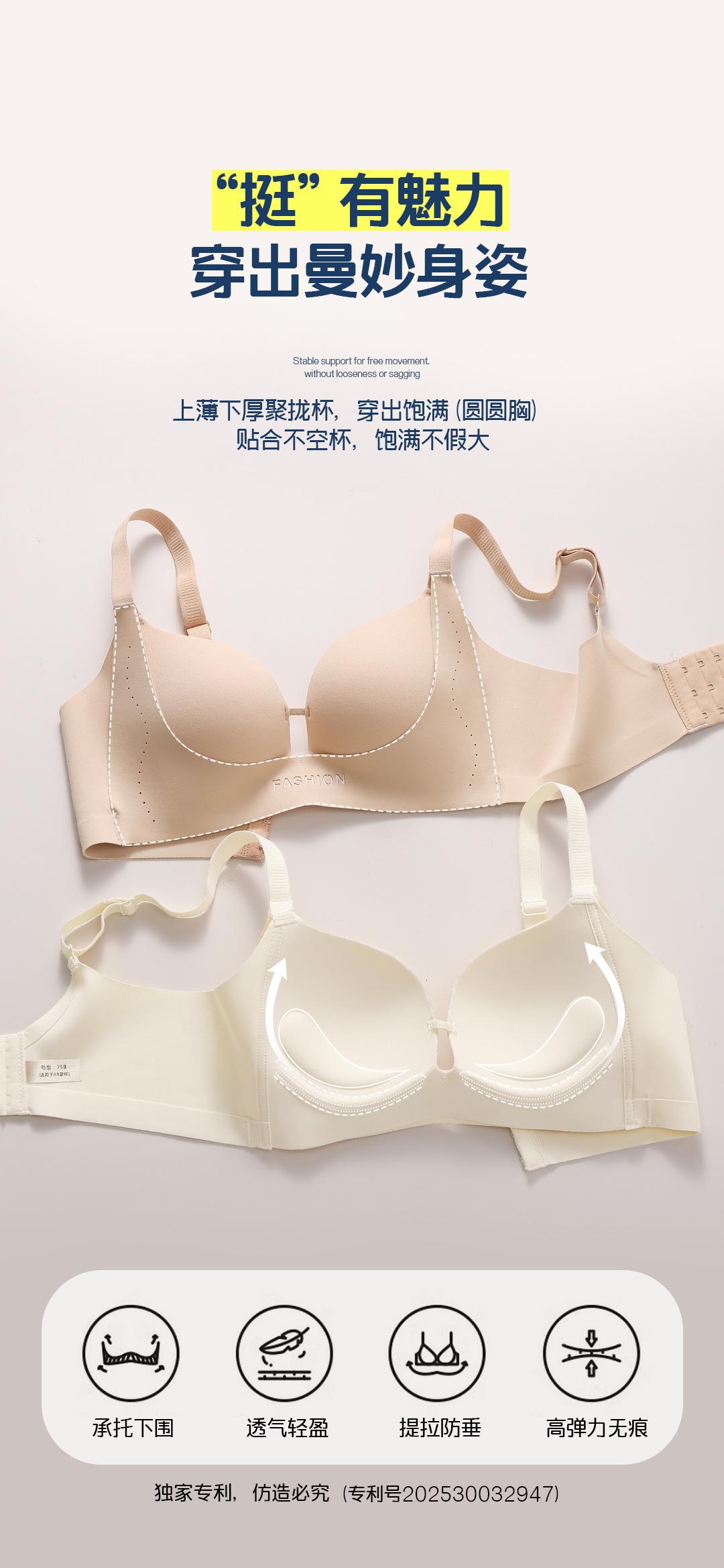 Ropa interior sin costuras para mujer, copa pequeña, realce, grande, sin aro de acero, transpirable, con soporte lateral, anti flacidez, brasier ajustable
