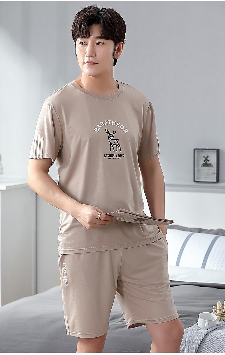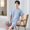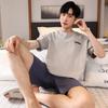 Pijama Nuevo de Algodón Puro para Hombre Verano Manga Corta Shorts Estilo Casual Delgado Se Puede Usar Afuera Traje Ropa de Casa para Hombre Venta al por Mayor