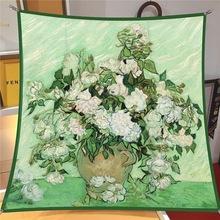 Pañuelo Cuadrado de Seda Twill 70 para Mujer Primavera Nuevo Estilo Hecho a Mano Orilla Enrollada Chal Pañuelo Doble Propósito Transfronterizo de Alta Gama Versátil