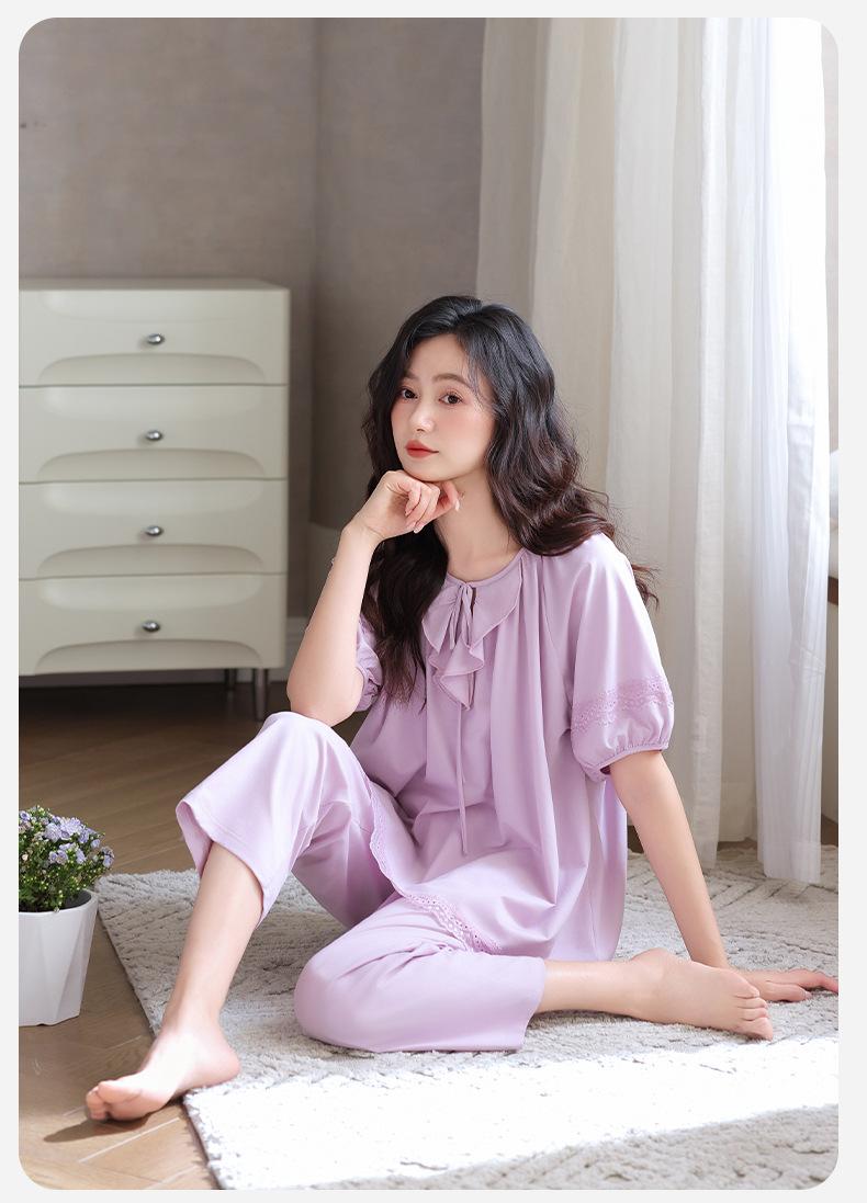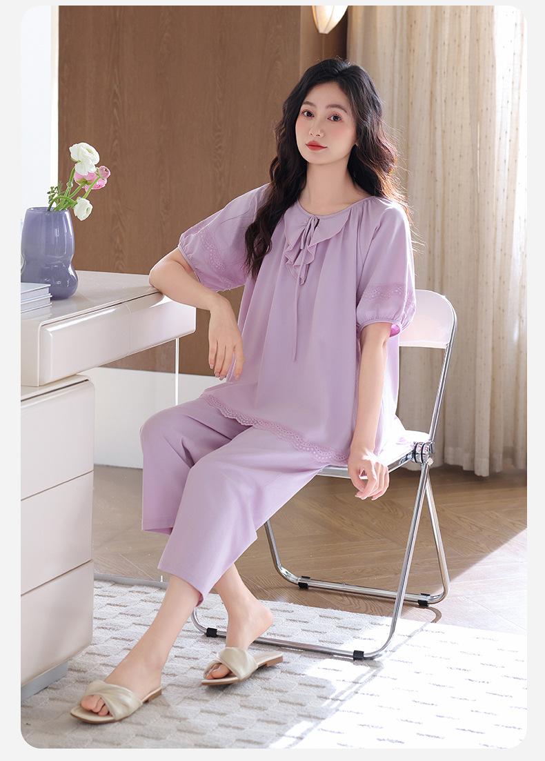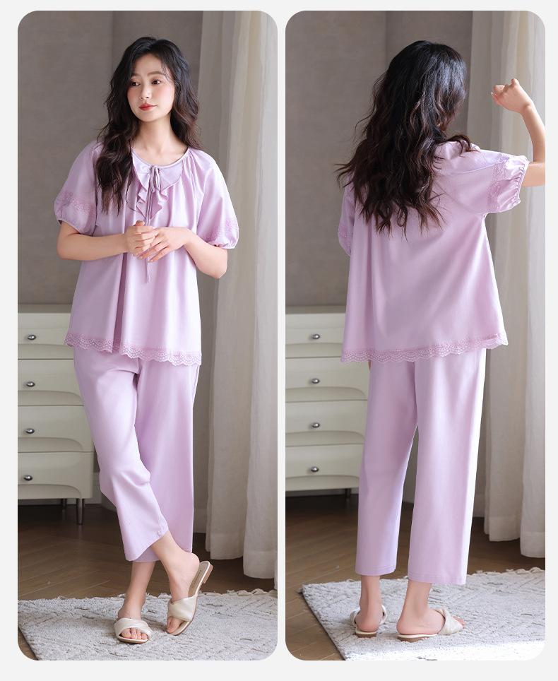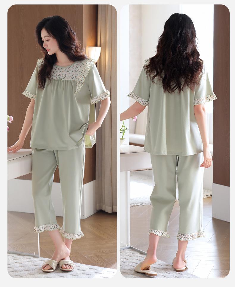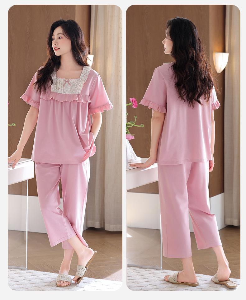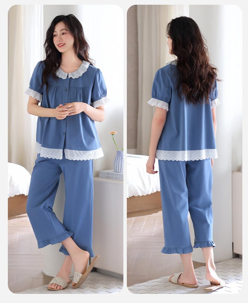 Pijamas para Mujer Verano Algodón Puro Manga Corta Pantalones Delgados Verano Estilo Princesa 2025 Nuevo Verano Conjunto Ropa de Casa