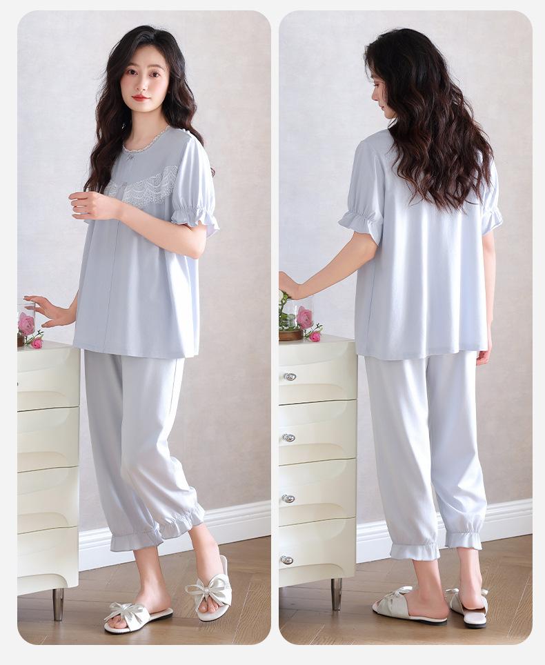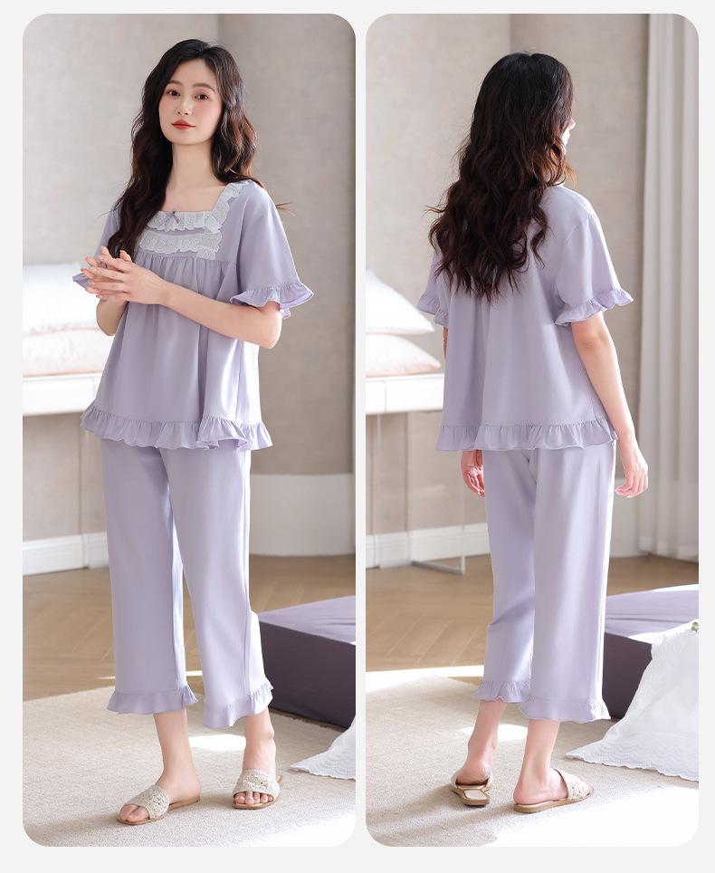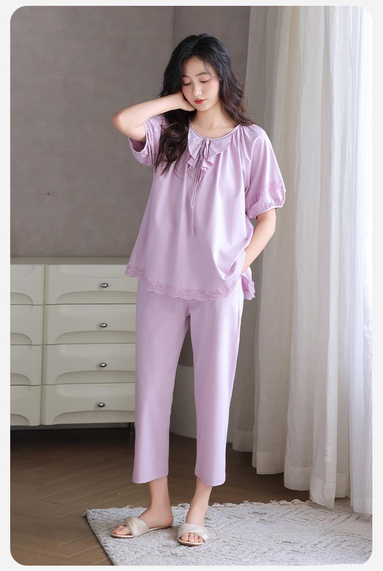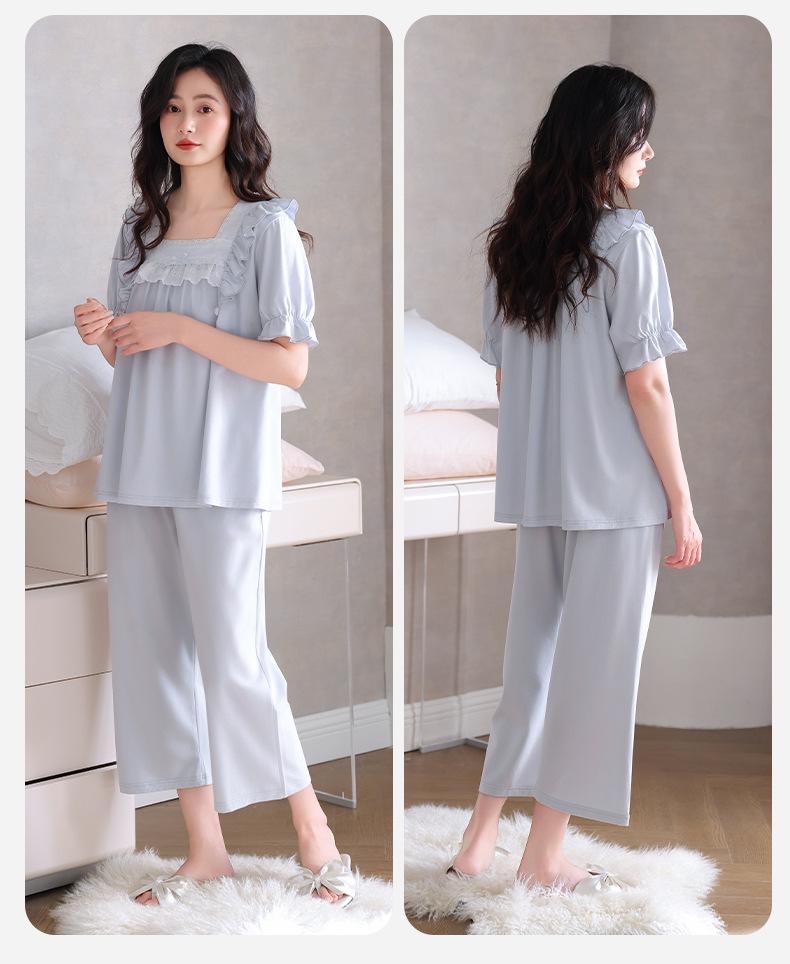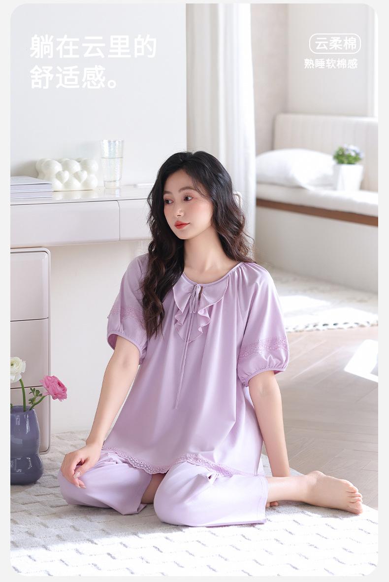 Pijamas para Mujer Verano Algodón Puro Manga Corta Pantalones Delgados Verano Estilo Princesa 2025 Nuevo Verano Conjunto Ropa de Casa