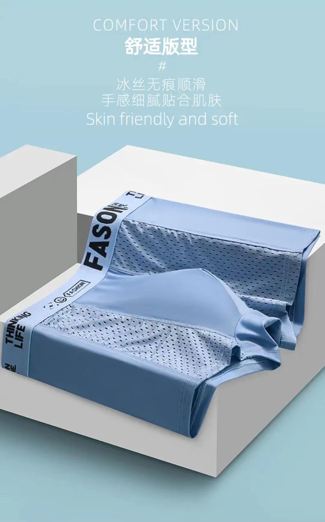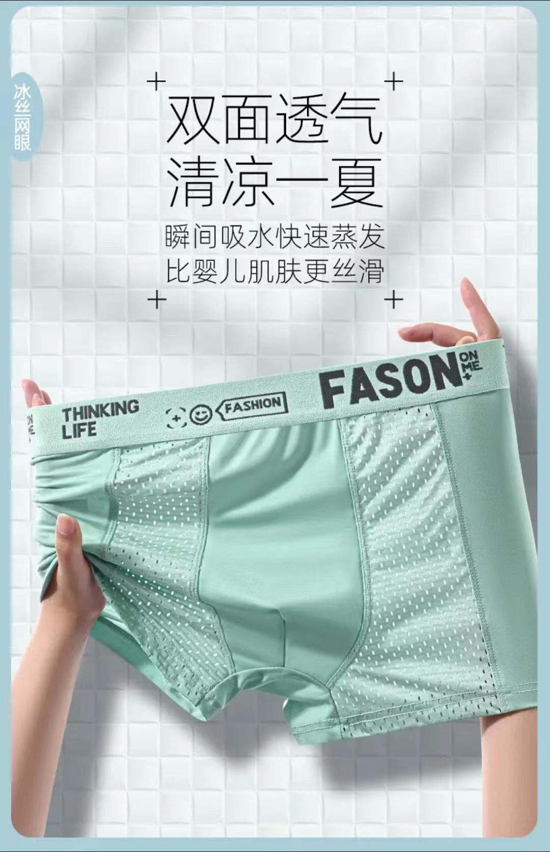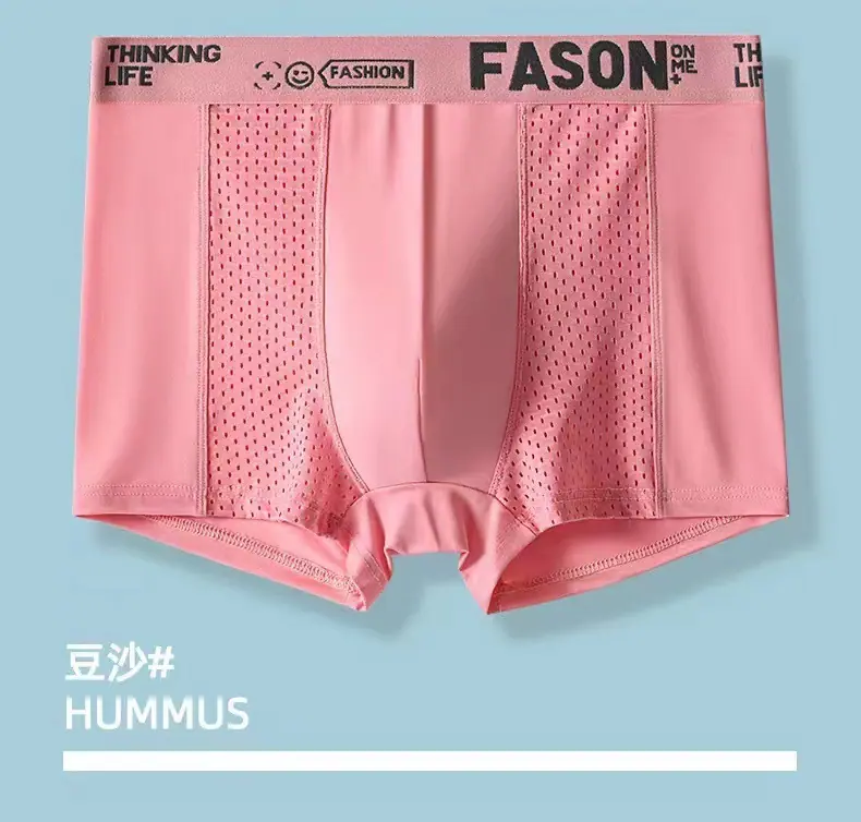 Suministro transfronterizo de calzoncillos tipo bóxer de malla de color sólido de verano para hombre, cómodos y transpirables, ropa interior de seda helada para hombre de fábrica.