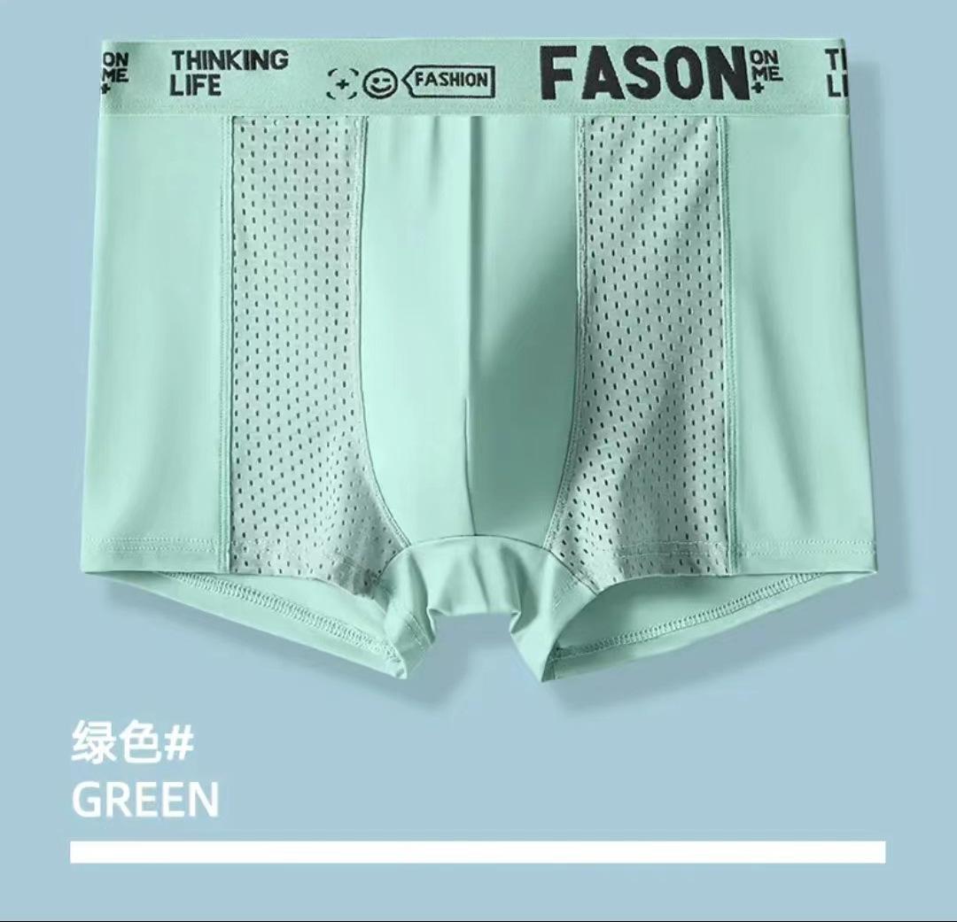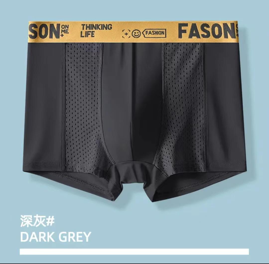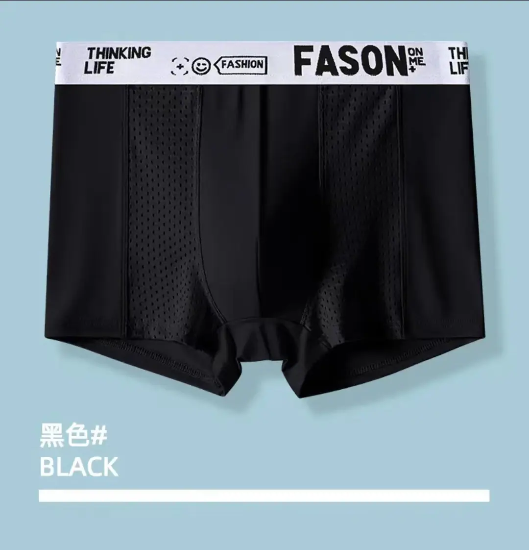 Suministro transfronterizo de calzoncillos tipo bóxer de malla de color sólido de verano para hombre, cómodos y transpirables, ropa interior de seda helada para hombre de fábrica.