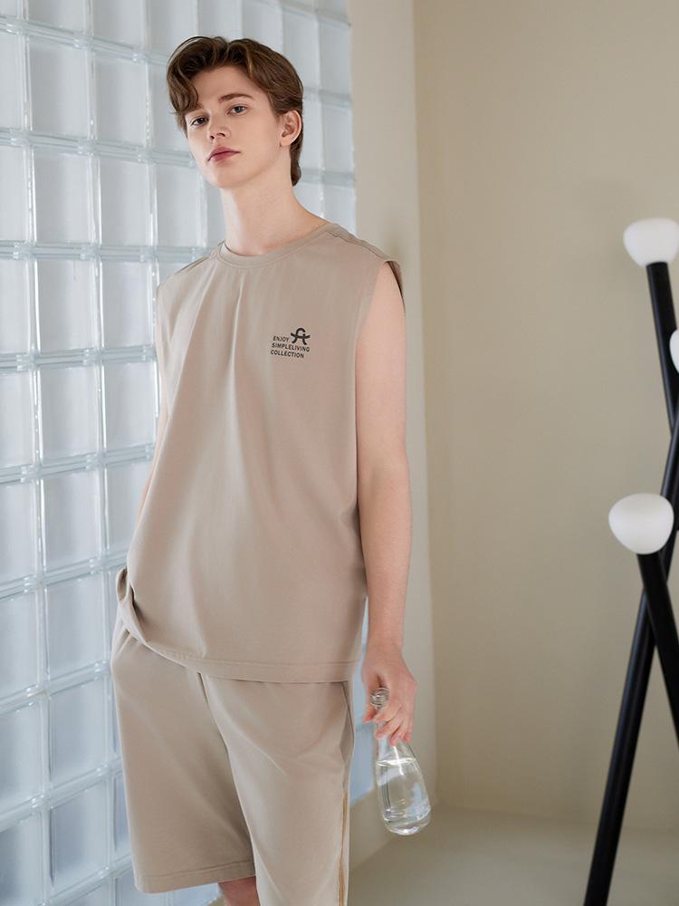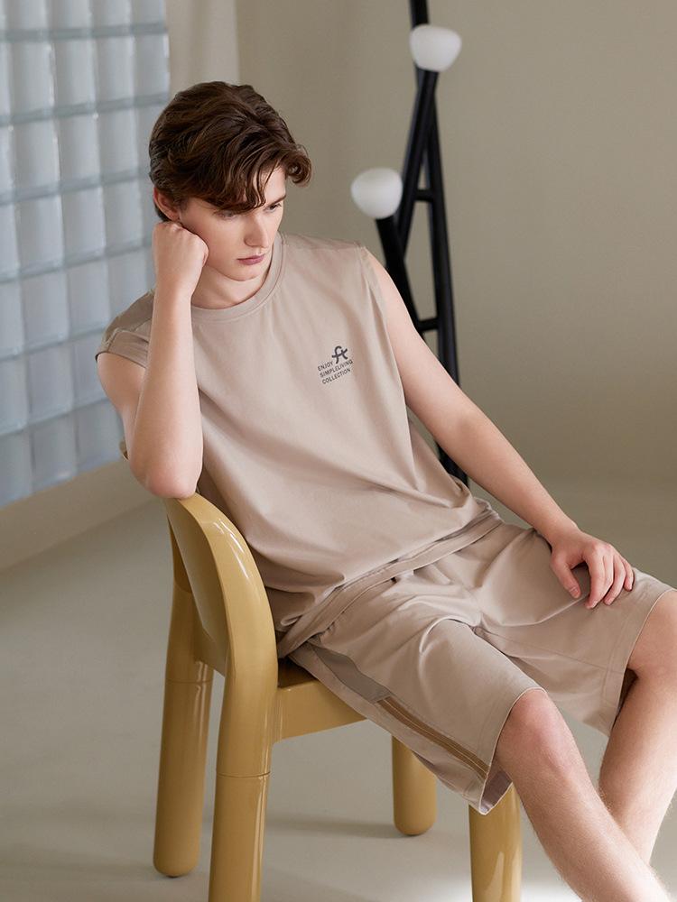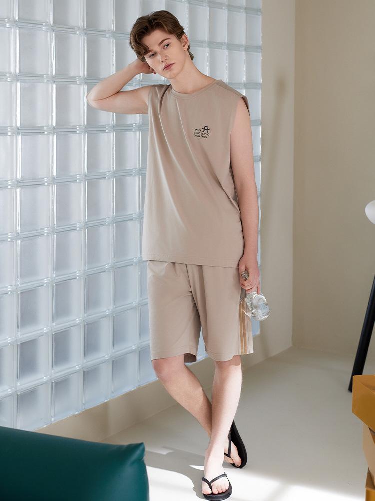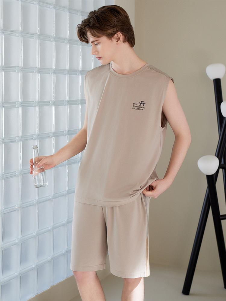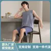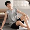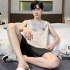 Pijama de Verano para Hombre Algodón Puro Chaleco sin Mangas Shorts Delgados Transpirables Talla Grande Holgado Se Puede Usar Fuera Conjunto de Ropa para el Hogar