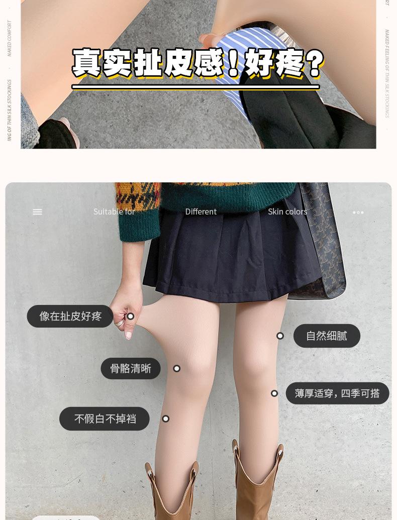 Calcetines bajos para mujer, artefacto para piernas desnudas, doble capa de 720 agujas, otoño e invierno, medias color carne natural, pantimedias gruesas afelpadas