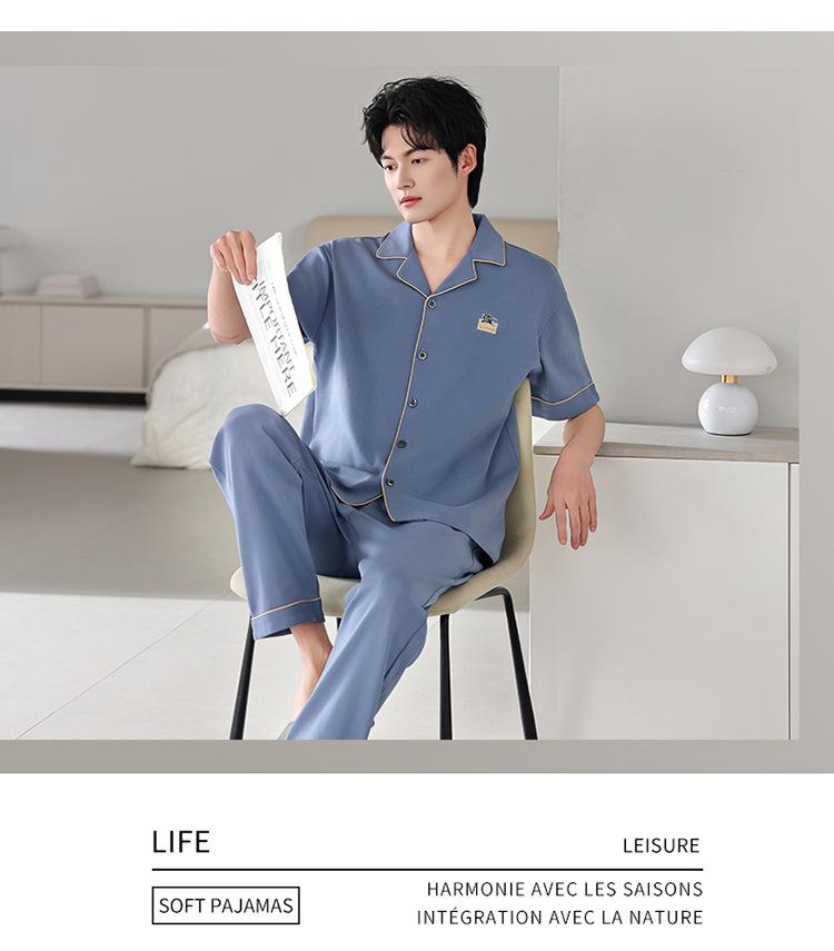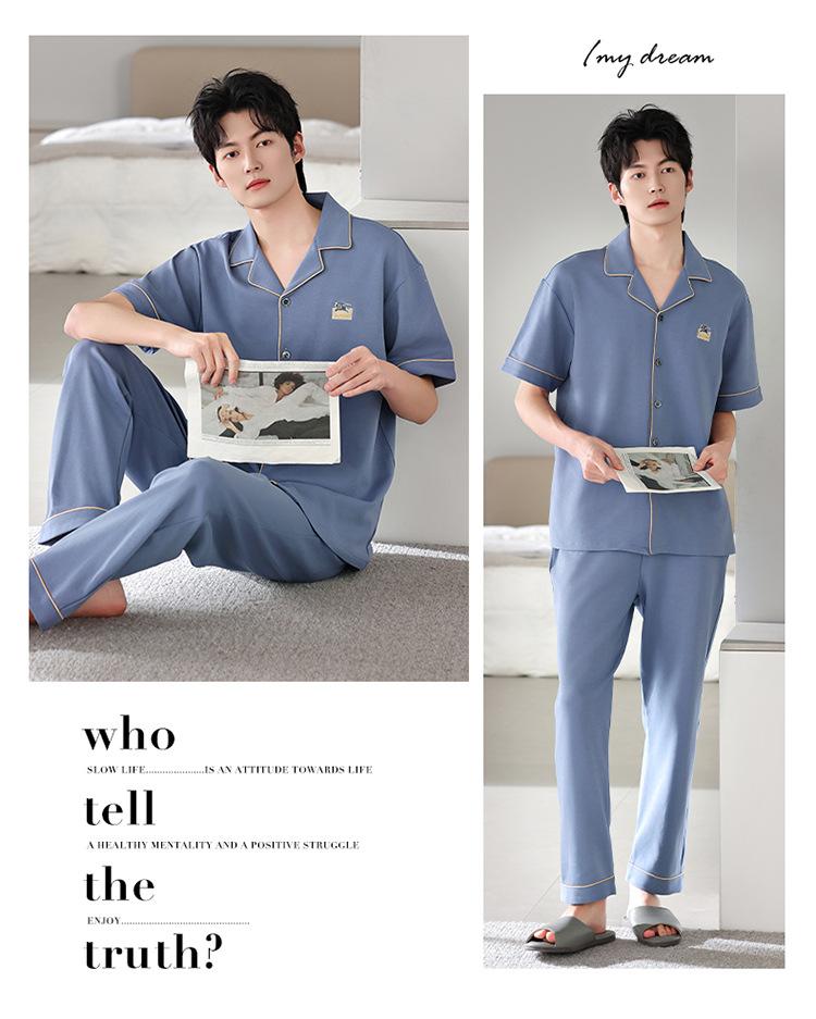 Pijamas de Algodón Puro para Hombre Verano Pantalones de Manga Corta 2025 Nuevo Estilo Se Puede Usar Afuera Casual de Alta Gama Talla Grande Conjunto de Ropa para el Hogar