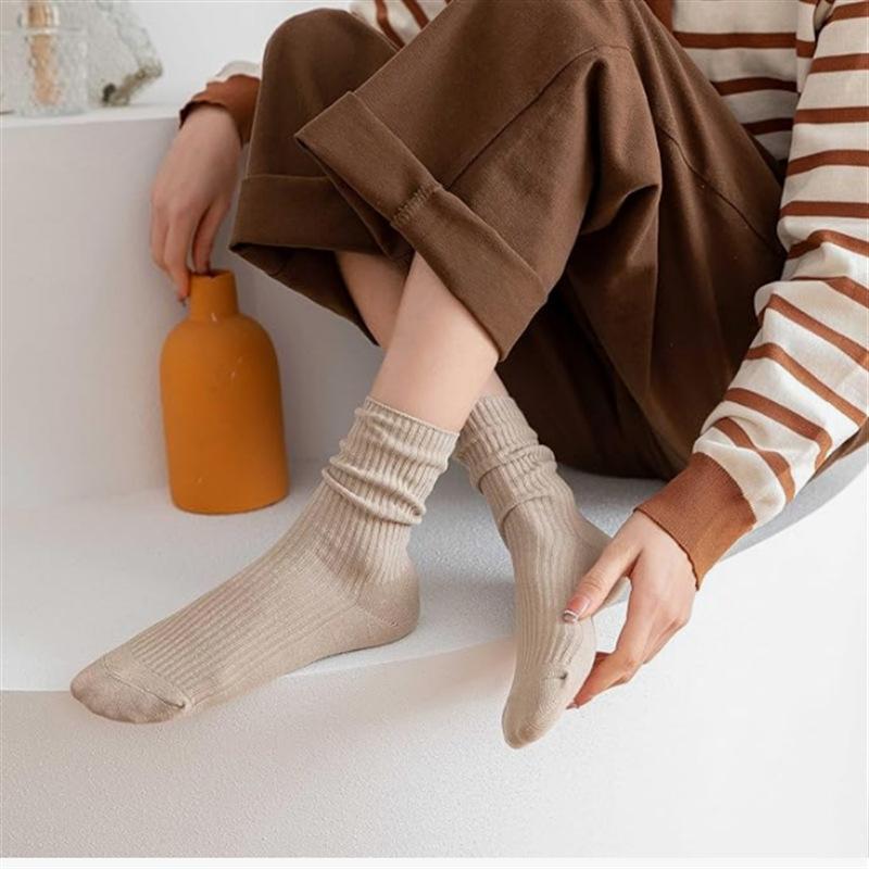 Calcetines blancos holgados para mujer, primavera y otoño, calcetines de media caña de algodón transpirable y absorbente del sudor, calcetines largos modernos al por mayor, transpirables y absorbentes del sudor