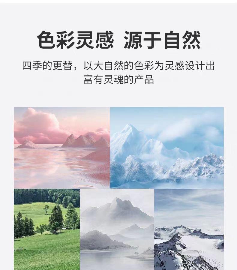 Blue gray, Bamboo green, Sky blue, Taro purple, Silver gray, Mint green, Black