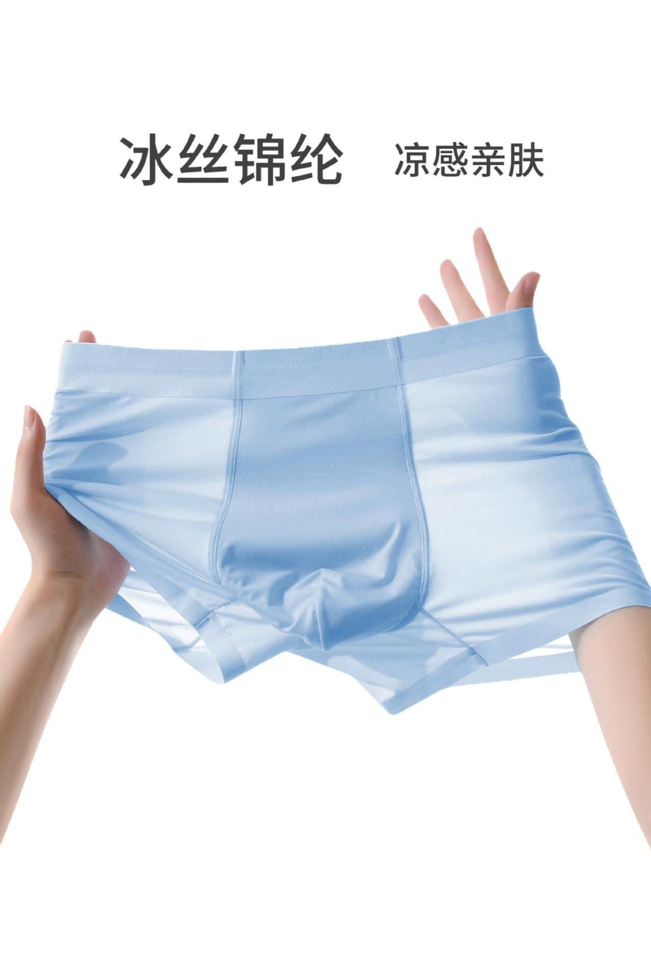 Nuevos Calzoncillos Bóxer para Hombre de Seda de Hielo Transpirable de Secado Rápido, de Una Pieza, Cintura Media, Sin Costuras, Antibacterianos 7A