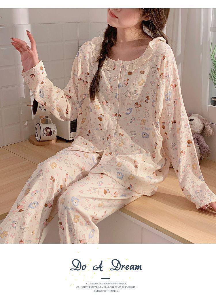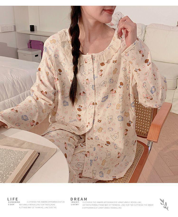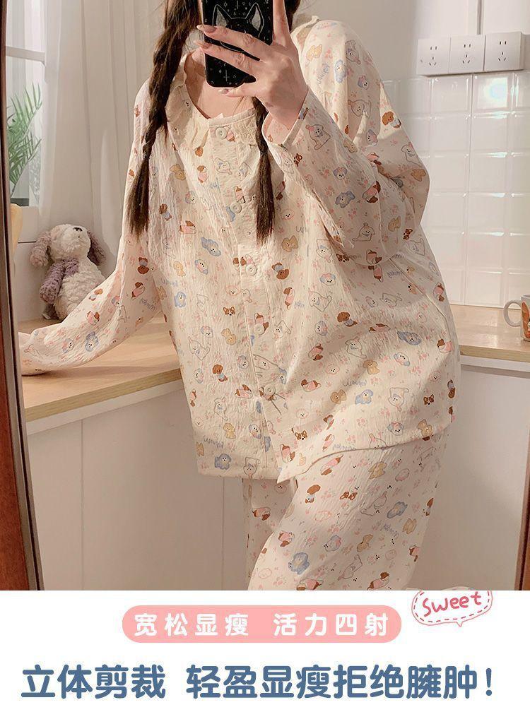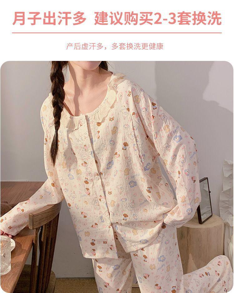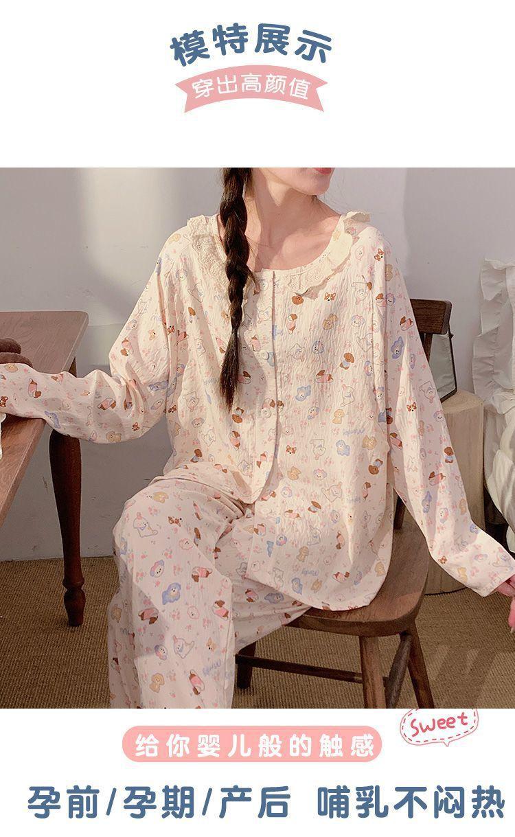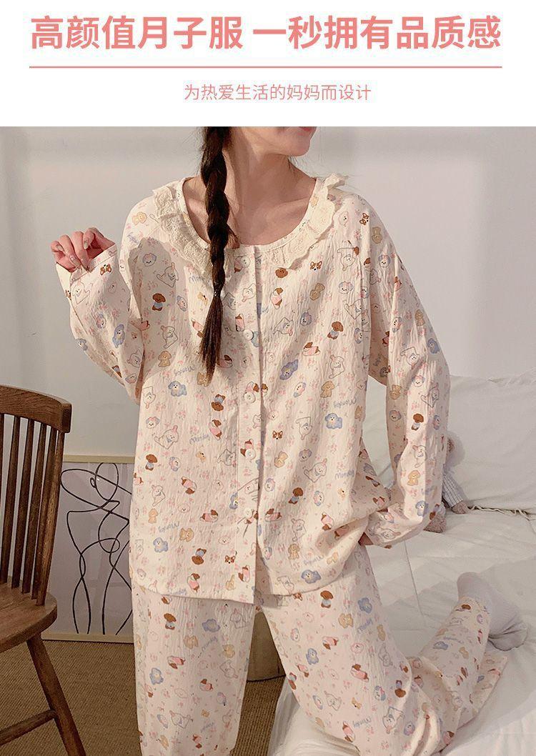 Ropa de Confinamiento de Verano, Gasa de Algodón, Delgada, Transpirable, Pijama de Maternidad Absorbente de Sudor, Ropa para el Hogar, Ropa de Lactancia para Maternidad, Ropa de Maternidad