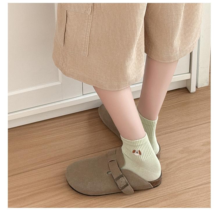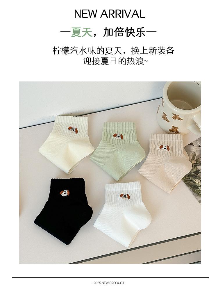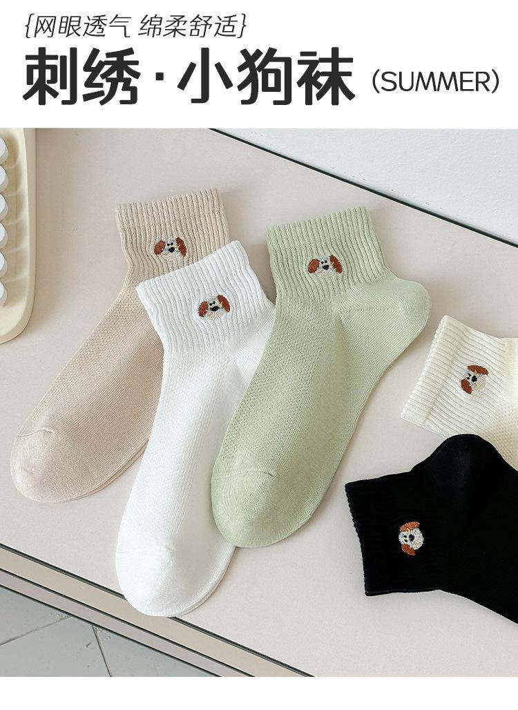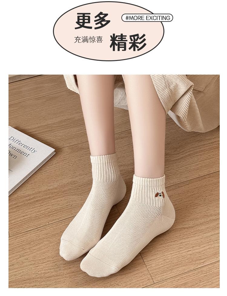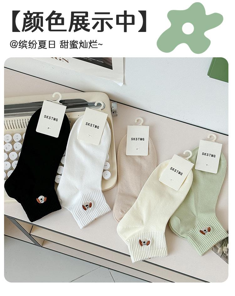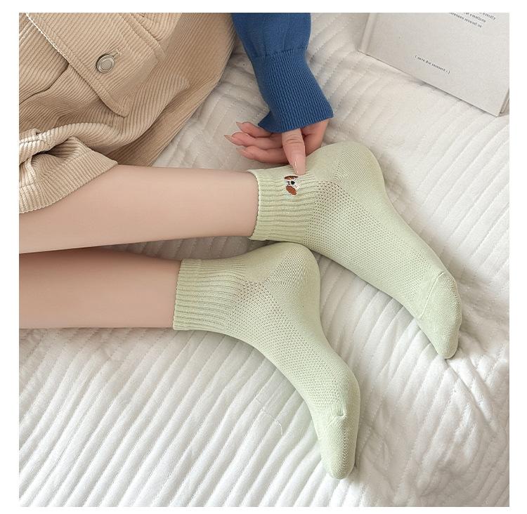 Calcetines de Barco Calcetines de Algodón Puro para Mujer Verano Delgados Calcetines Colegiales de Malla Bordados de Dibujos Animados sin Costuras Calcetines de Algodón para Mujer