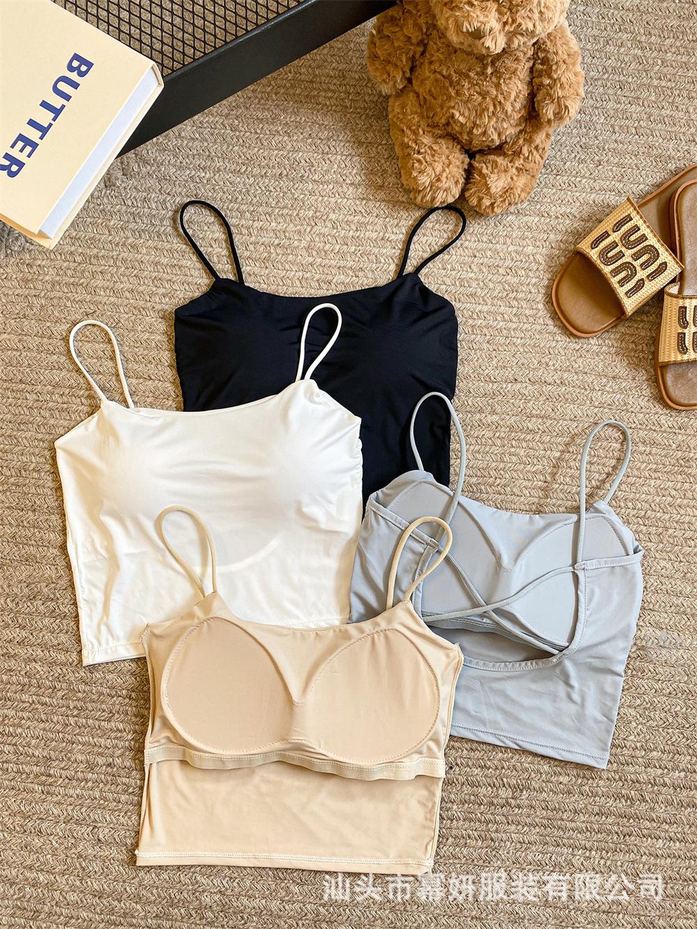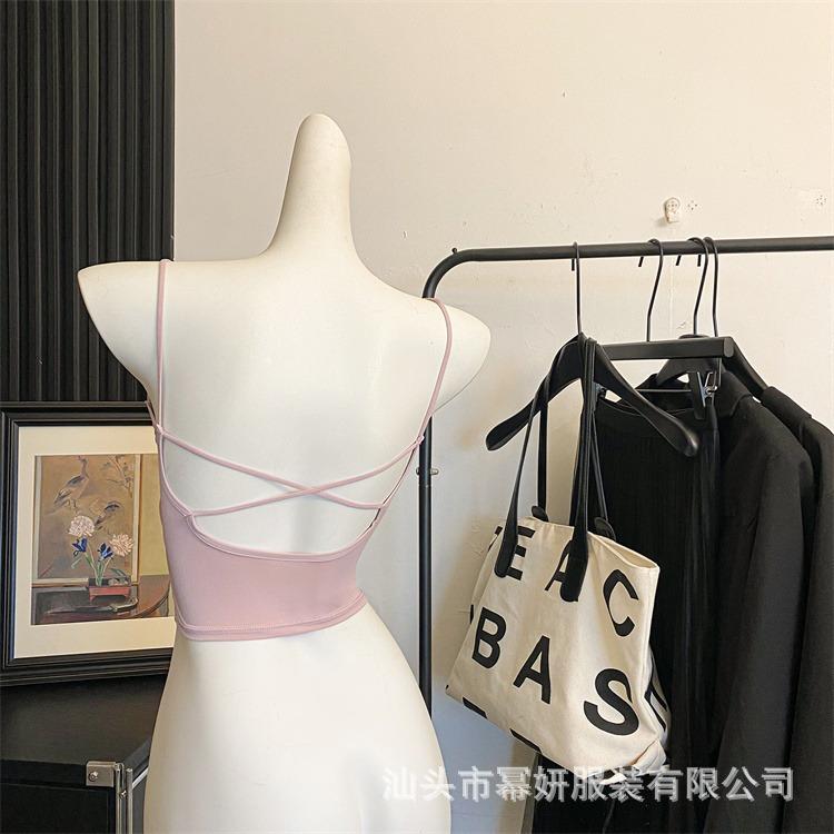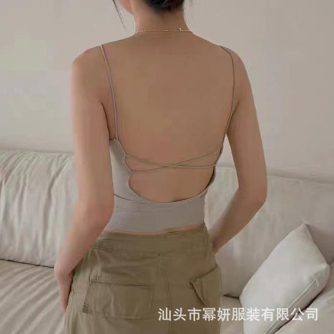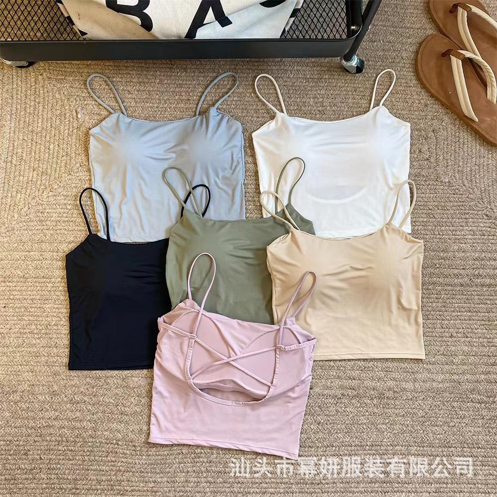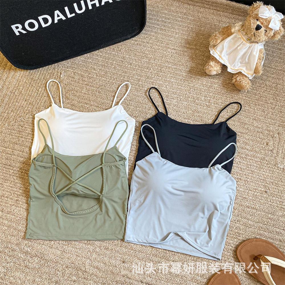 Seda de Hielo Sexy Combinable Tirante Delgado Chaleco Espalda Hermosa Cruzado para Mujer Top Básico Ajustado Interior con Almohadilla en el Pecho
