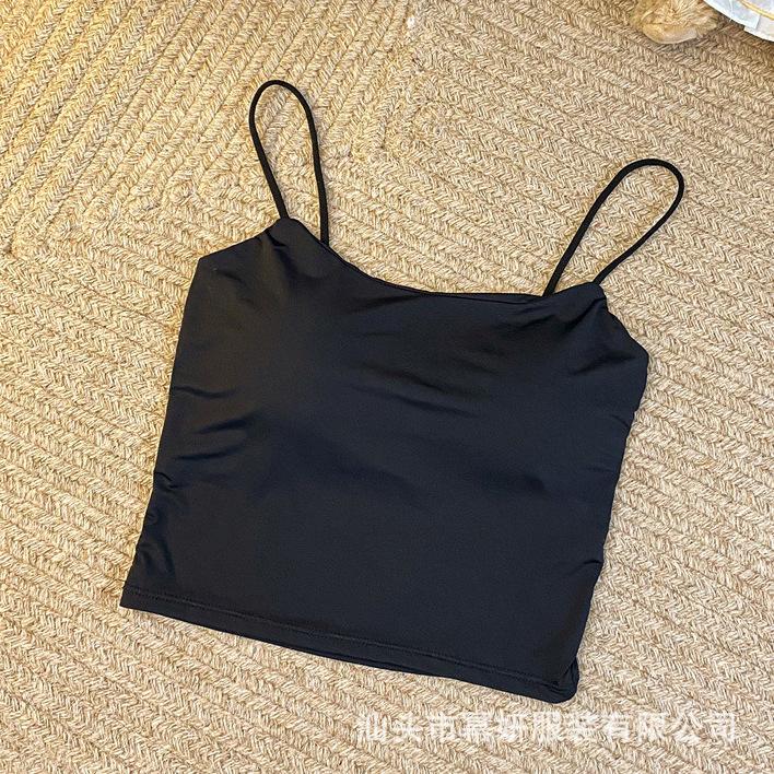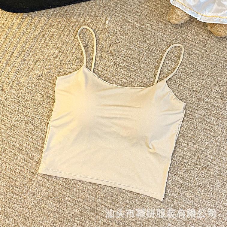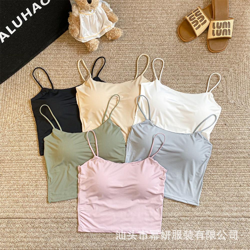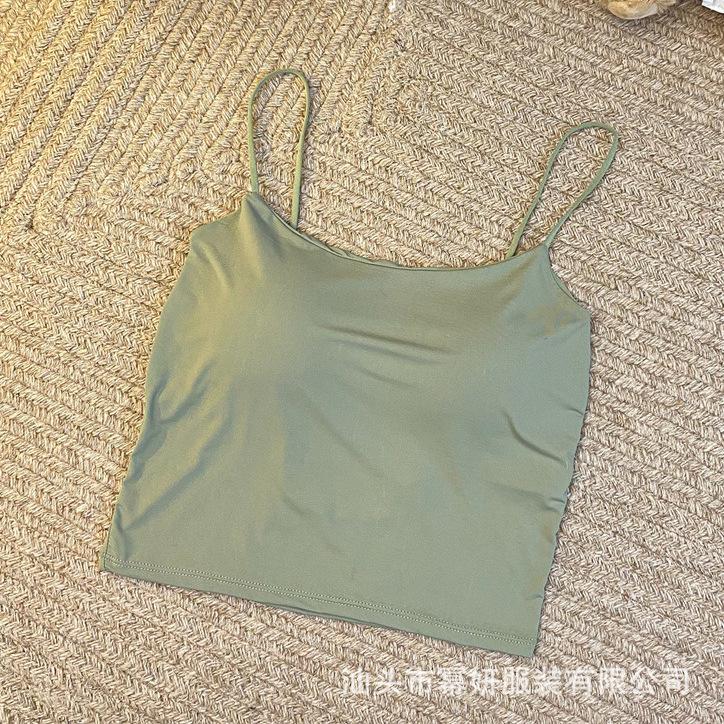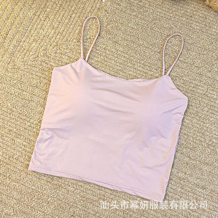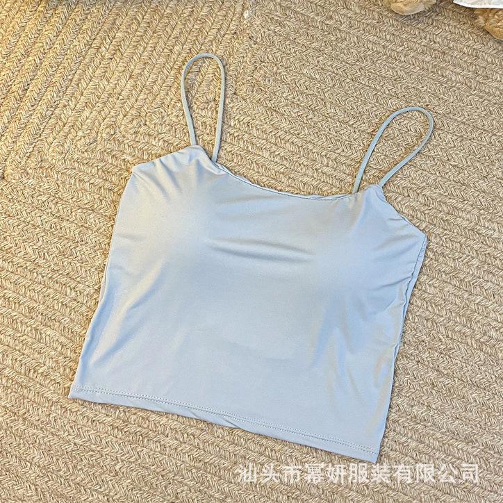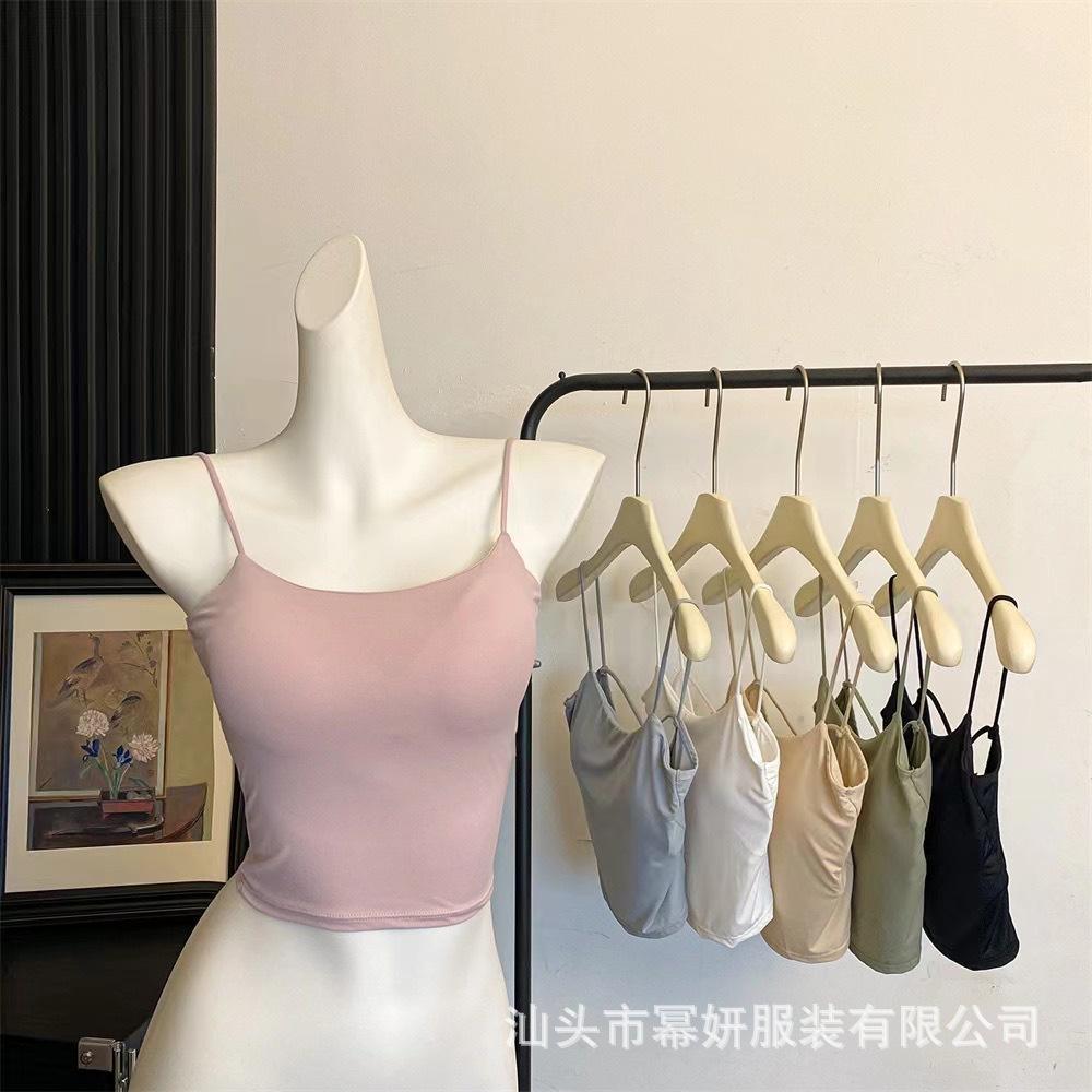 Seda de Hielo Sexy Combinable Tirante Delgado Chaleco Espalda Hermosa Cruzado para Mujer Top Básico Ajustado Interior con Almohadilla en el Pecho