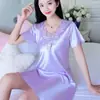 Pijamas para Mujer Verano Seda de Hielo Manga Corta Encaje Sexy Camisón de Seda de Alta Gama Verano Delgada Holgada Ropa para el Hogar