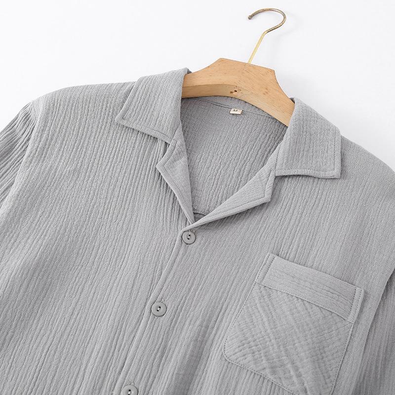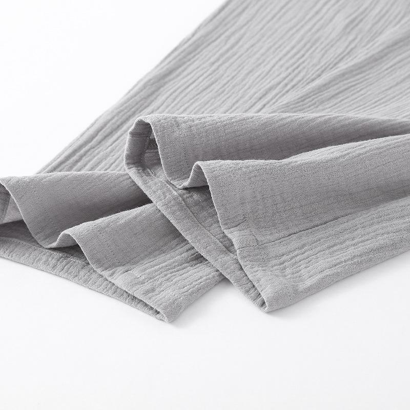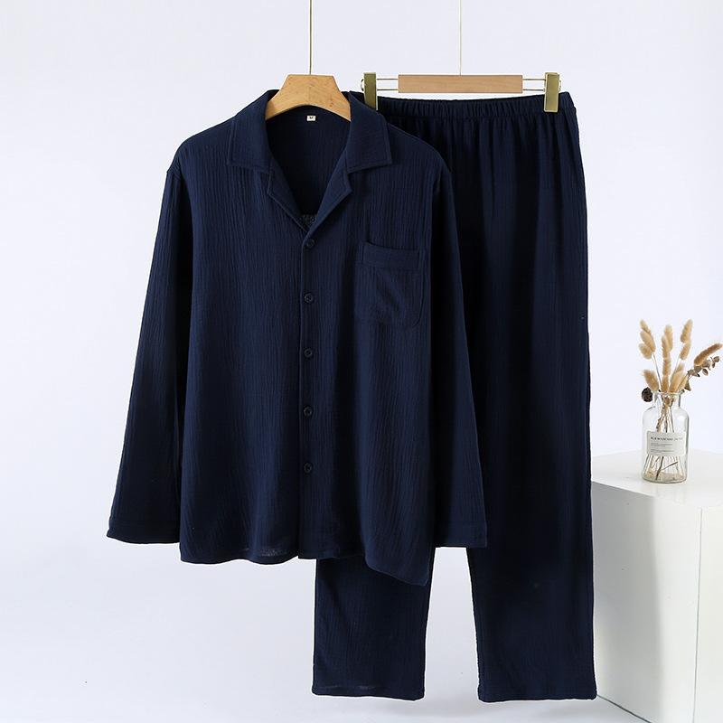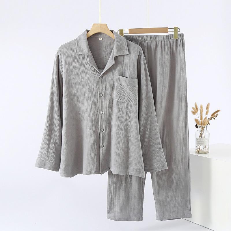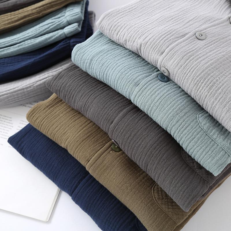 Pijamas de hombre primavera y otoño crepé puro algodón doble capa hilo de algodón cárdigan ropa de casa pantalones holgados de talla grande manga larga ropa de casa