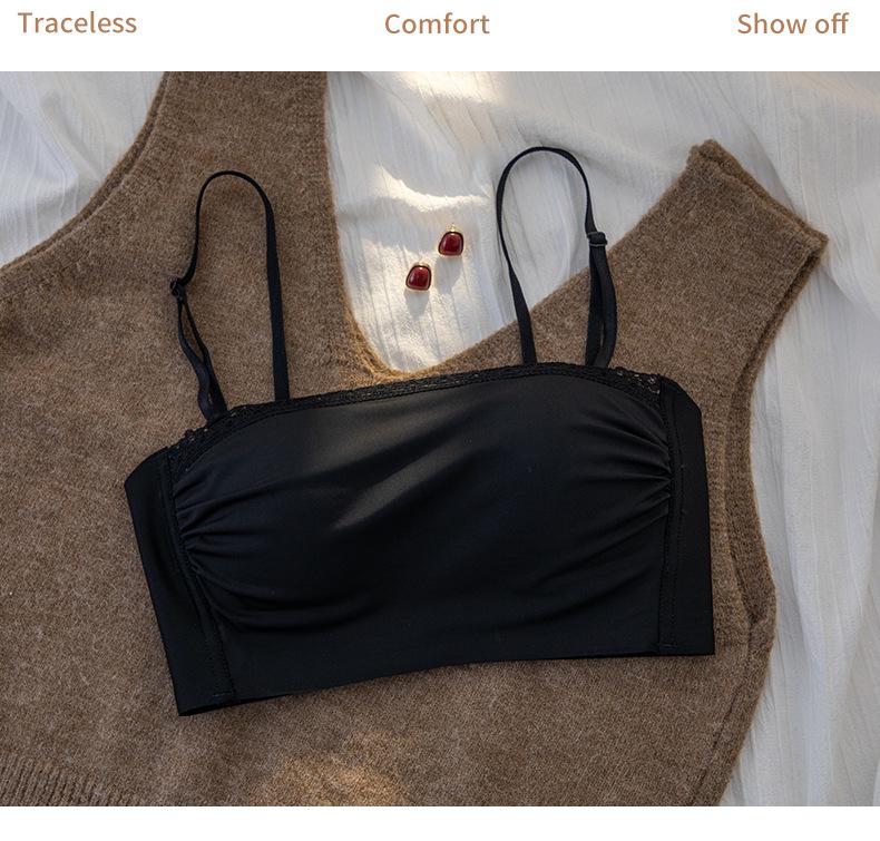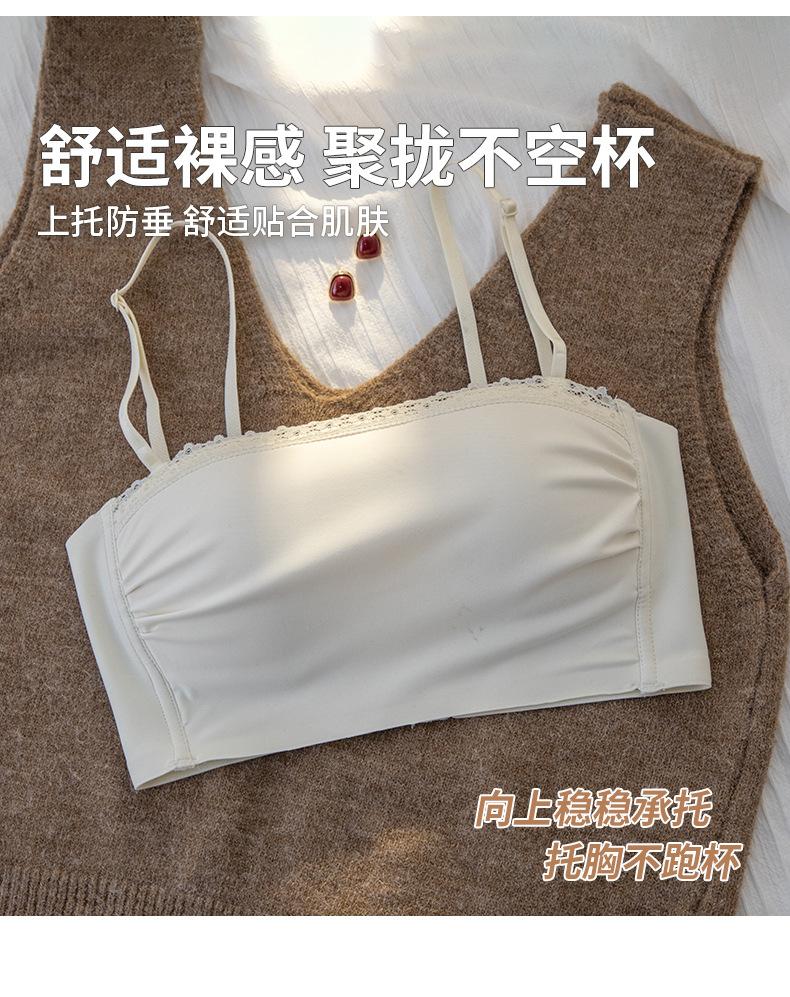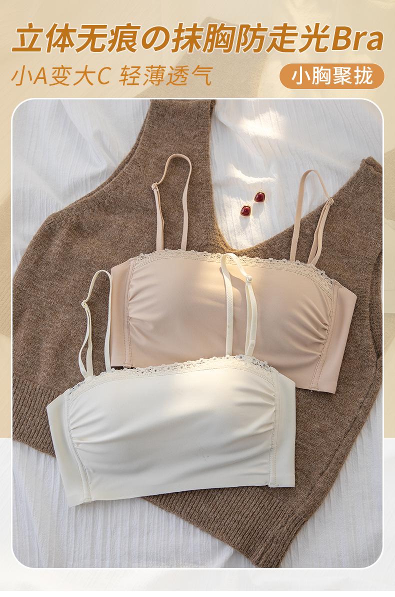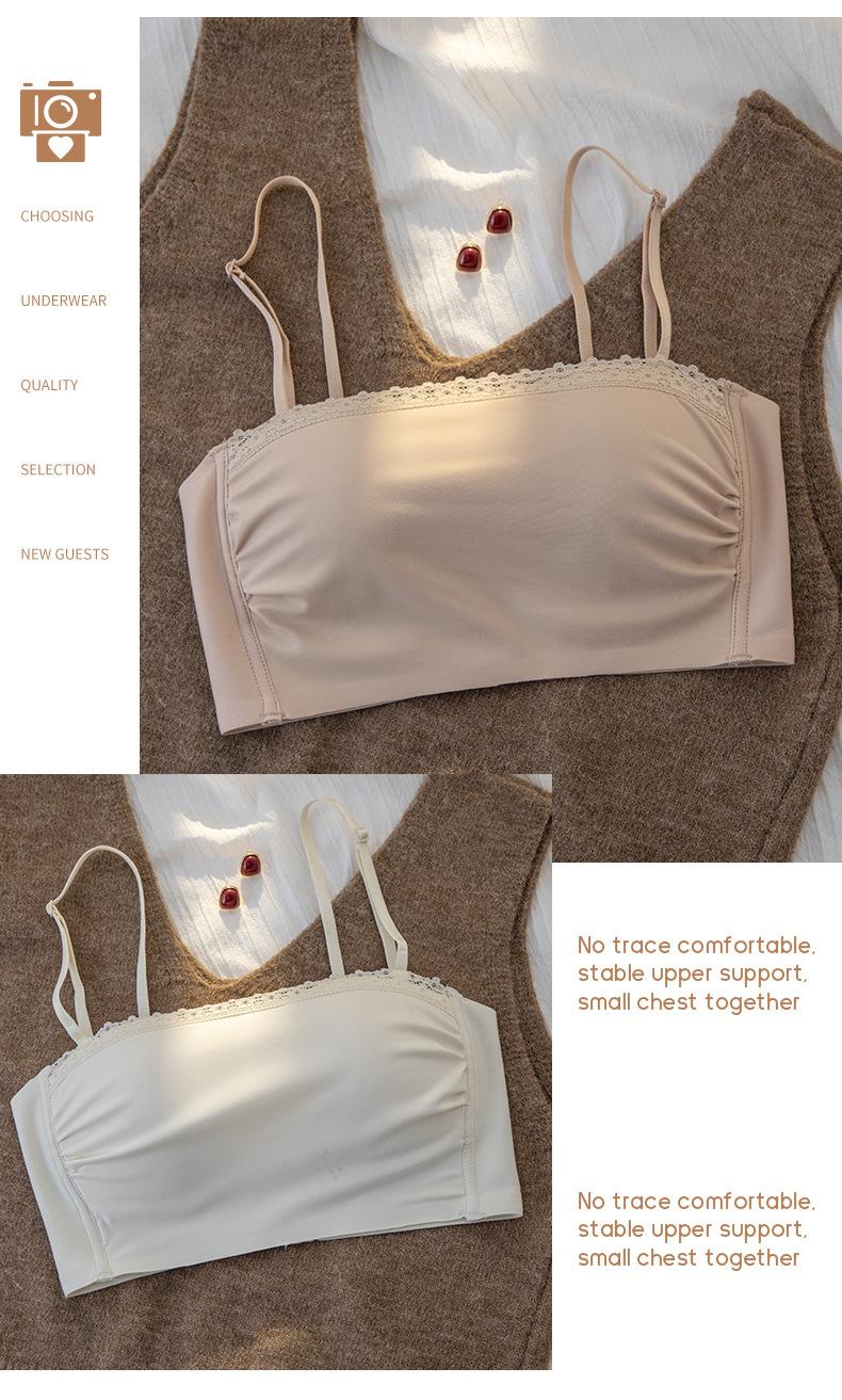 Verano Hermoso Top de Tubo con Espalda Descubierta para Mujeres con Busto Pequeño, Push-Up, Anti-Exposición, Tirantes Finos Ajustables Anti-Caída, Brasier Fino