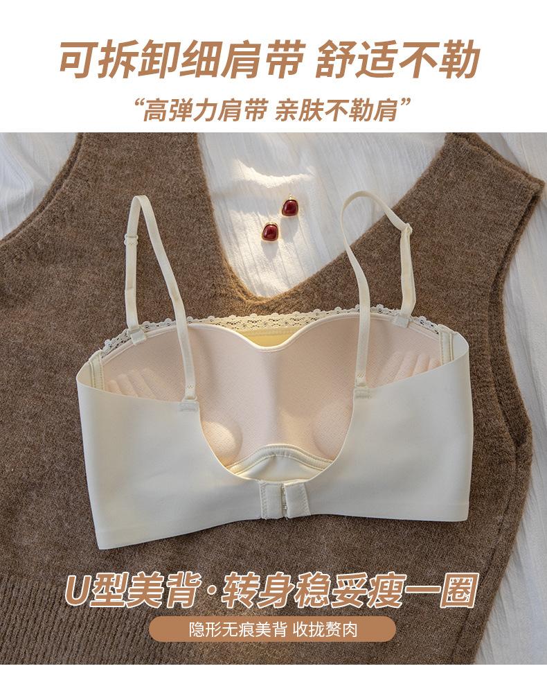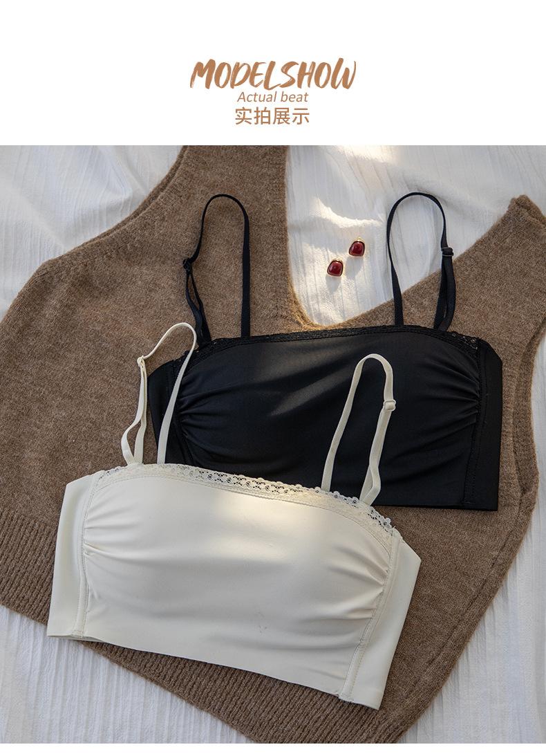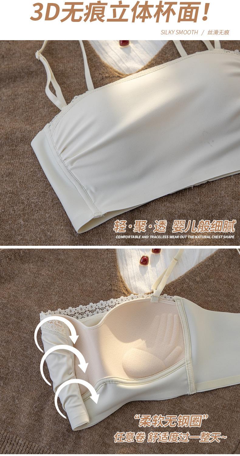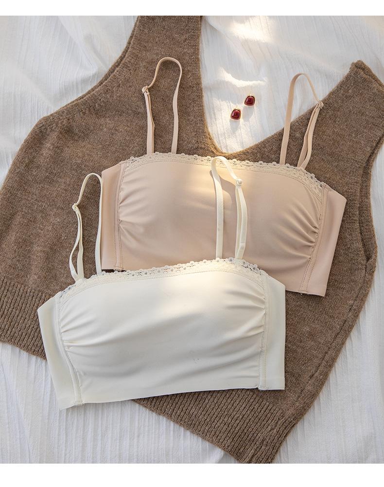 Verano Hermoso Top de Tubo con Espalda Descubierta para Mujeres con Busto Pequeño, Push-Up, Anti-Exposición, Tirantes Finos Ajustables Anti-Caída, Brasier Fino