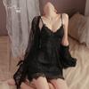 Compra Camisón de Encaje Transparente Graceful and Pure Desire con Cuello en V Profundo, Almohadilla de Pecho Fruncida, Set de Bata de Satén Suave para Mujer 4867 al por mayor en Joom.pro