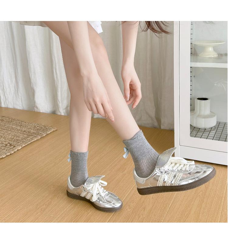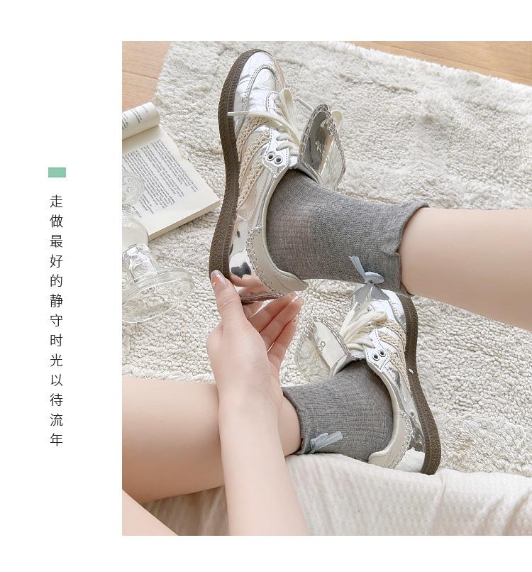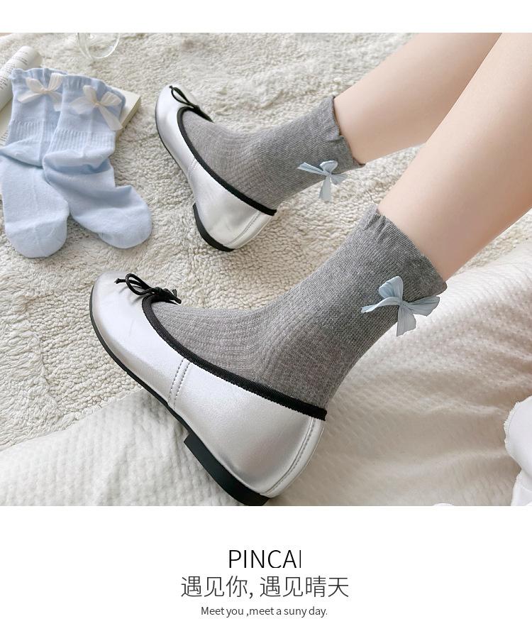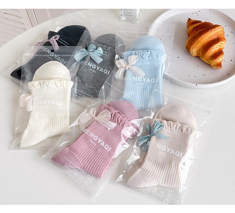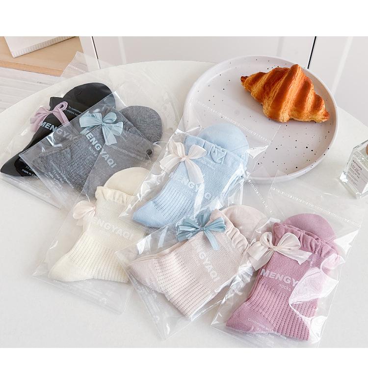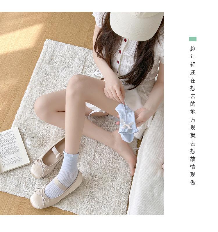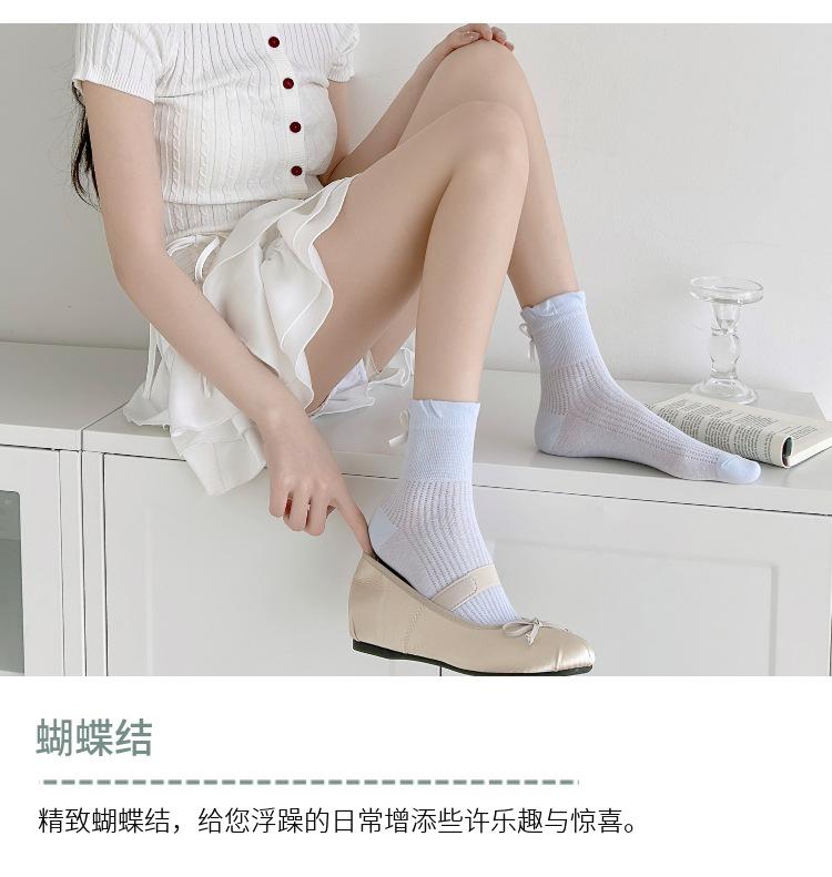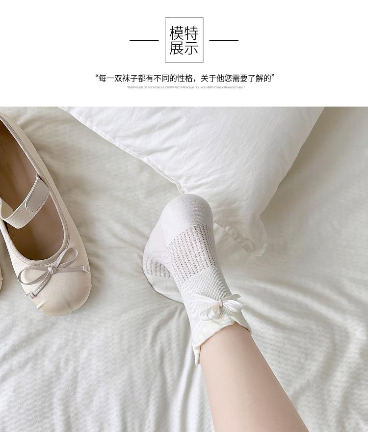 Calcetines con lazo para mujer primavera y verano delgados de algodón cinta calcetines de media caña japoneses de malla transpirables verano calcetines de felpa sin costuras
