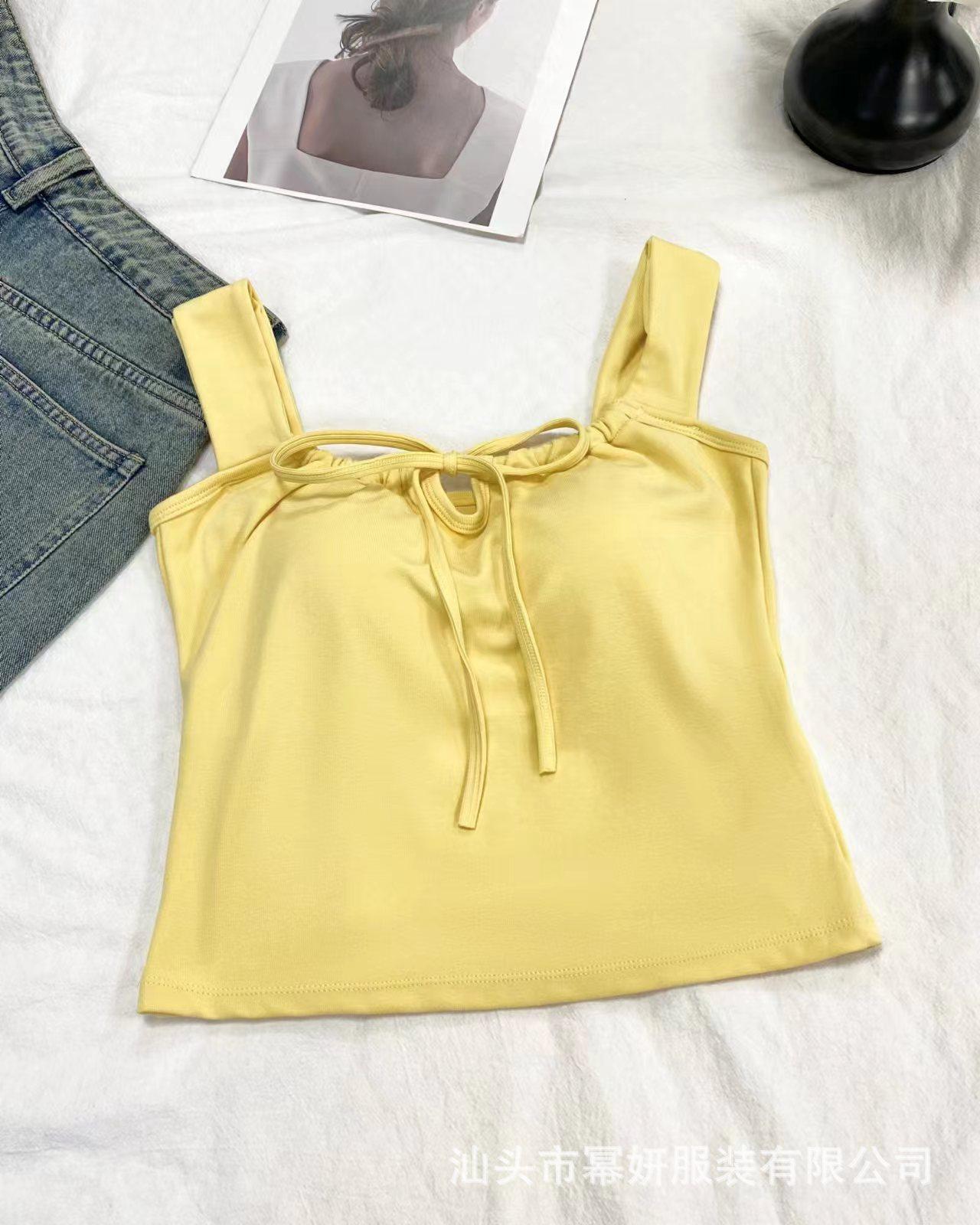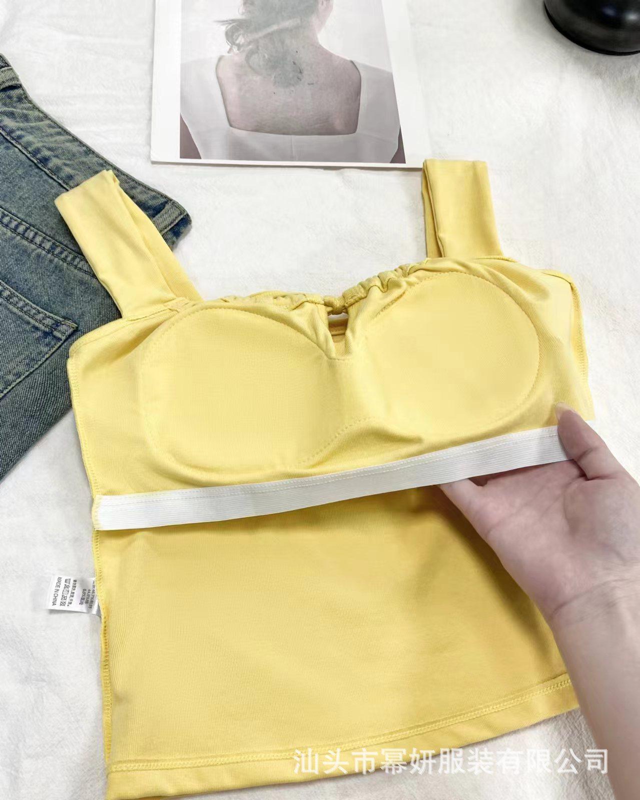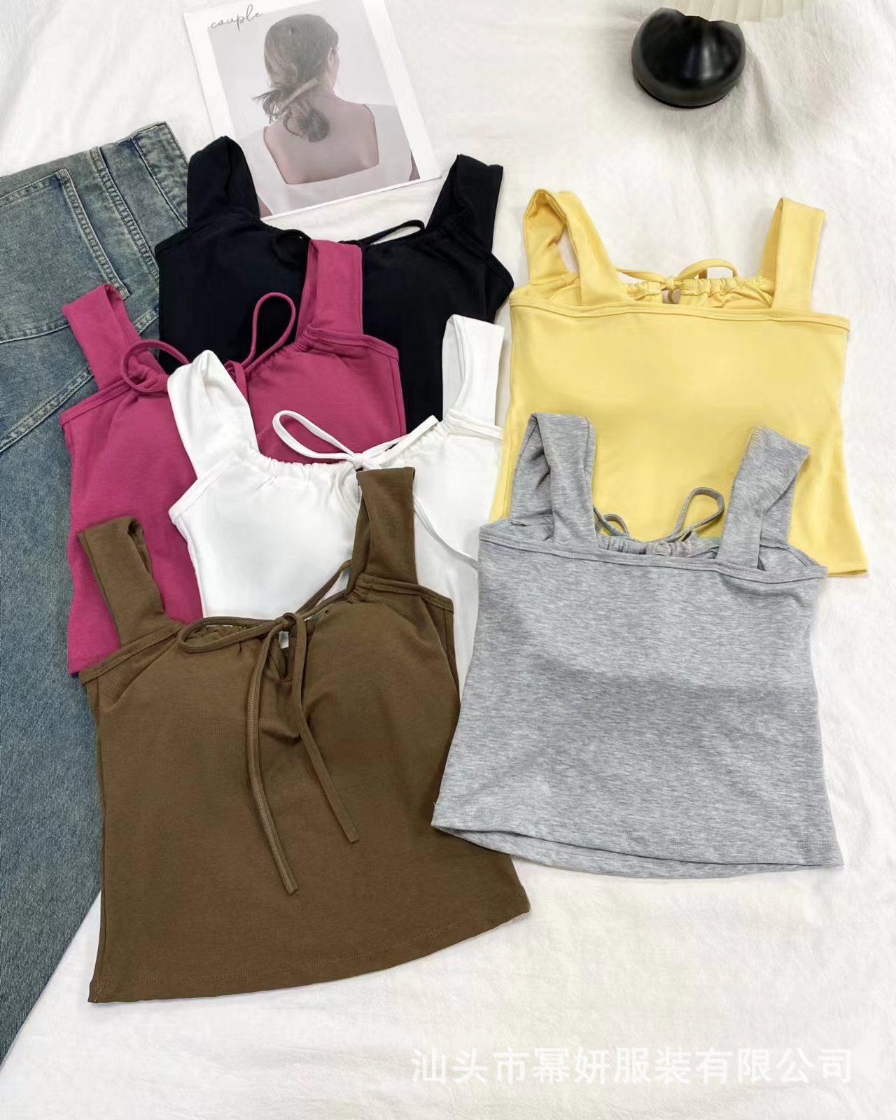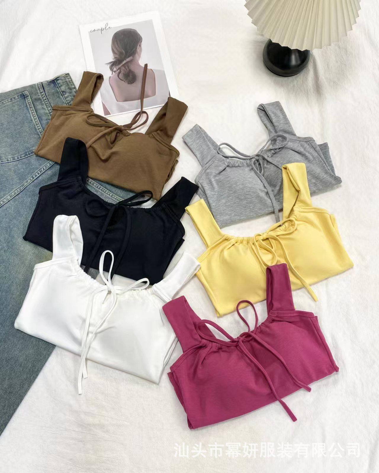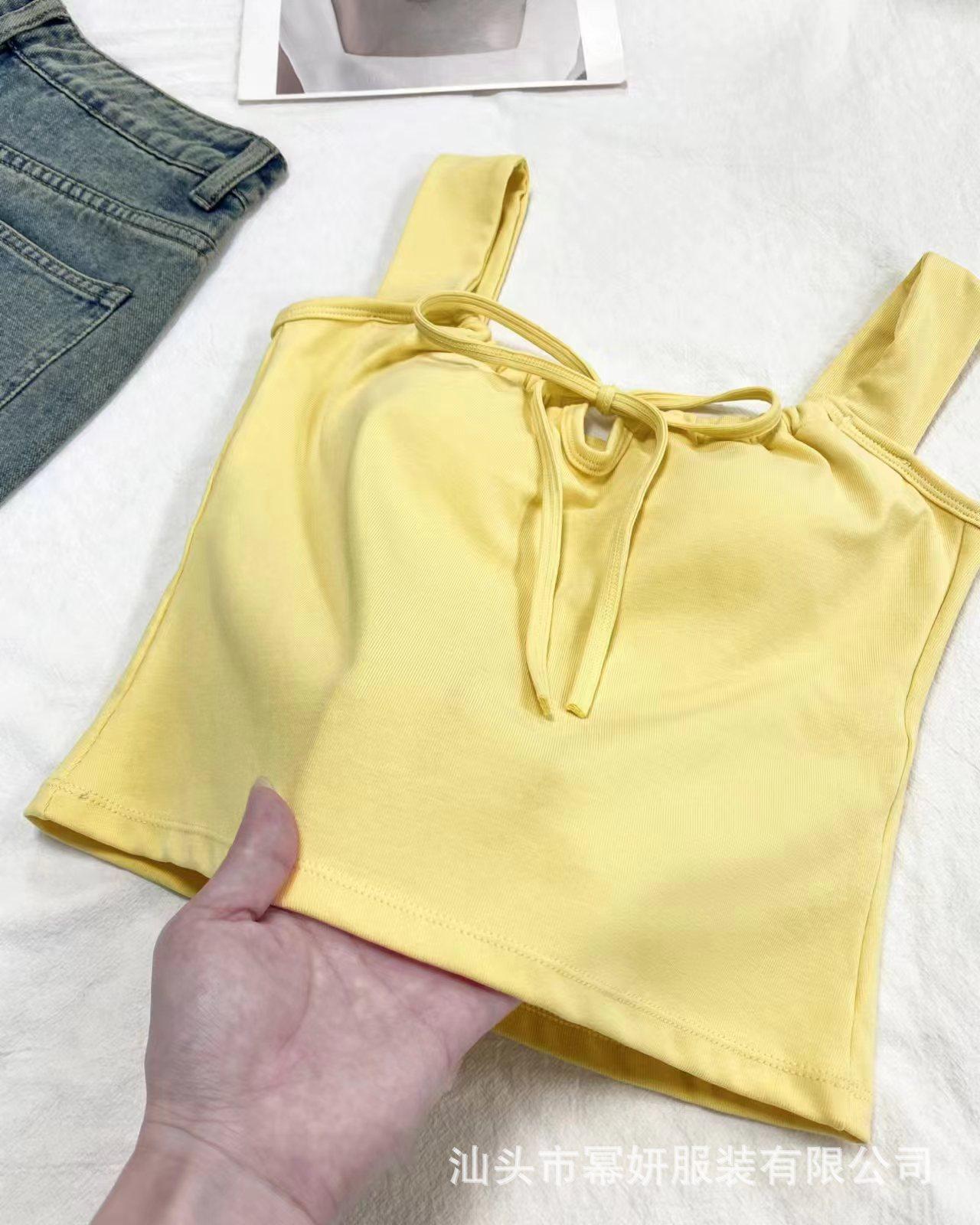 Algodón Modal Dulce Lindo Tirante Ancho Cabestrillo Lazo Chaleco Interior para Mujer Ajustado Corto con Almohadilla en el Pecho
