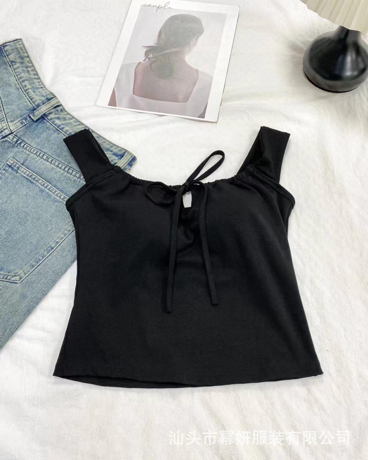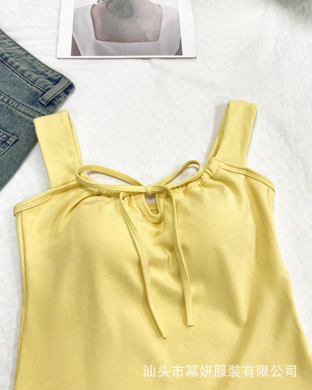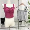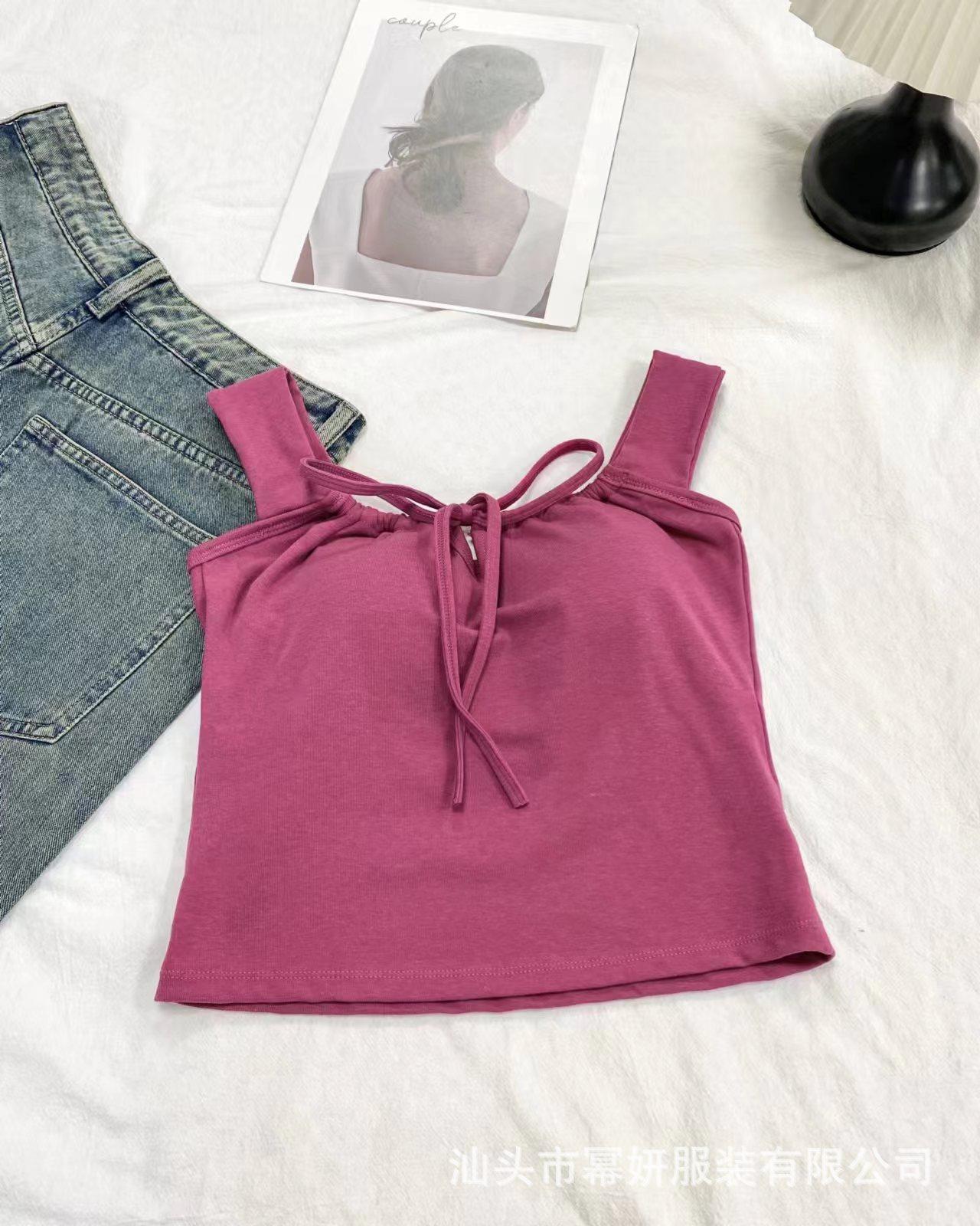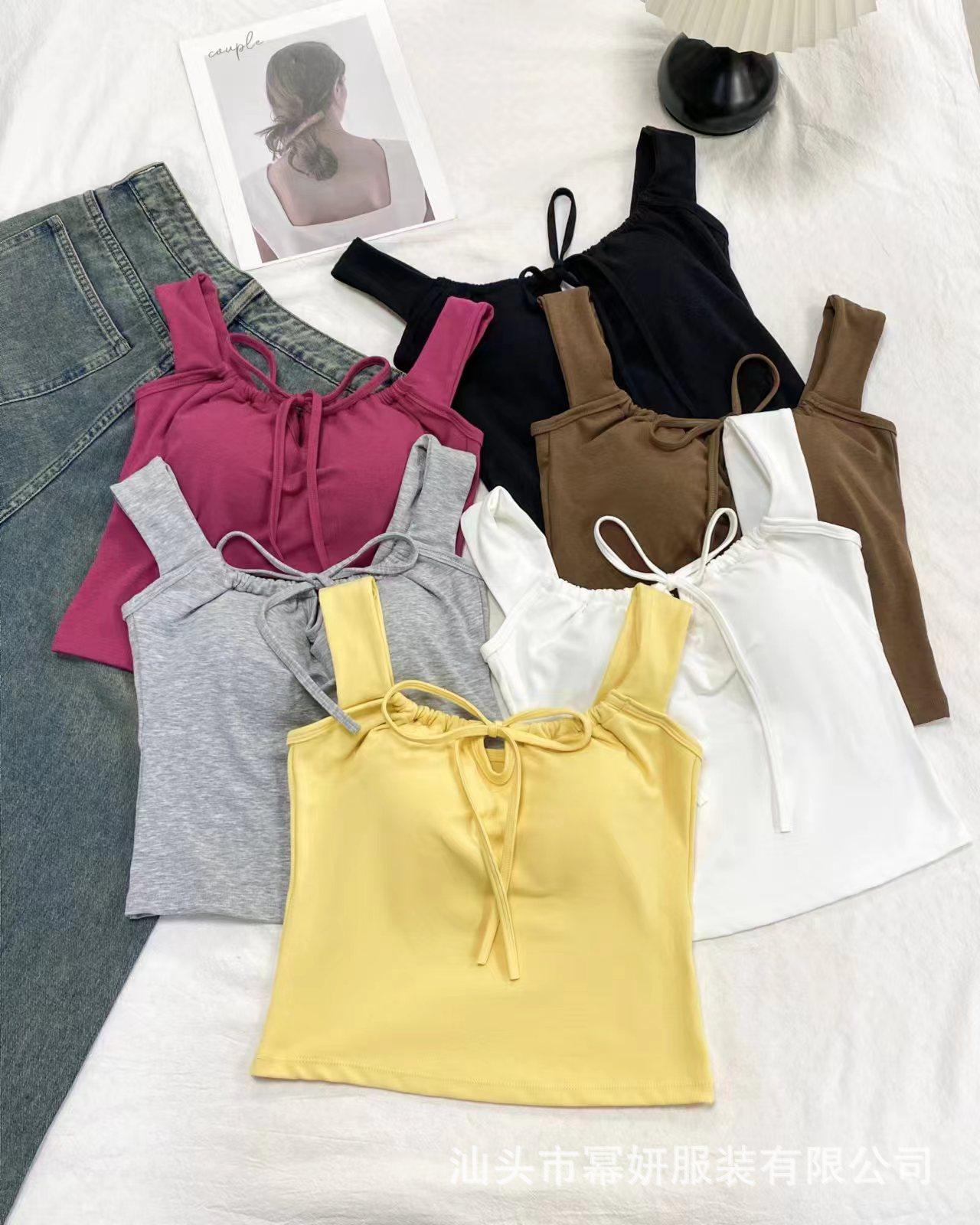 Algodón Modal Dulce Lindo Tirante Ancho Cabestrillo Lazo Chaleco Interior para Mujer Ajustado Corto con Almohadilla en el Pecho
