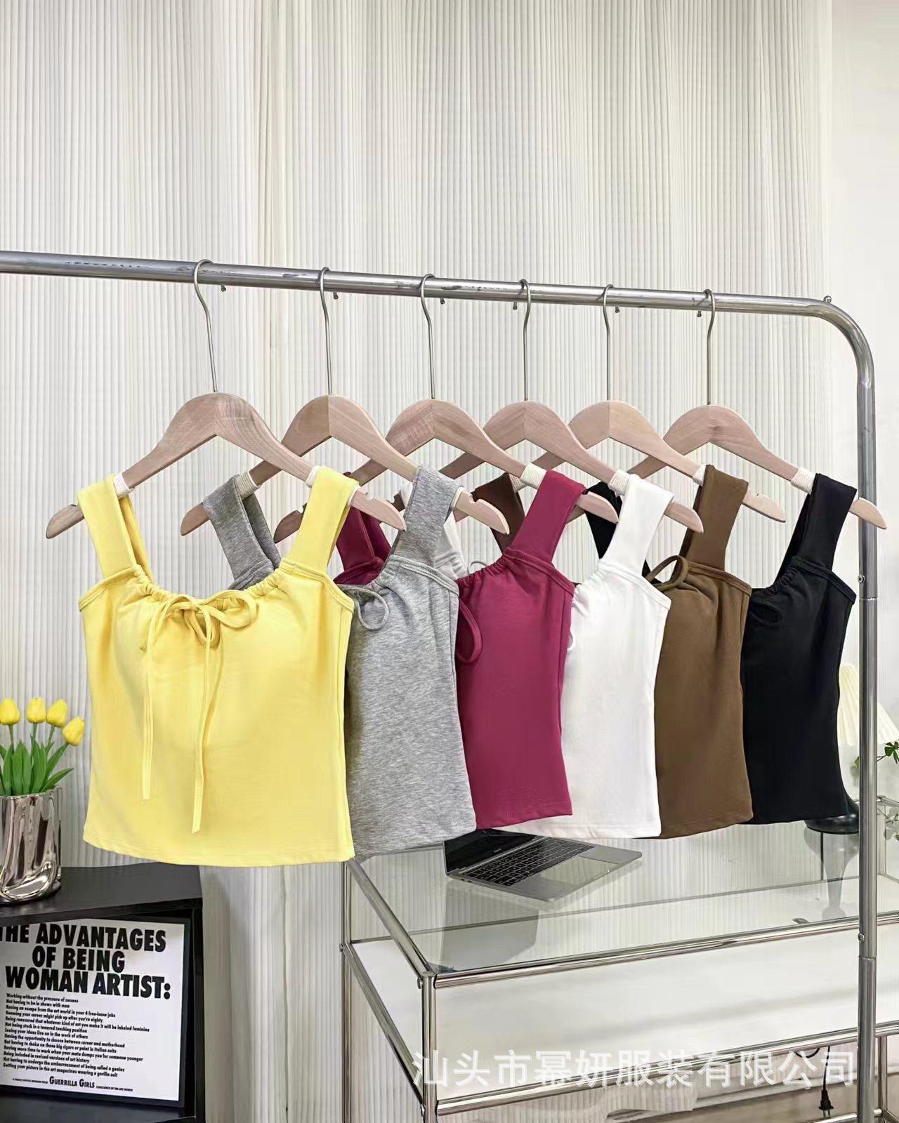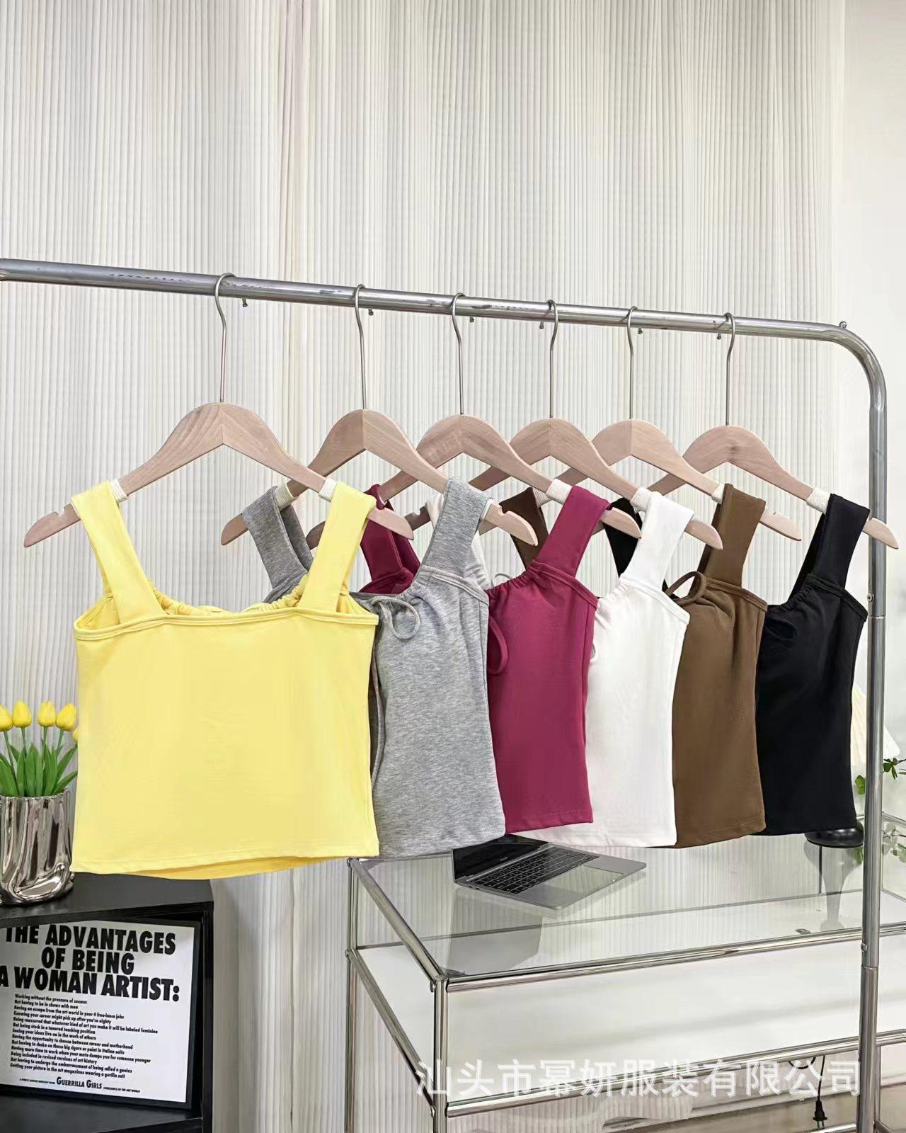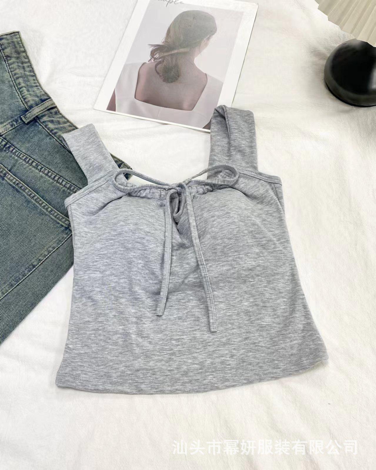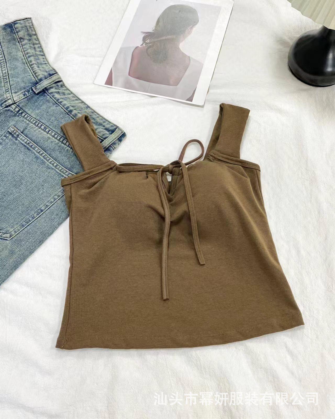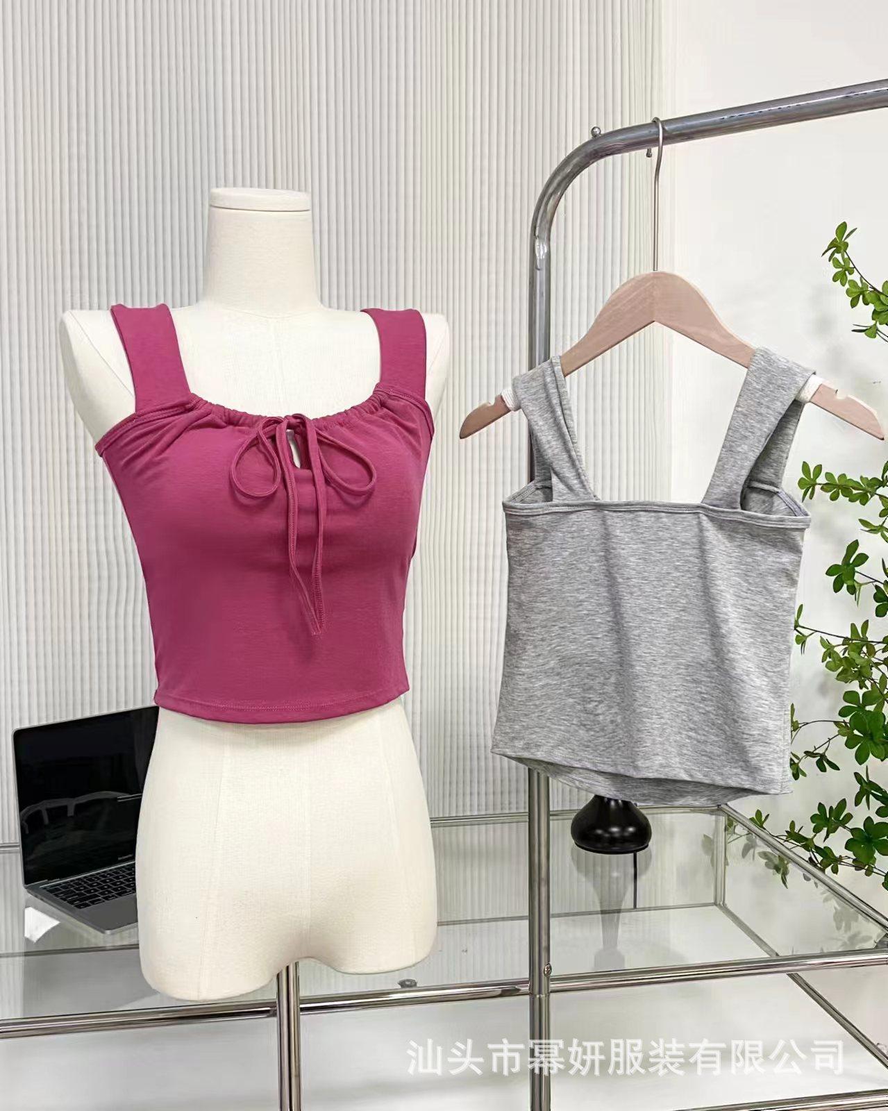 Algodón Modal Dulce Lindo Tirante Ancho Cabestrillo Lazo Chaleco Interior para Mujer Ajustado Corto con Almohadilla en el Pecho