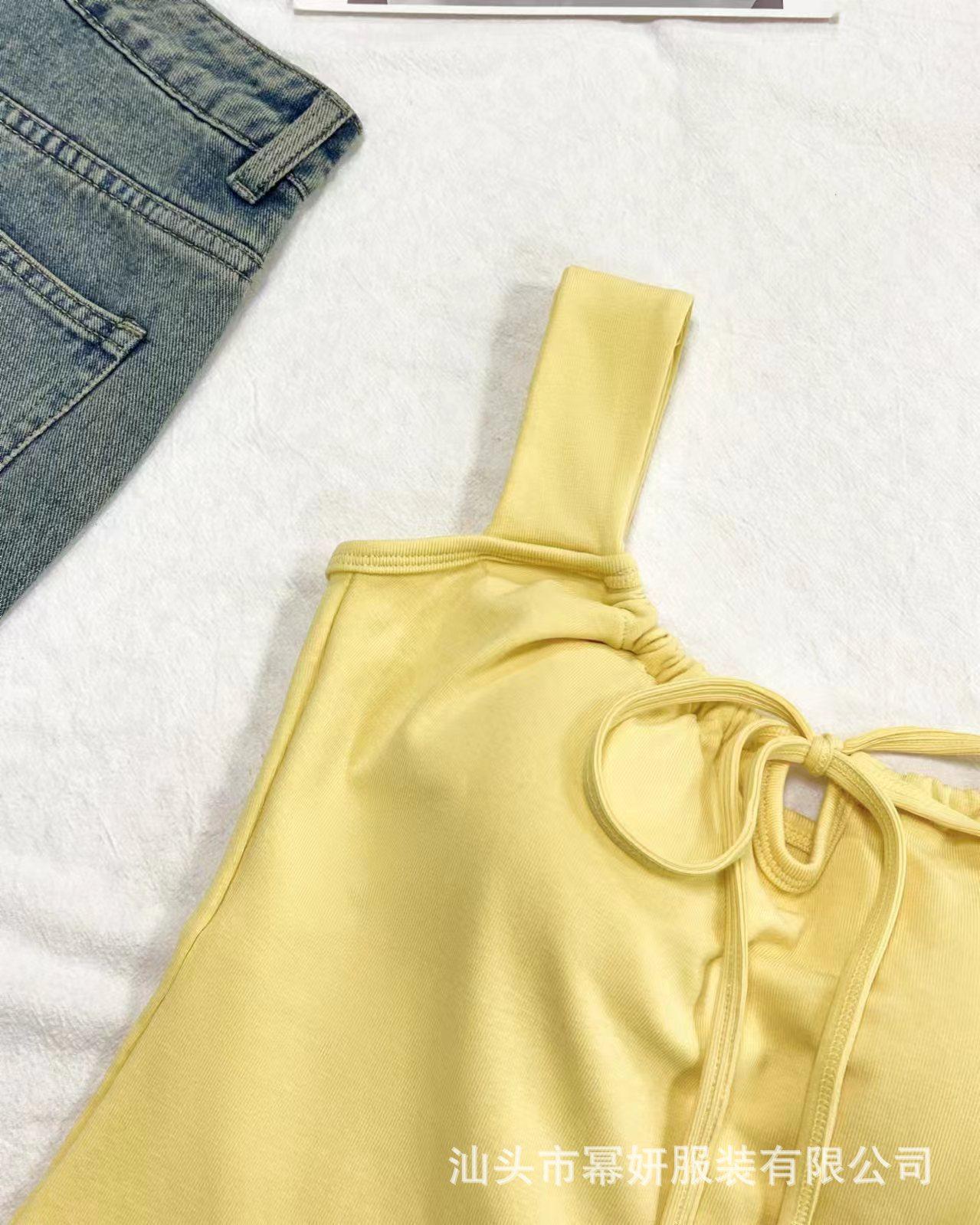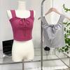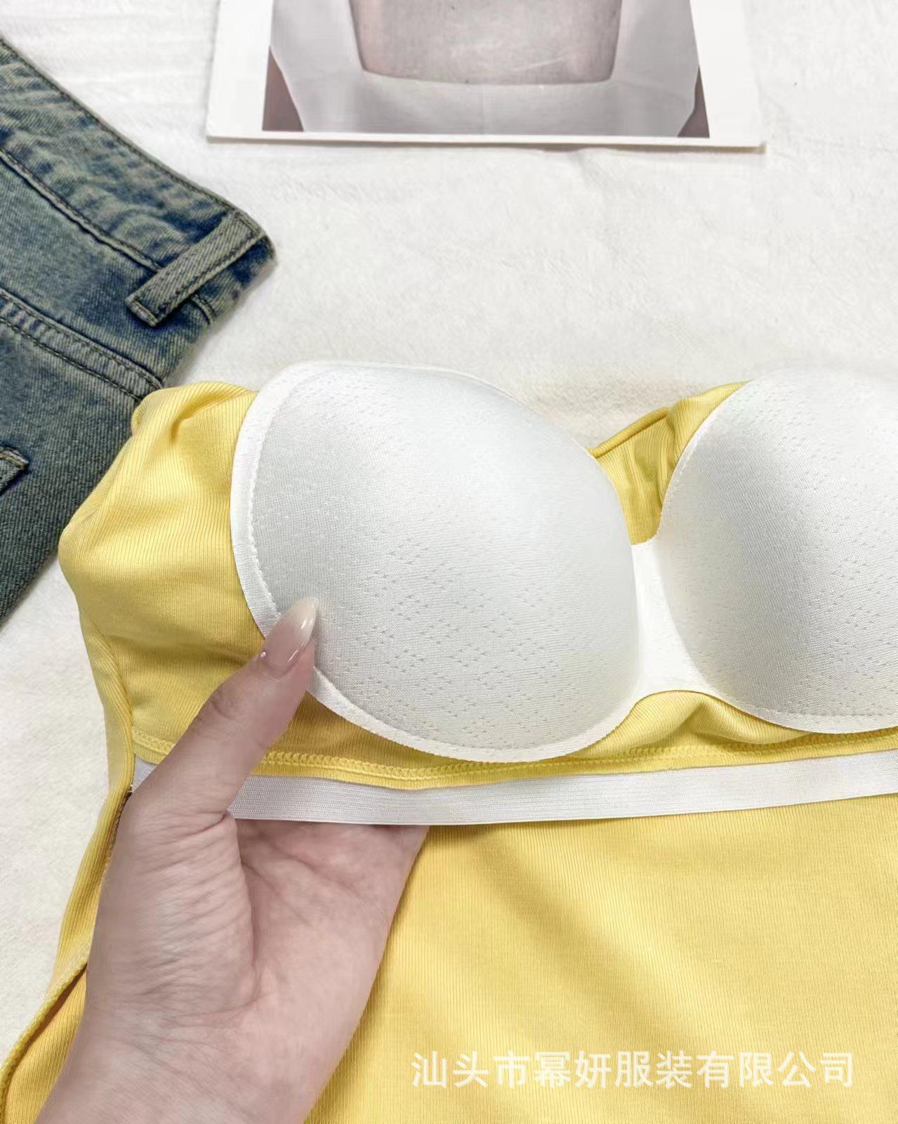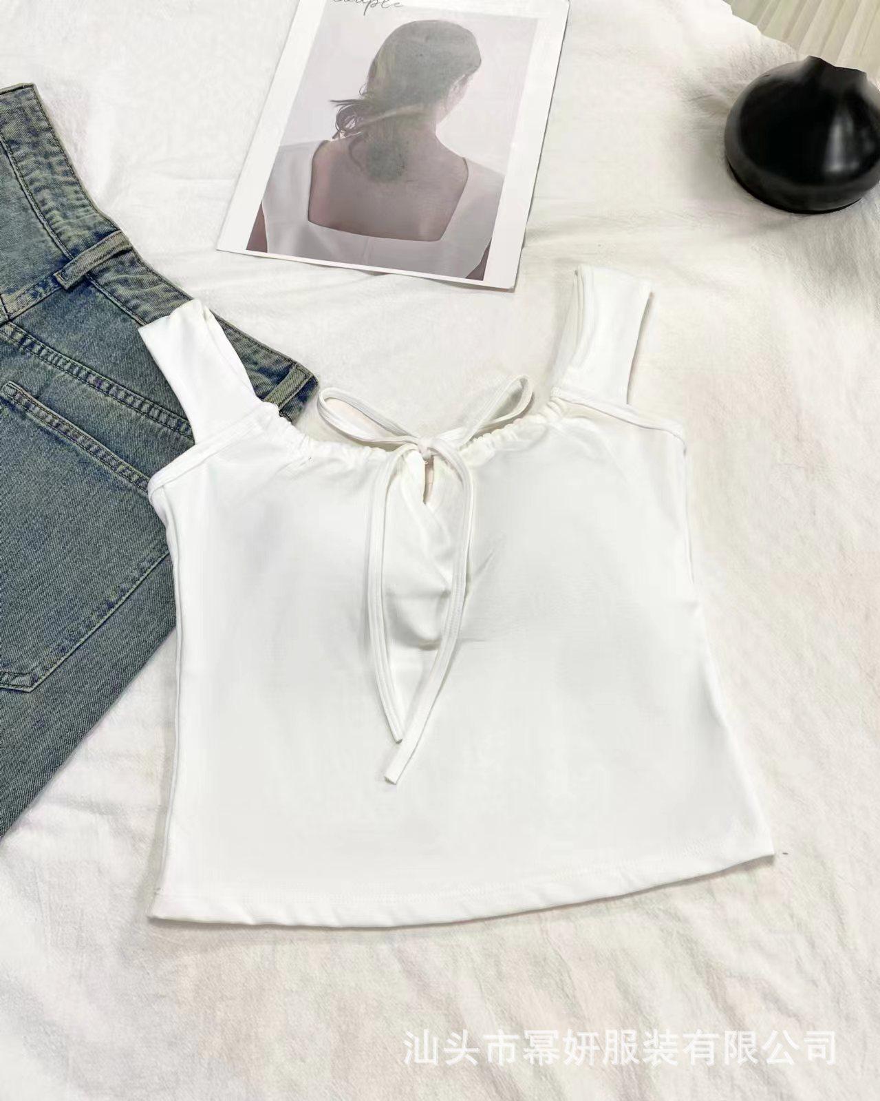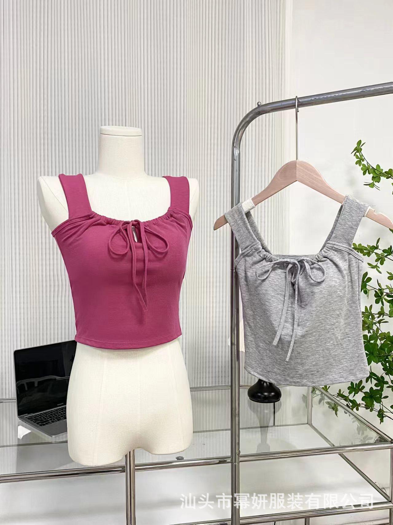 Algodón Modal Dulce Lindo Tirante Ancho Cabestrillo Lazo Chaleco Interior para Mujer Ajustado Corto con Almohadilla en el Pecho