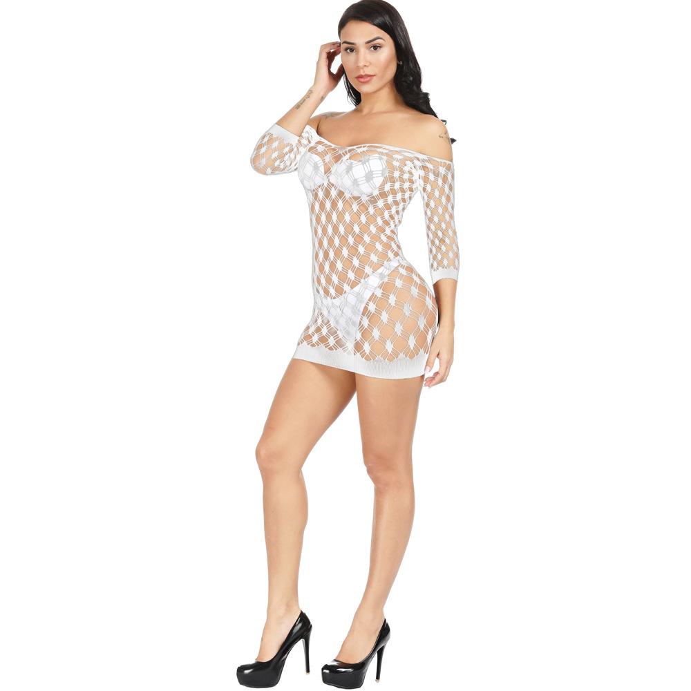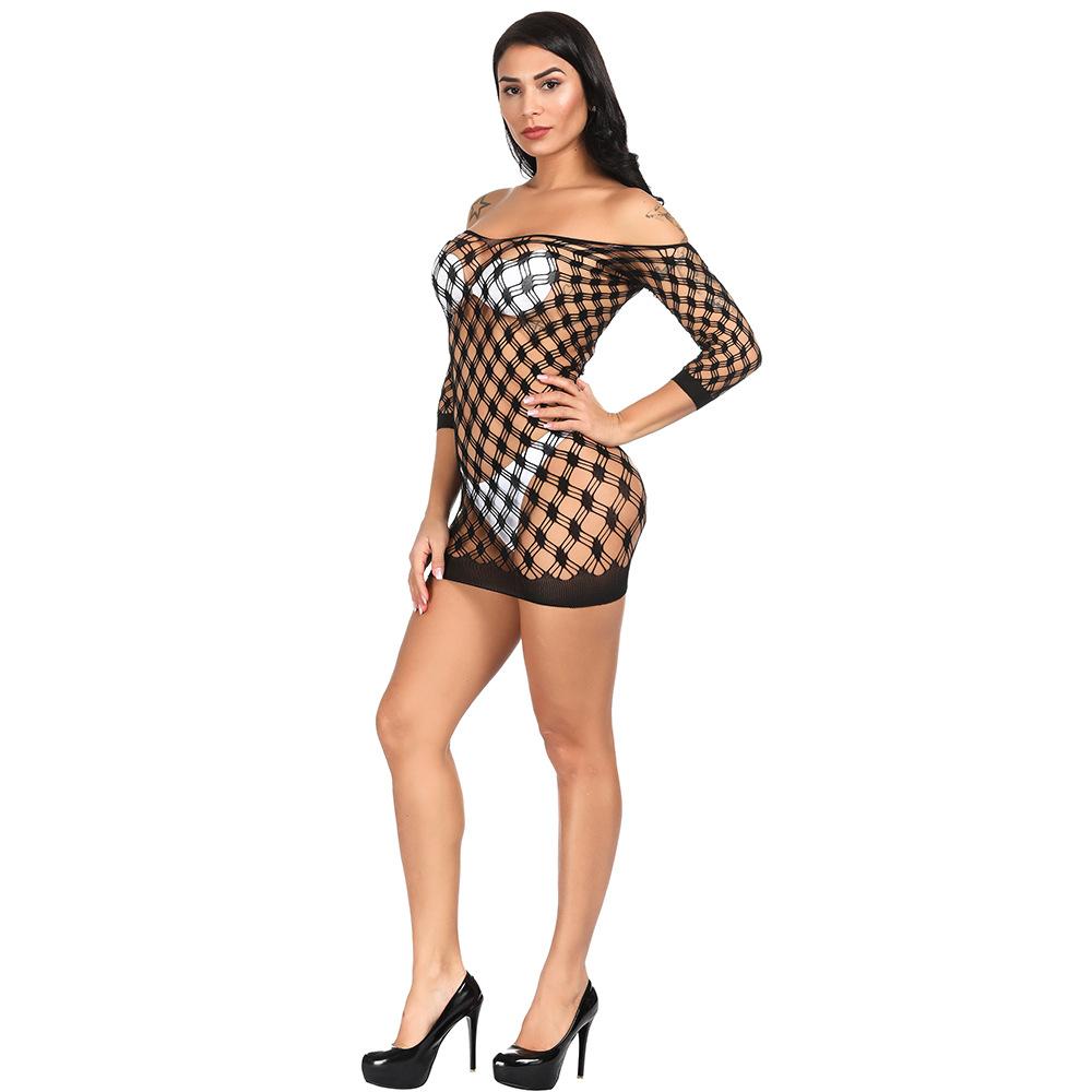 Lencería sexy europea y americana para mujer, medias de seda transparentes y huecas, malla ajustada de una pieza w041