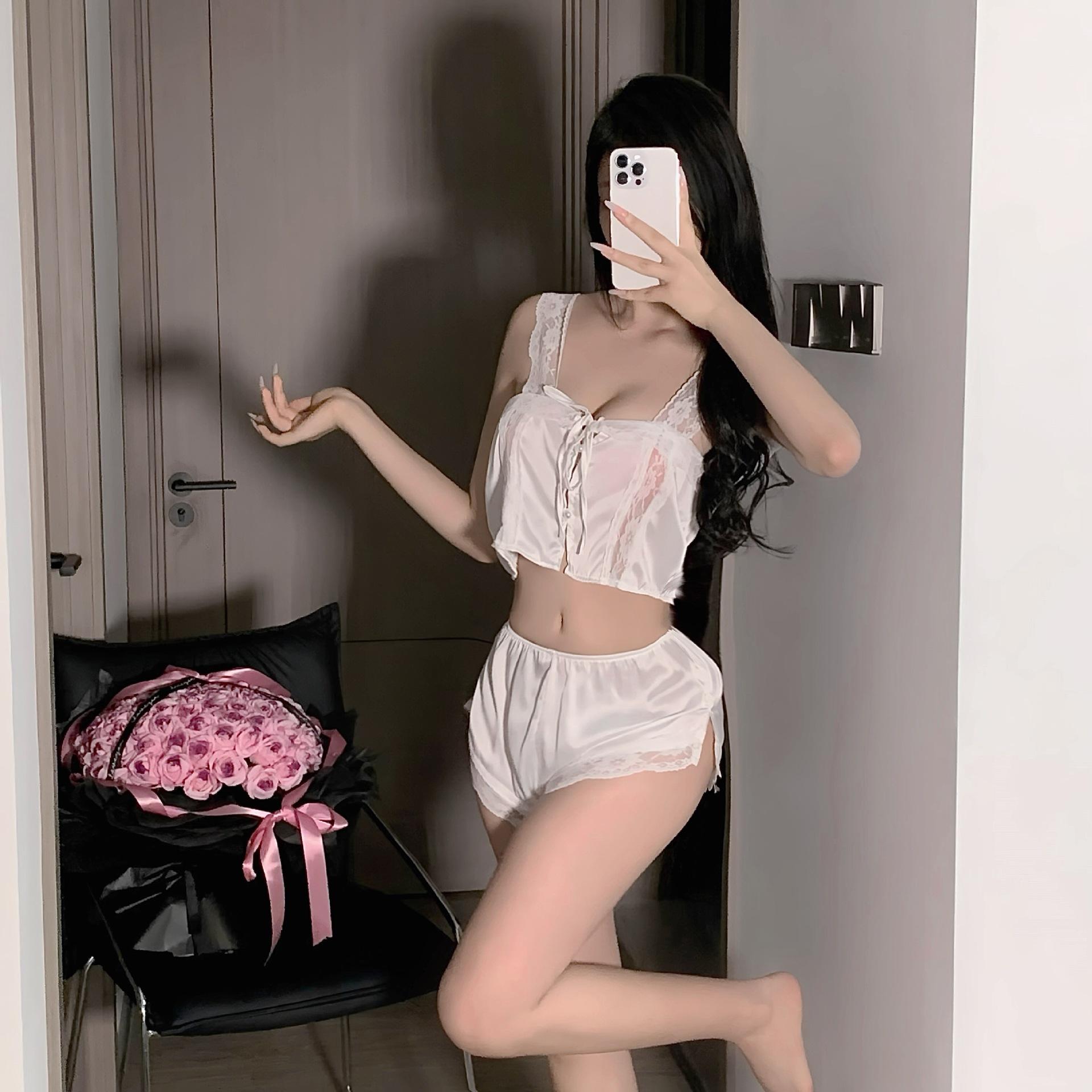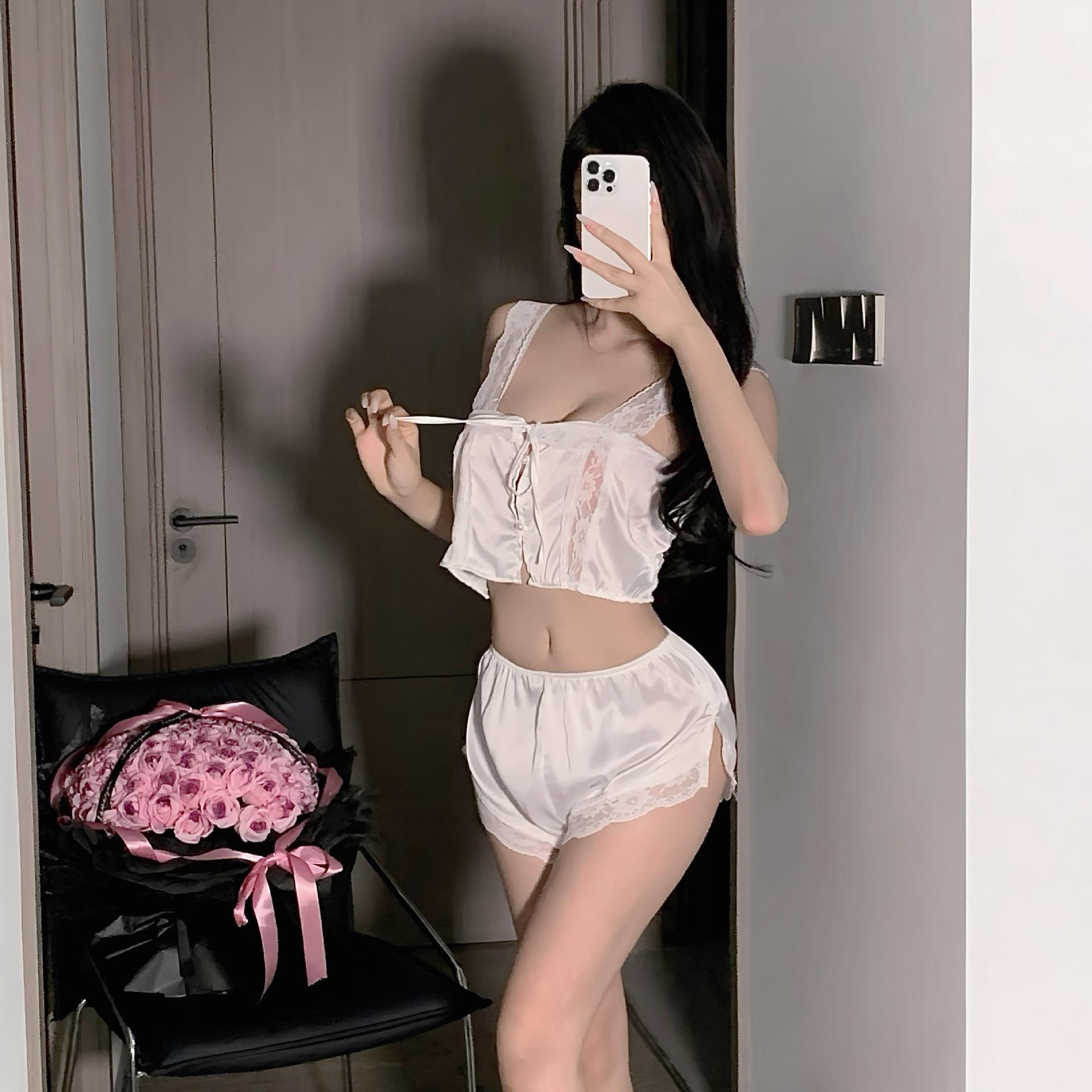 Pijama Sexy para Sexys Verano Delgada Pura Lujuria Shorts de Tirantes Conjunto de Dos Piezas Encaje Tentación Traje Sexy 79